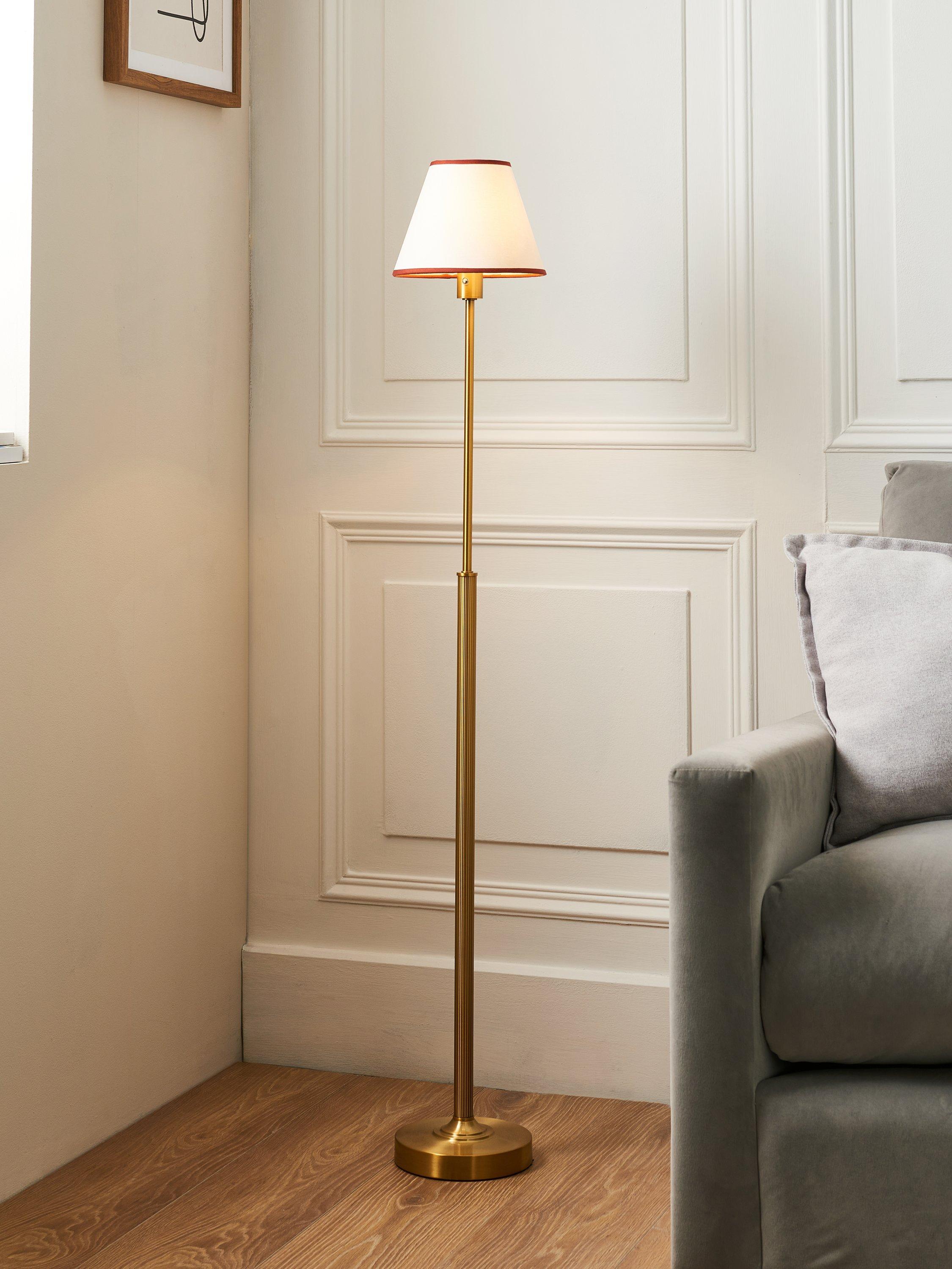 Complete your vintage-inspired nook, create a cosy reading corner or light up that gloomy corner - place this lamp wherever you need it. The Baily floor lamp is rechargeable and cordless, featuring heritage detailing combined with a fabric shade. This LED lamp has three brightness settings operated by a touch button and is USB chargeable, lasting for up to eight hours.