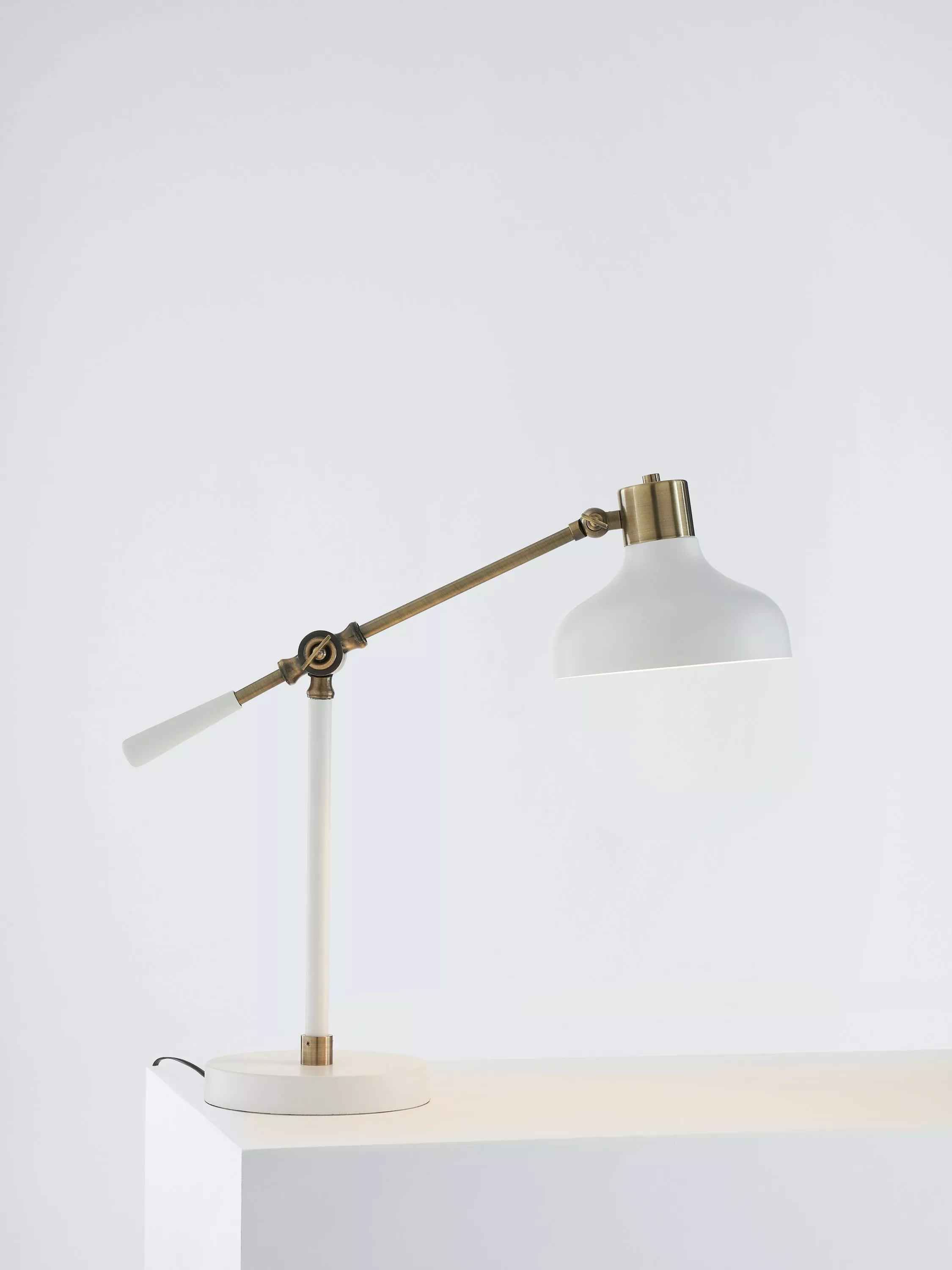 Our Balance Arm Table Lamp has an adjustable stand and shade for controlled lighting. The weighted base keeps the design stable and the desk lamp features antique brass details combined with solid colour in a painted finish.