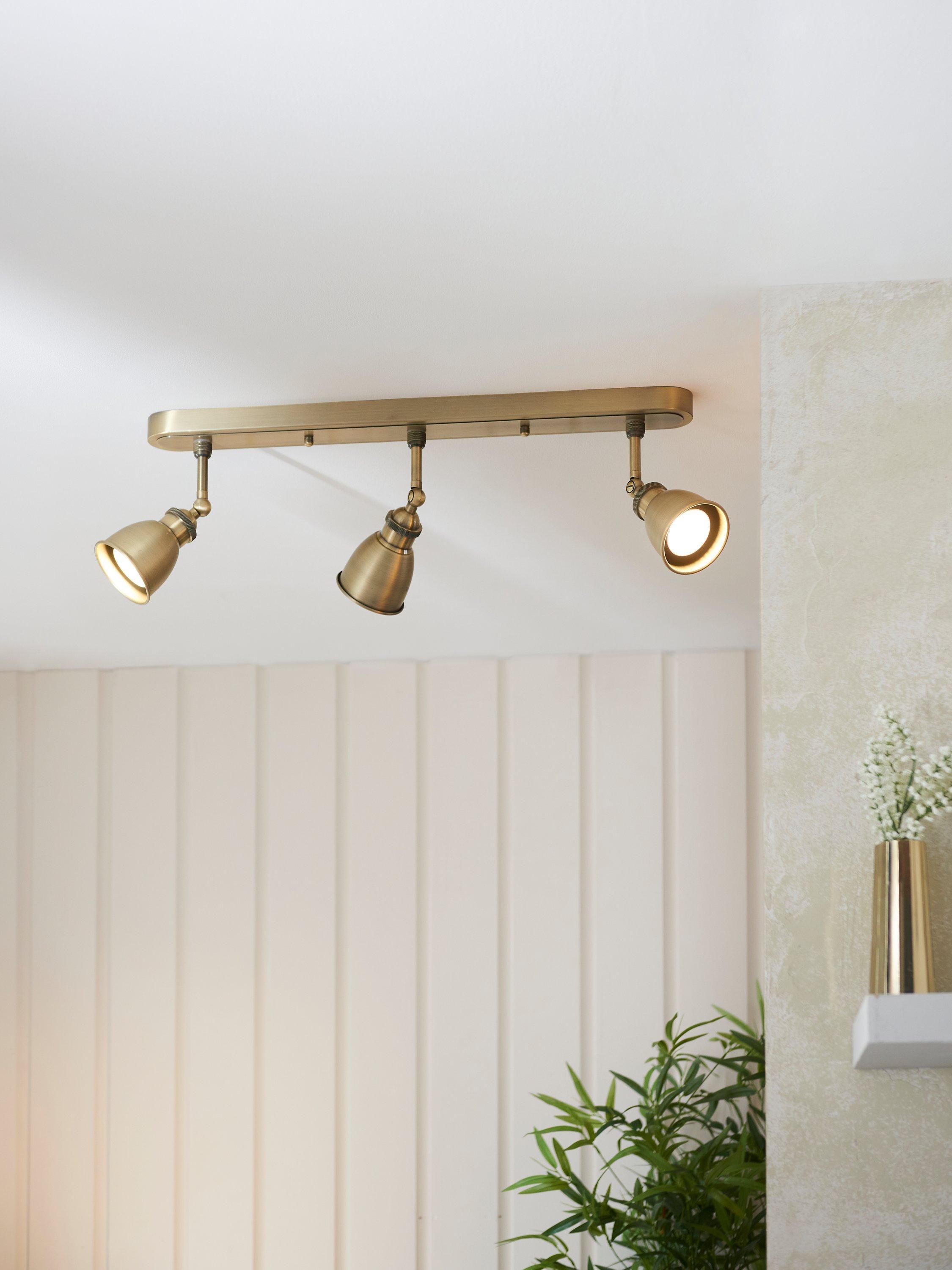 Made from metal in gloss, matt and antique finishes, its sleek design is ideal for modern restoration and traditional country-inspired interiors. This three-head option is a great size for casting light over a food-prep area. We love the knurled metal detail, which gives a nod to industrial design.