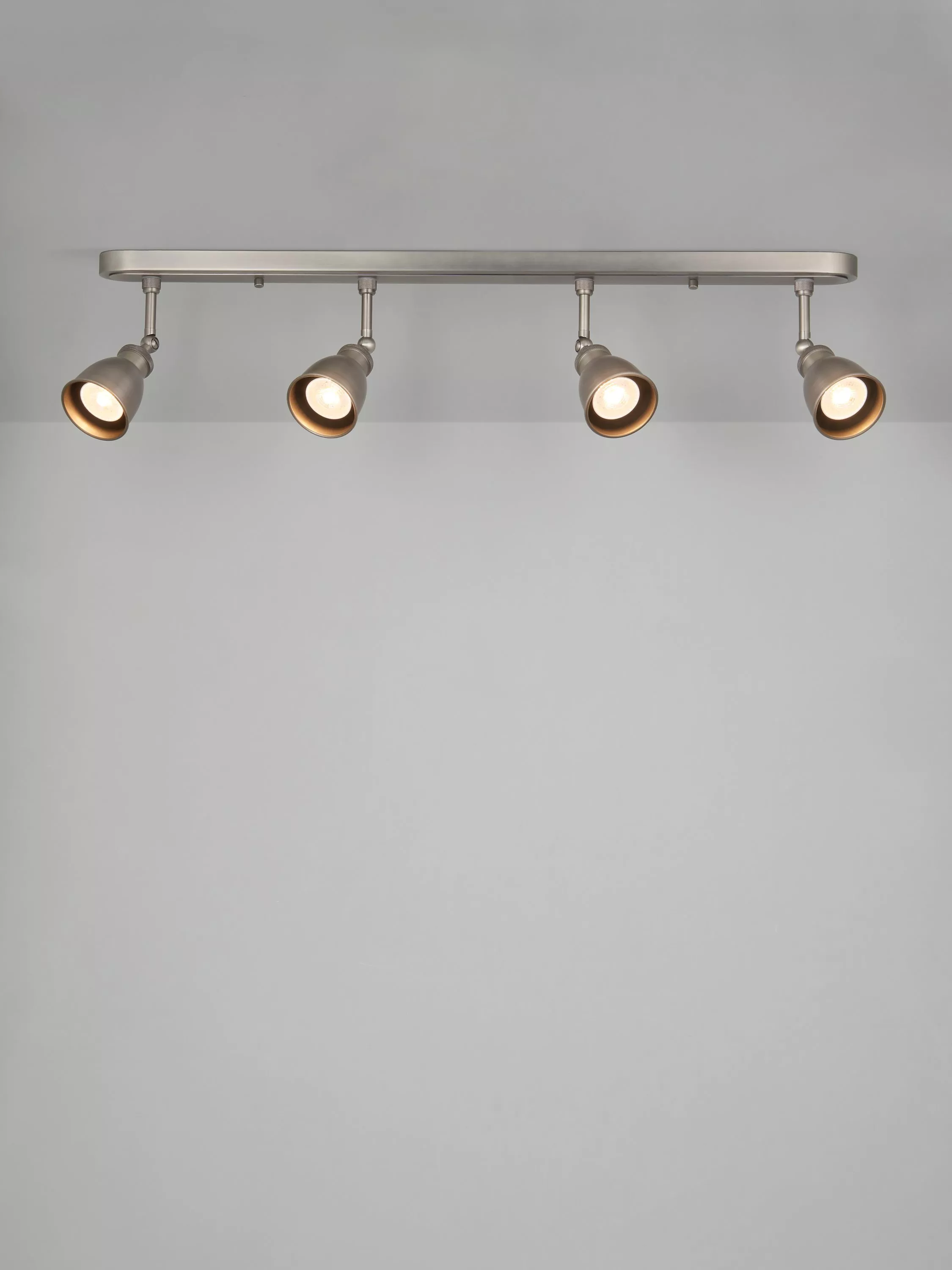 Made from metal in gloss, matt and antique finishes, its sleek design is ideal for modern restoration and traditional country-inspired interiors. This four-head option is a great size for casting light over a food-prep area. We love the knurled metal detail, which gives a nod to industrial design.