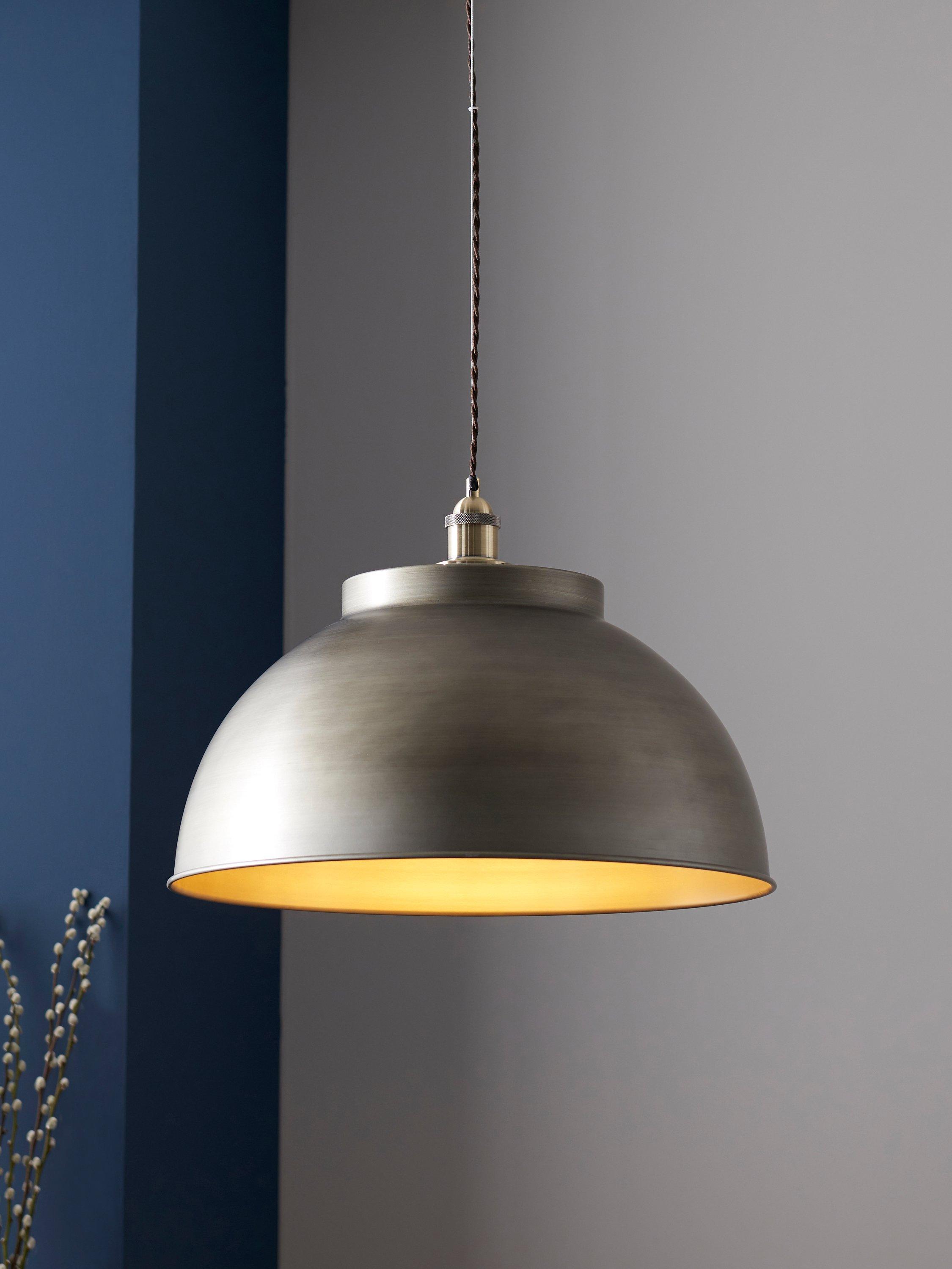 We've made our popular Baldwin pendant in an extra large size to make a real statement in your home. Ideal for installation in kitchens, living or dining spaces, it's made from sturdy steel and aluminium and can be suspended at your chosen height. We like how the shade has a mixed metal finish as it helps to create a warm glow of light, while adding an industrial-styling touch.