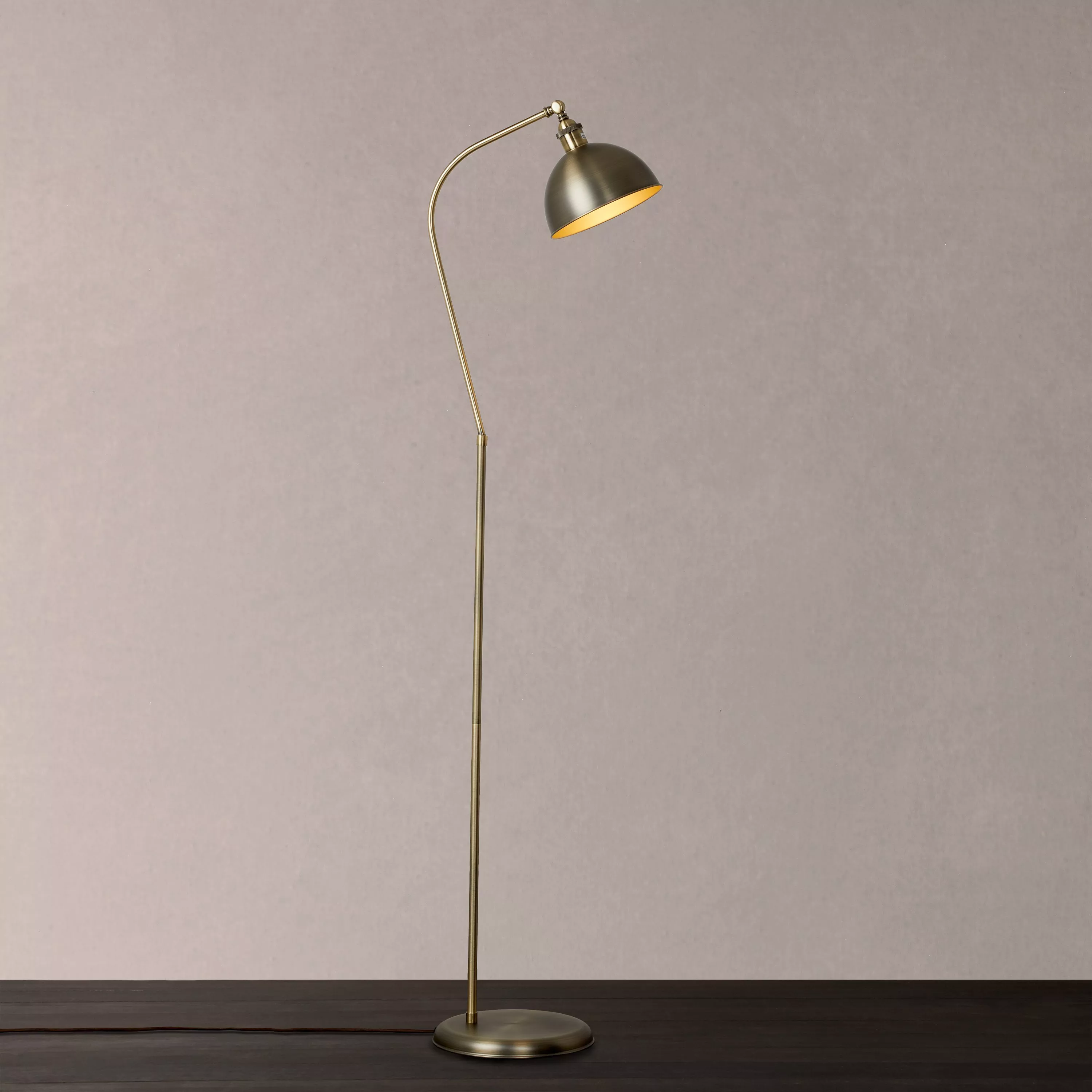 Our Baldwin floor lamp is perfect in reading corners and living spaces. Easy to assemble, it's made from sturdy steel and available in a range of finishes. Its practical design plays on industrial-inspired looks, especially in the metallic options. The arm can be tilted so you can direct the light exactly where you need it and its dome-shaped shade enhances a warm glow.