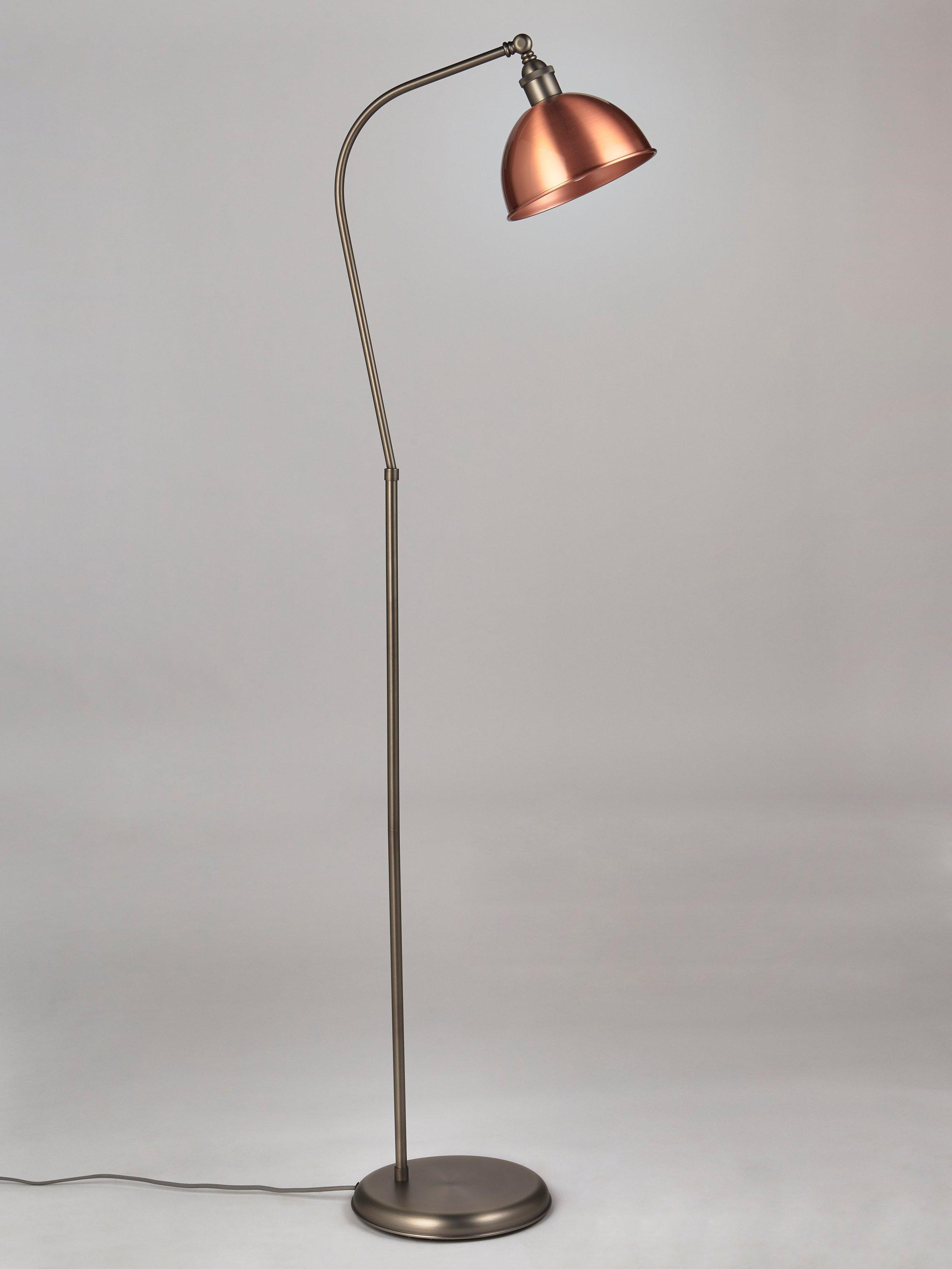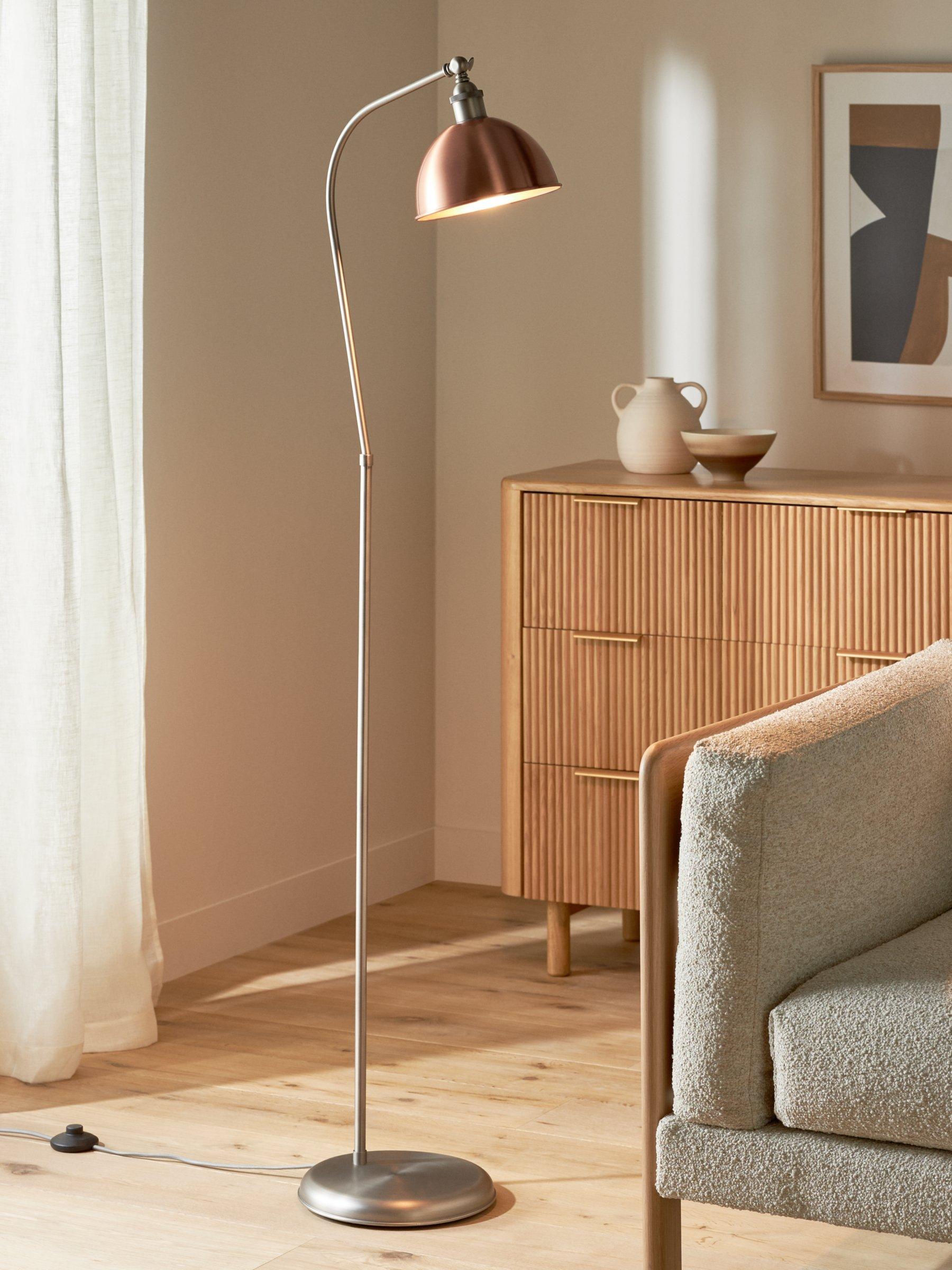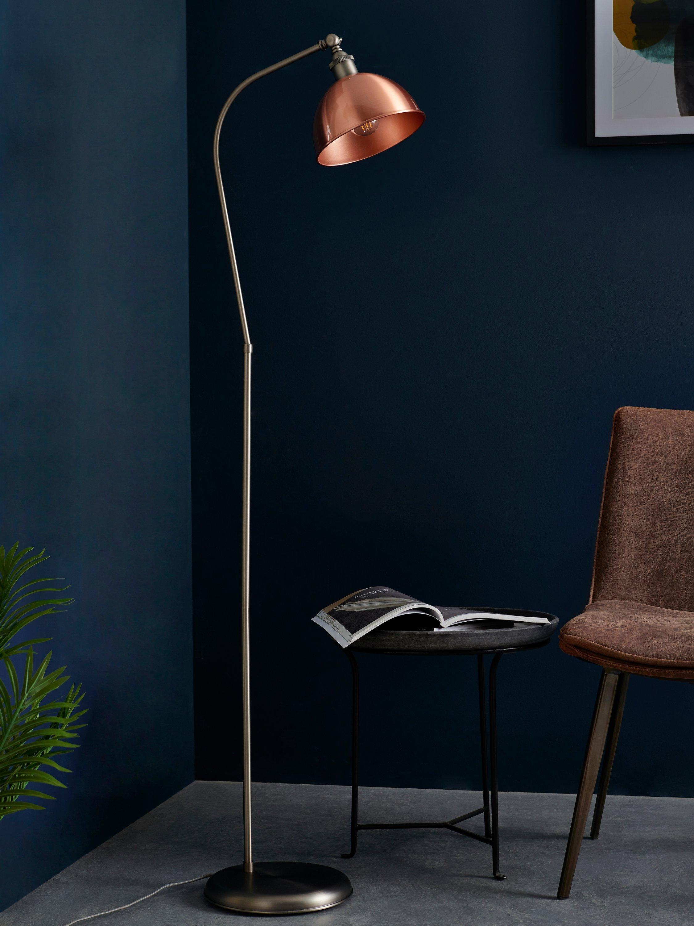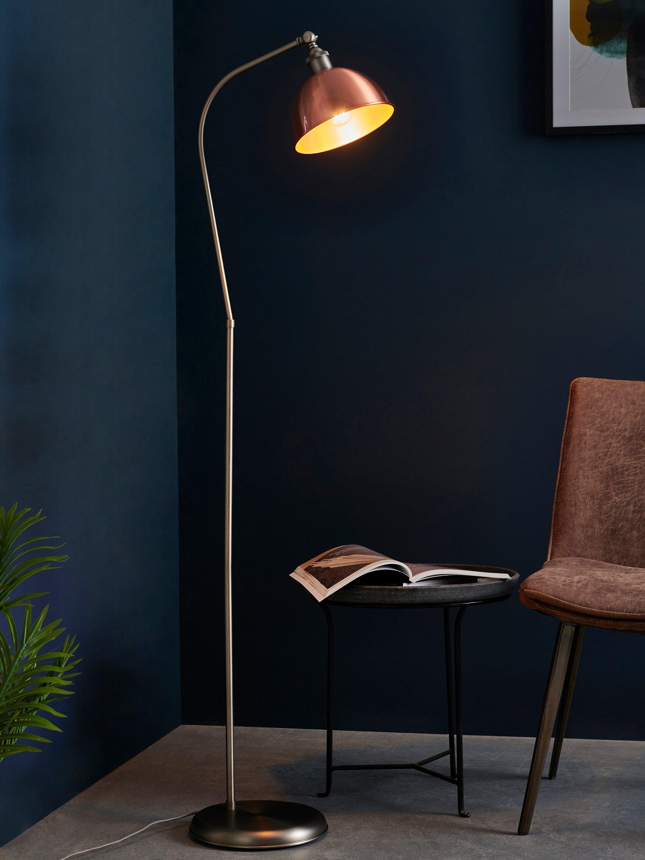 Our Baldwin floor lamp is perfect in reading corners and living spaces. Easy to assemble, it's made from sturdy steel and available in a range of finishes. Its practical design plays on industrial-inspired looks, especially in the metallic options. The arm can be tilted so you can direct the light exactly where you need it and its dome-shaped shade enhances a warm glow.