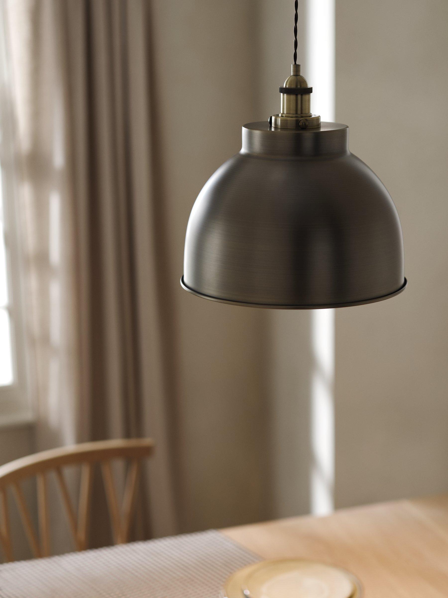Our popular Baldwin ceiling light, redesigned in a larger pendant to make an even bigger statement in your space. With its signature dome shape and contrasting inner, it's available in a choice of industrial finishes.