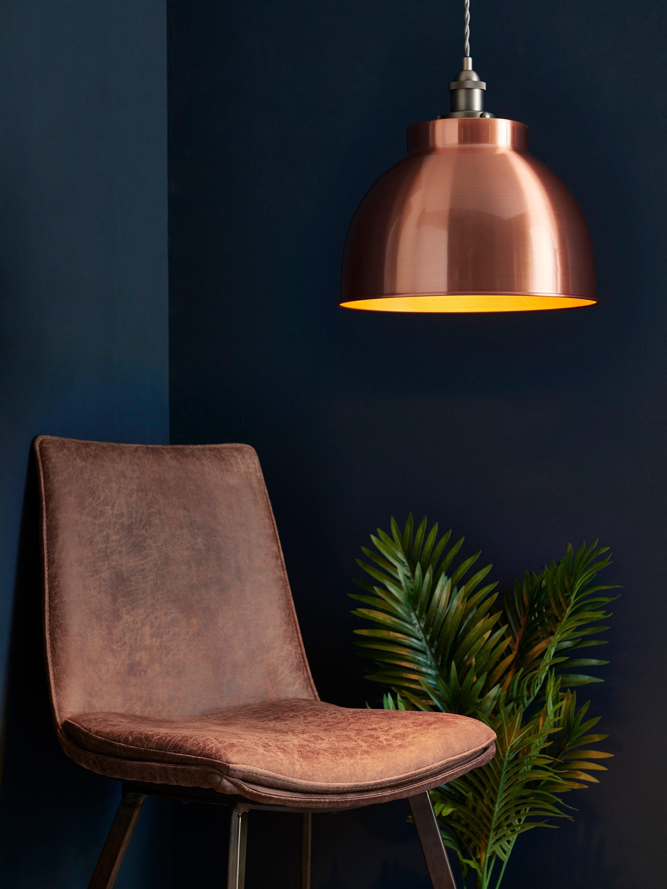 Our popular Baldwin ceiling light, redesigned in a larger pendant to make an even bigger statement in your space. With its signature dome shape and contrasting inner, it's available in a choice of industrial finishes.