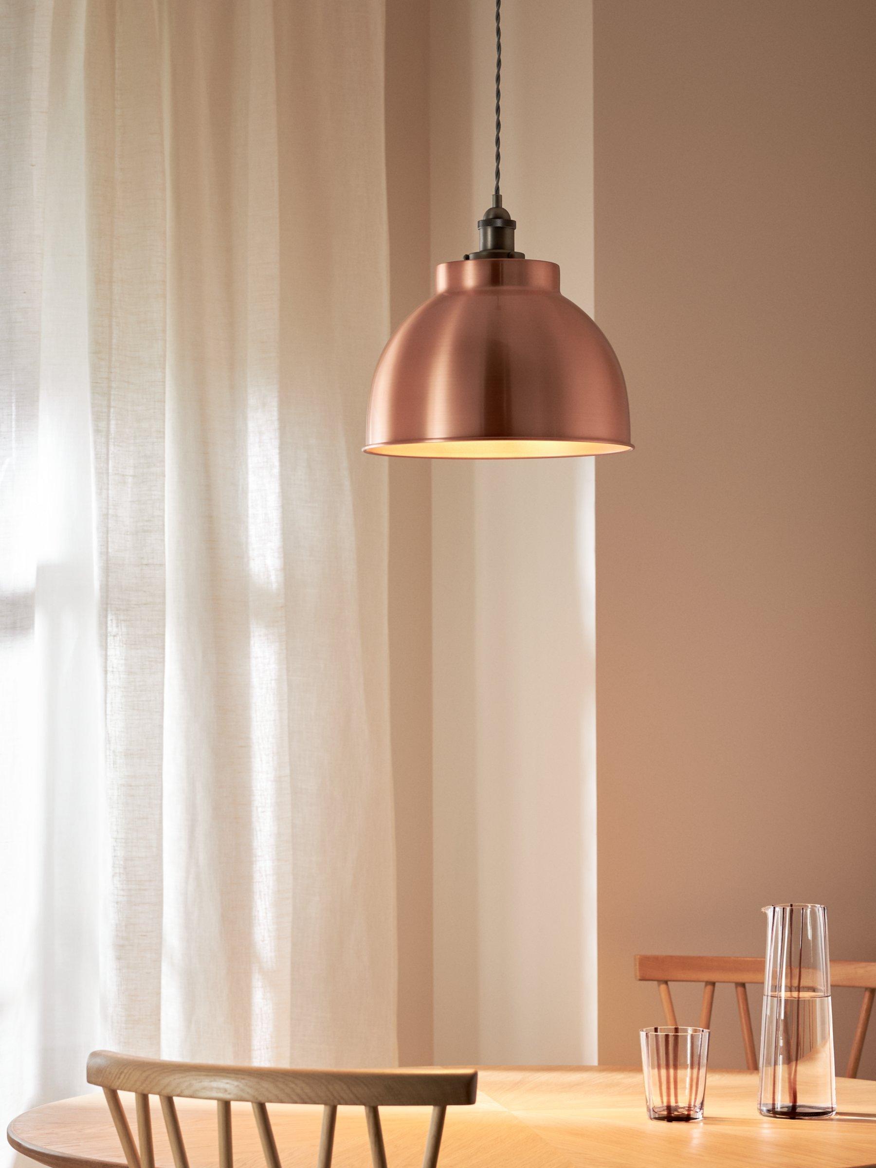 It's height-adjustable at the point of installation, so you can position it to your exact requirements. One LED bulb is required. The warm and inviting glow created works really well when installed directly above a dining table or kitchen island.