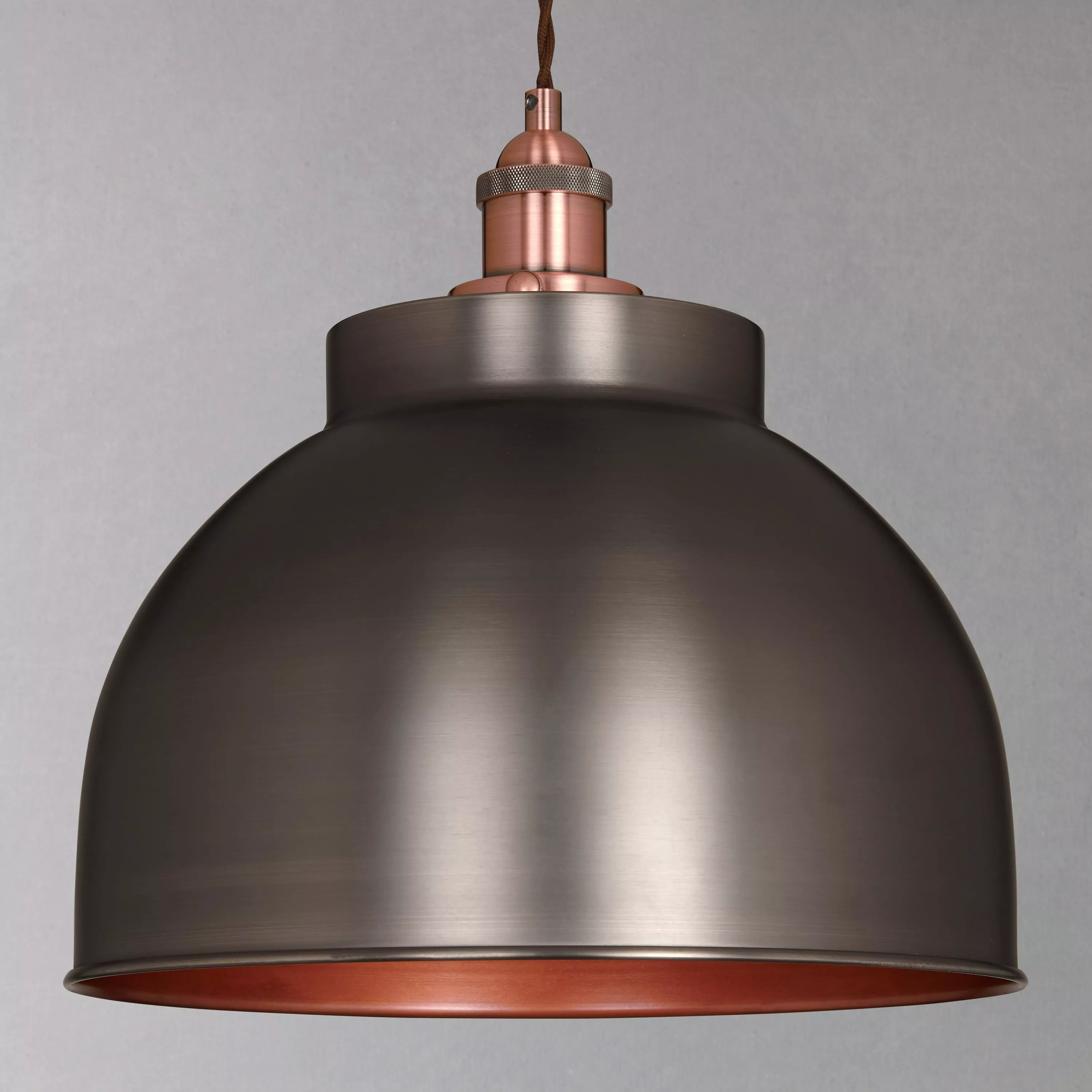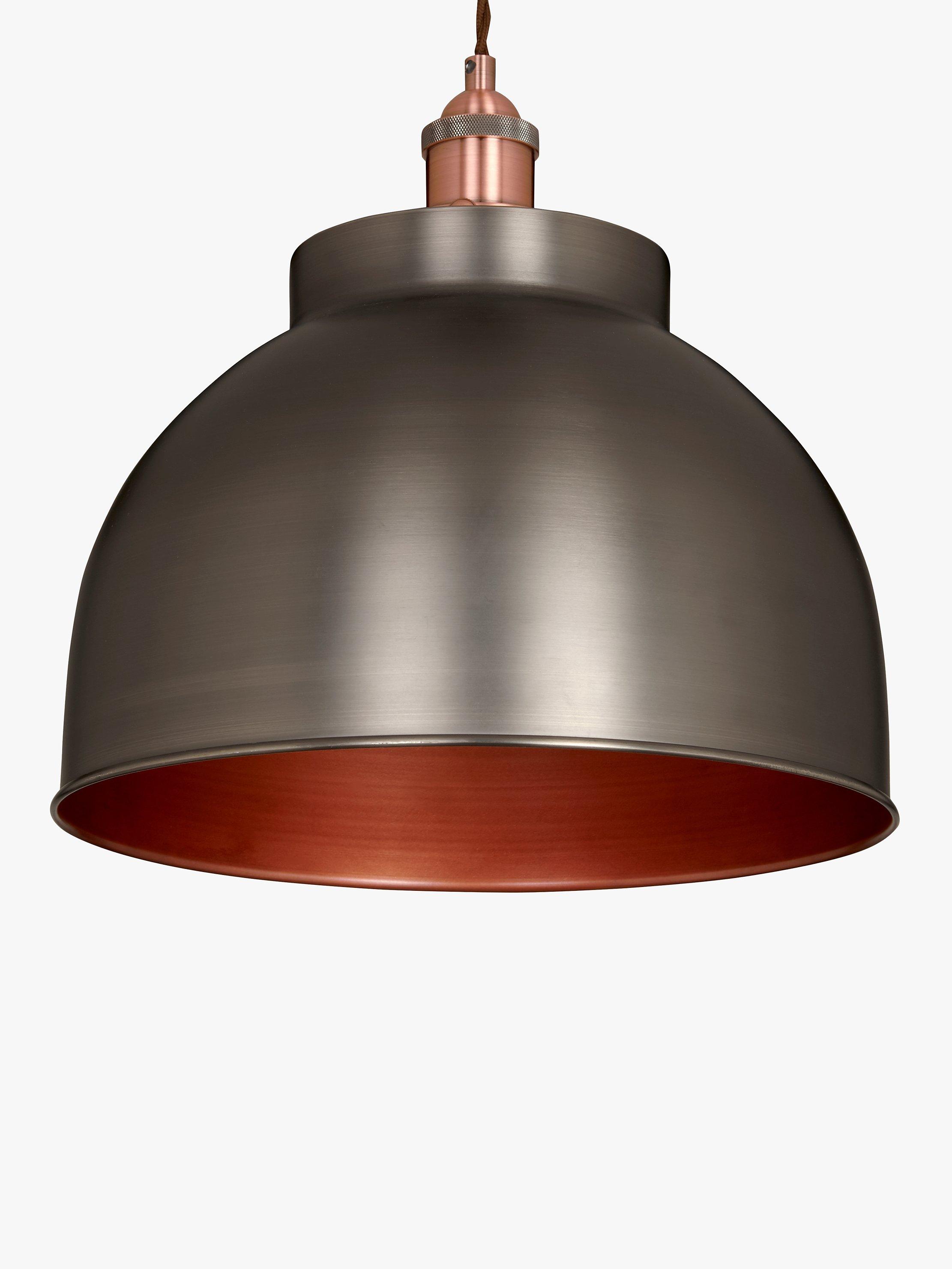 Our popular Baldwin ceiling light, redesigned in a larger pendant to make an even bigger statement in your space. With its signature dome shape and contrasting inner, it's available in a choice of industrial finishes.