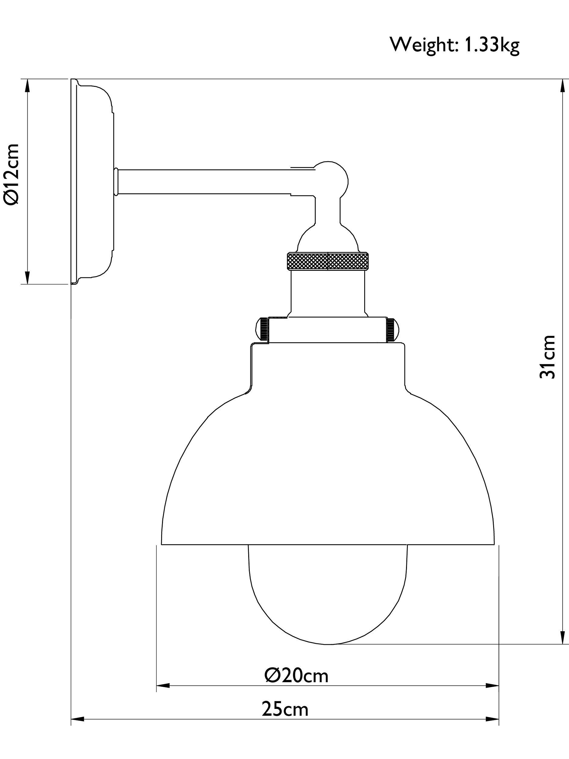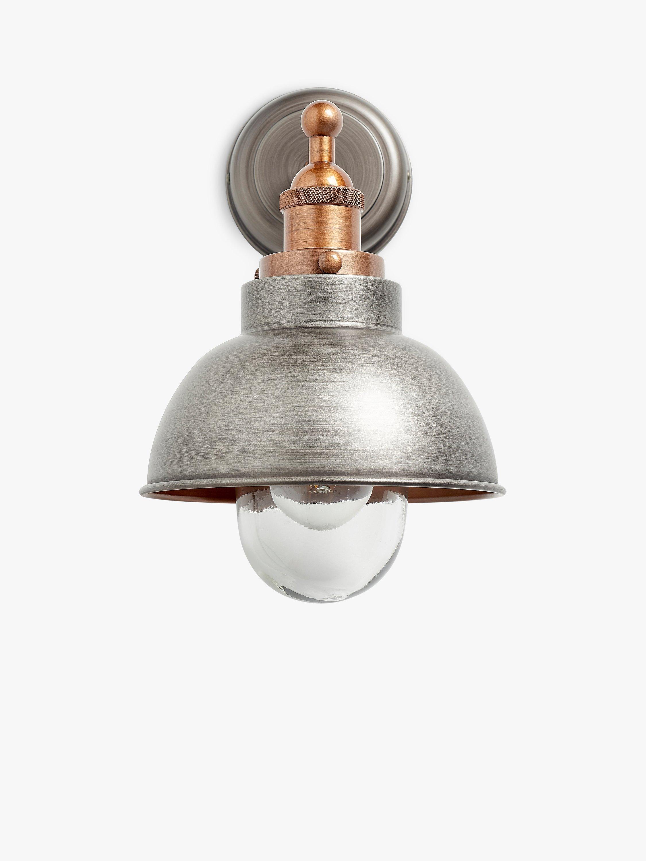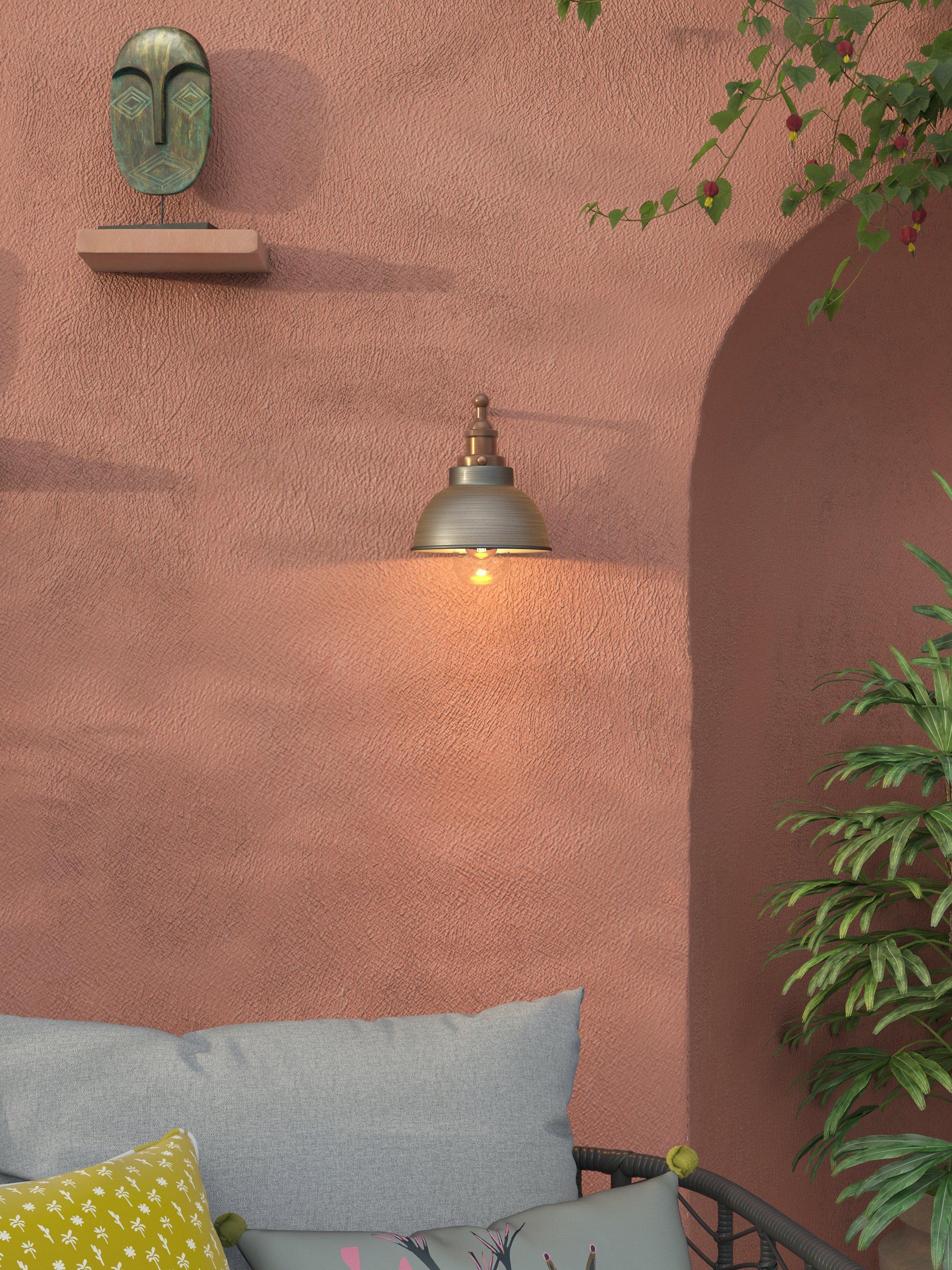 Our popular Baldwin light, designed specifically for outdoor use. This IP44-rated wall fitting is a great option for porches or pathways and it has a cool, industrial edge thanks to its mixed metal design and signature dome-shaped shade. One LED bulb is required and it will cast a warm and direct glow of light down the wall. Available in a choice of matt finishes.