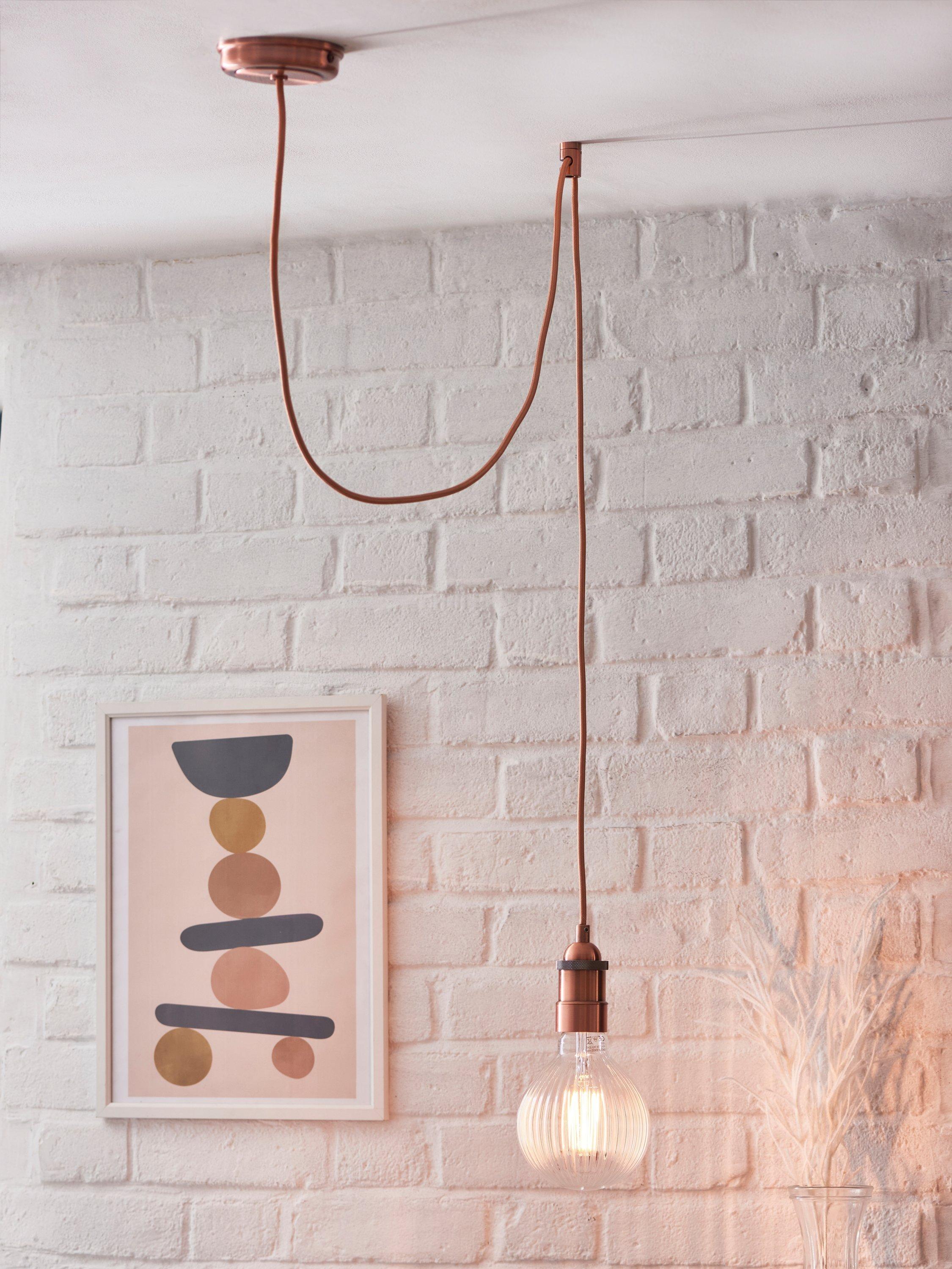 Thanks to a simple hook, our Baldwin ceiling cord offers the flexibility to create either a single pendant light or a swag light. It's designed with a long, braided flex for easy adjustment and it hangs from a metal ceiling plate in a stylish finish. You can attach it to any non-wired, easy-to-fit lampshade, or simply fit a decorative bulb for a more minimalist lighting style.