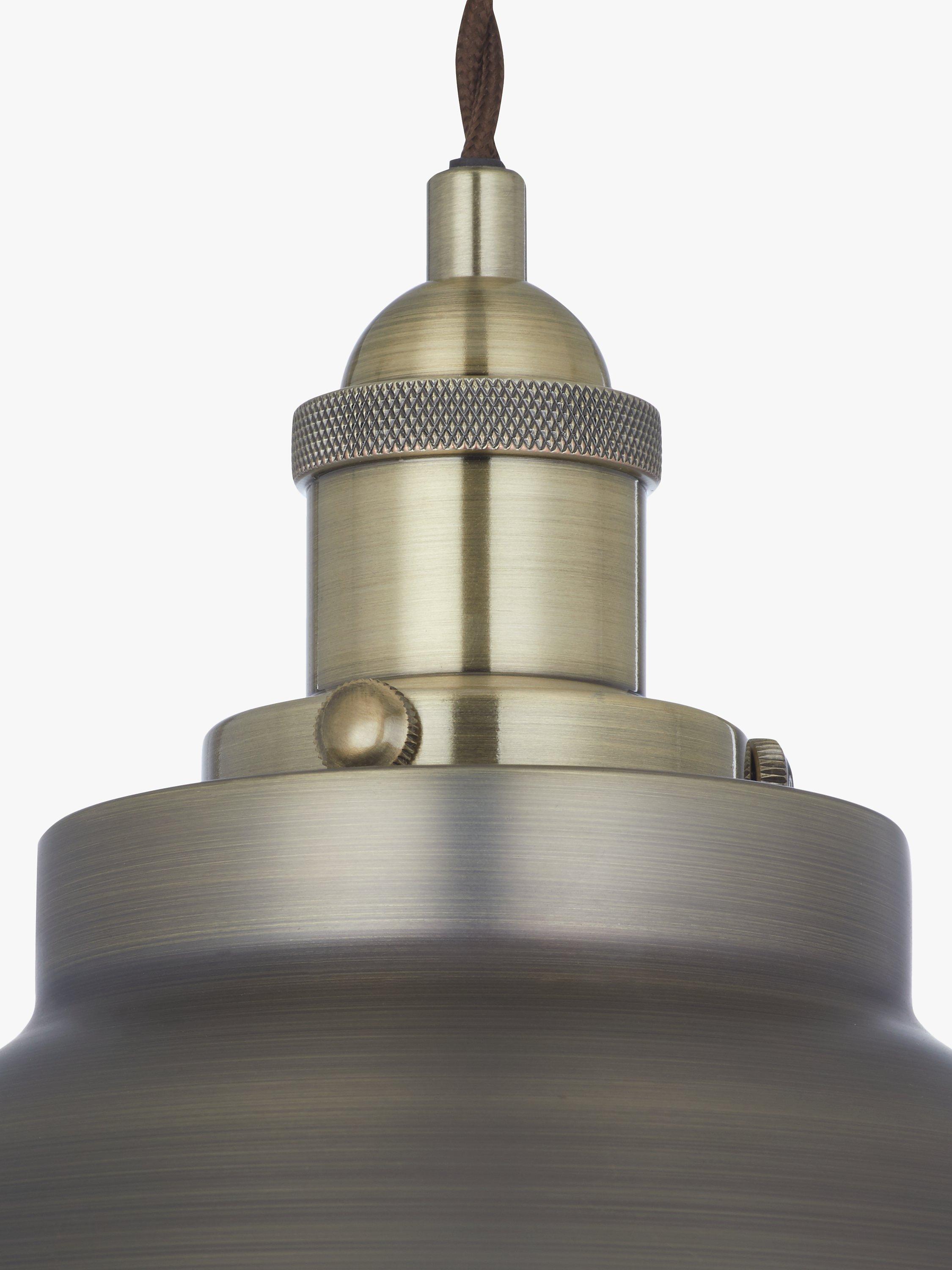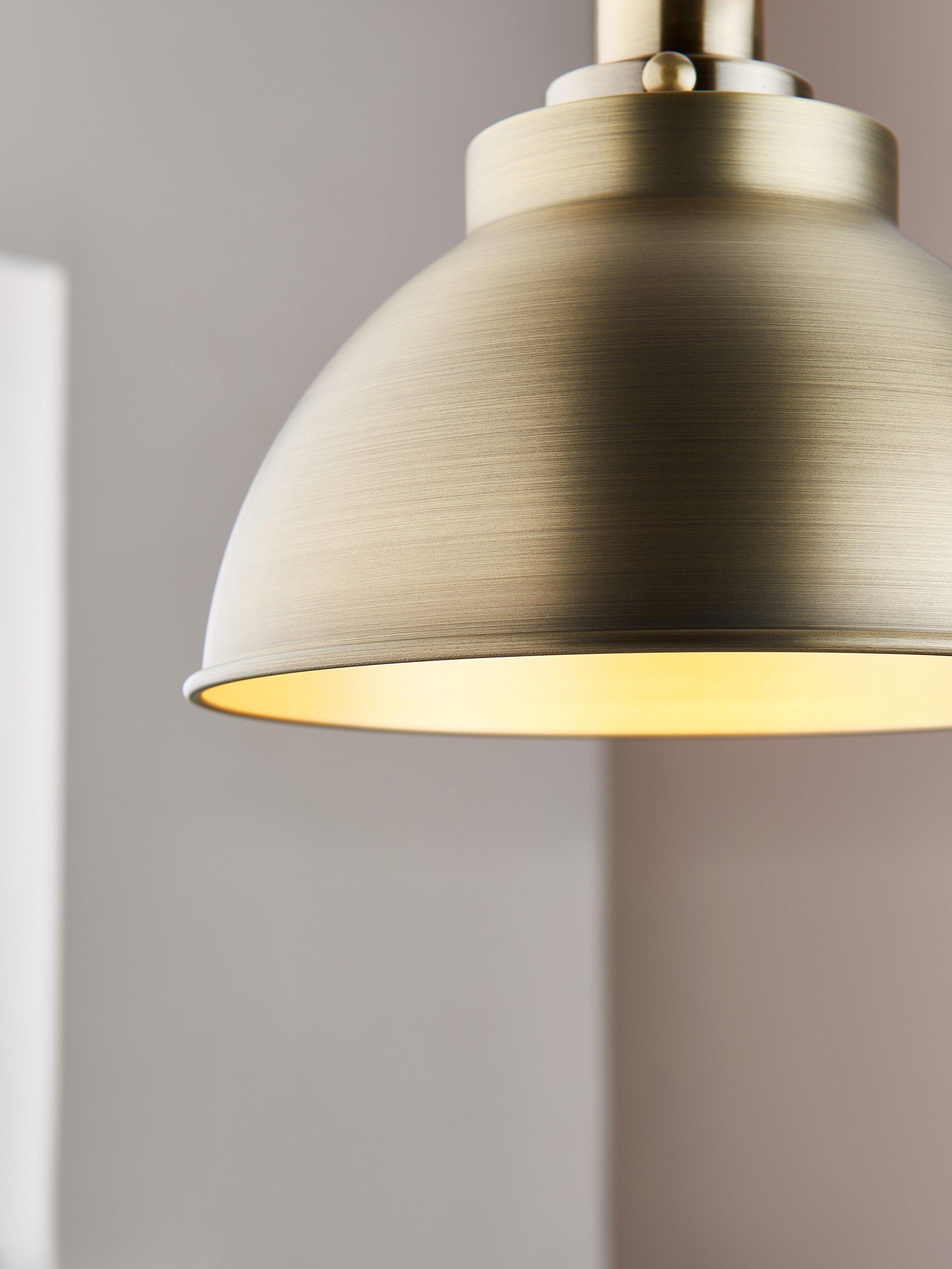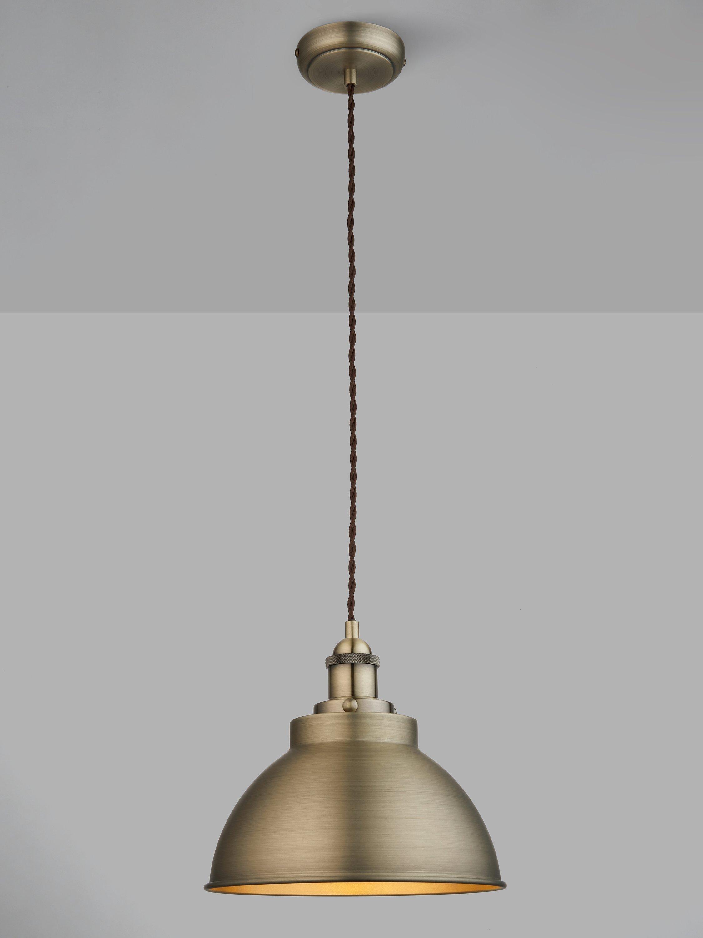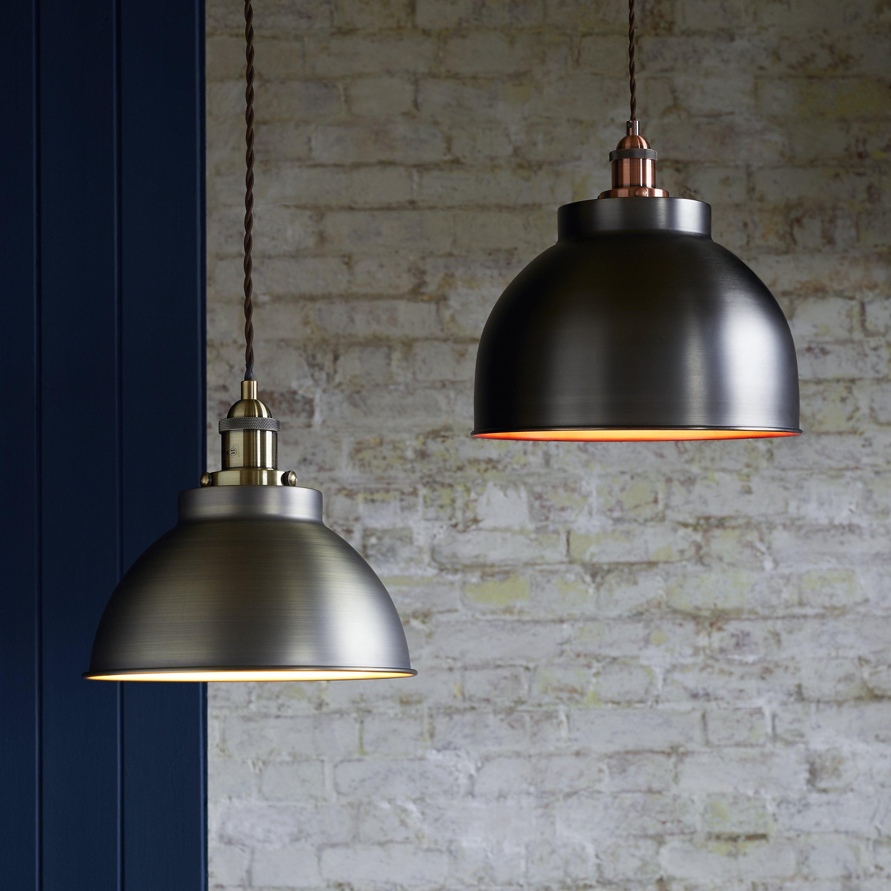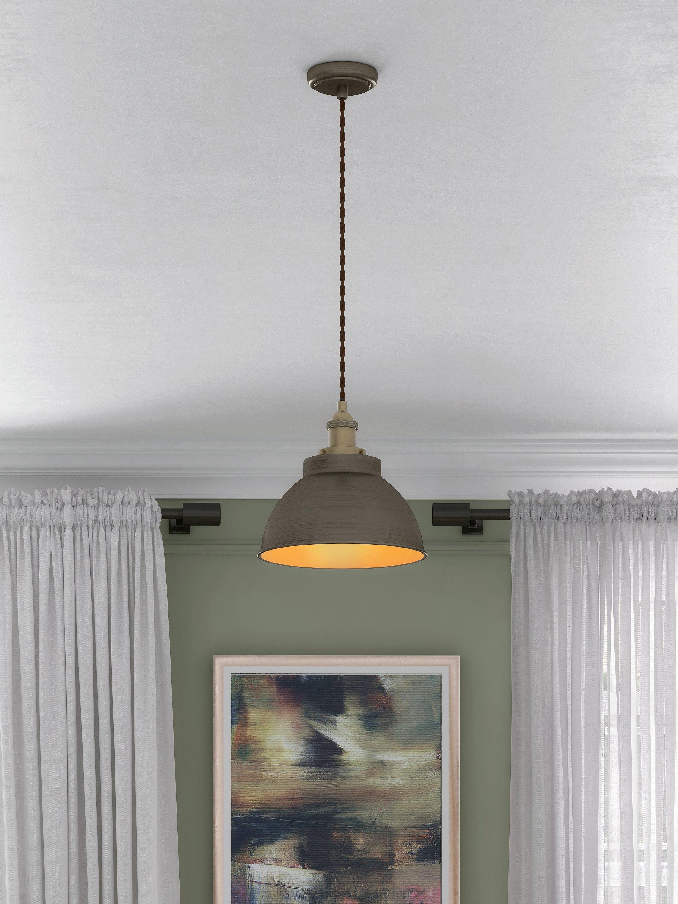 Available in a range of finishes to suit a host of interior settings, our small Baldwin ceiling light has a a sleek, industrial-inspired design. The dome-shaped shade has a contrasting painted inner in the Brass and Pewter options, and will cast a warm wash of light in your space. The braided flex is adjustable, allowing you to fit it perfectly in your space. This pendant is ideal for statement home lighting, especially above dining tables, kitchen islands or breakfast bars.