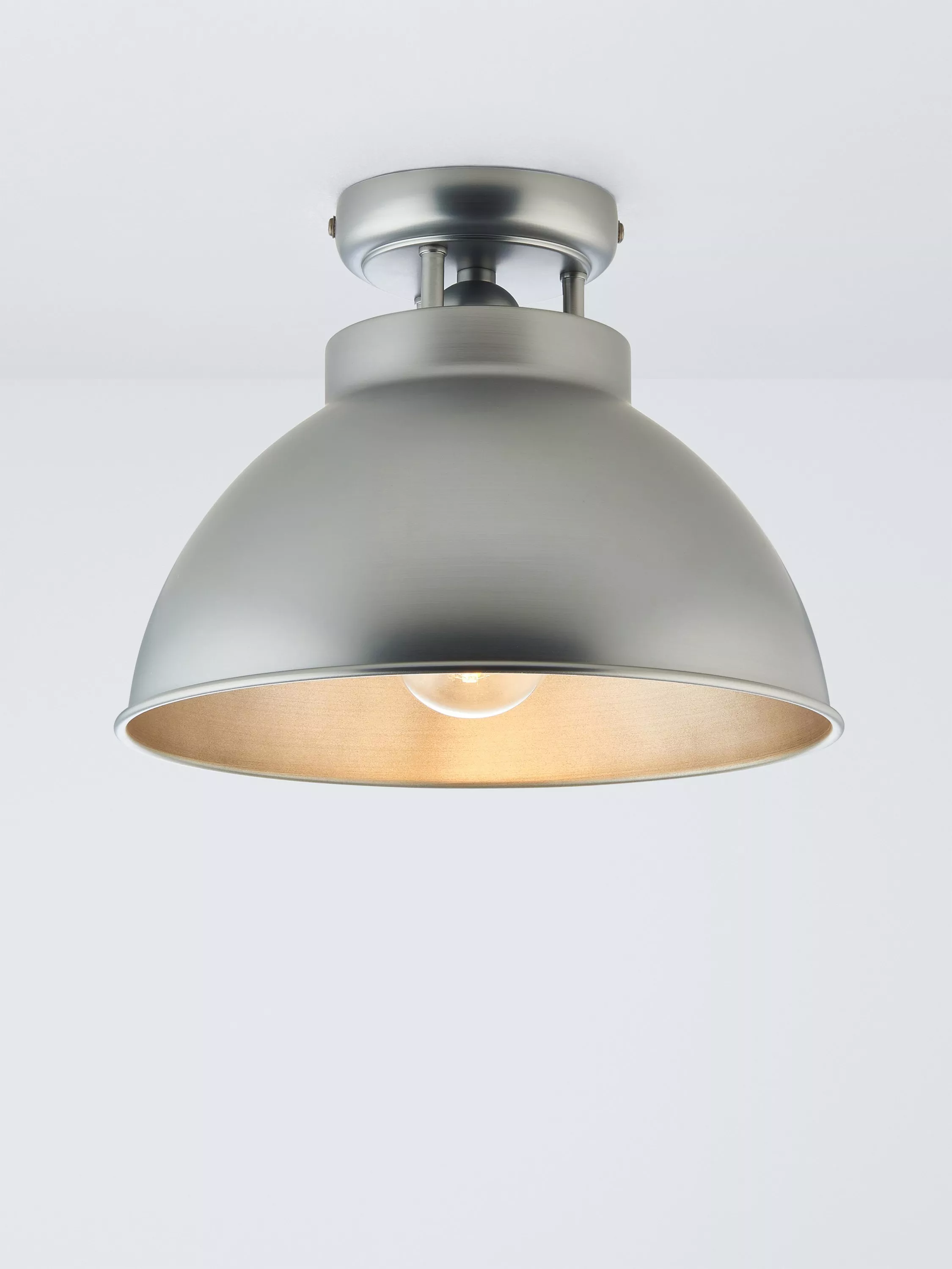 If you're a fan of our Baldwin lights but don't have the space to hang a pendant, we've designed its signature dome style in a semi-flush fitting. Great if your room is smaller or the ceiling is low, it has a minimal drop but still casts the same inviting warm glow of light in your space, especially thanks to its painted inner.