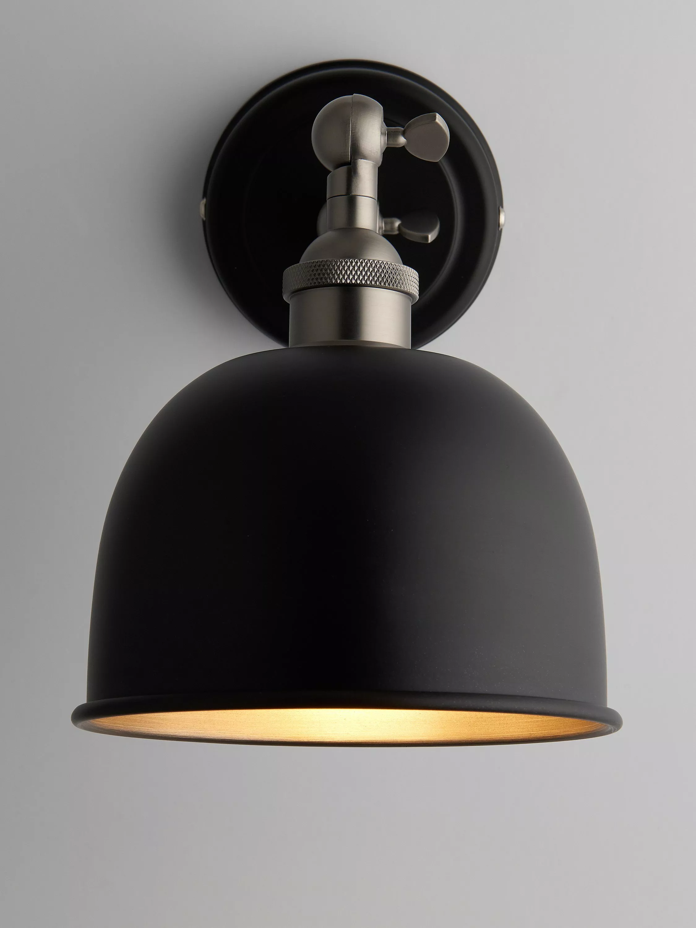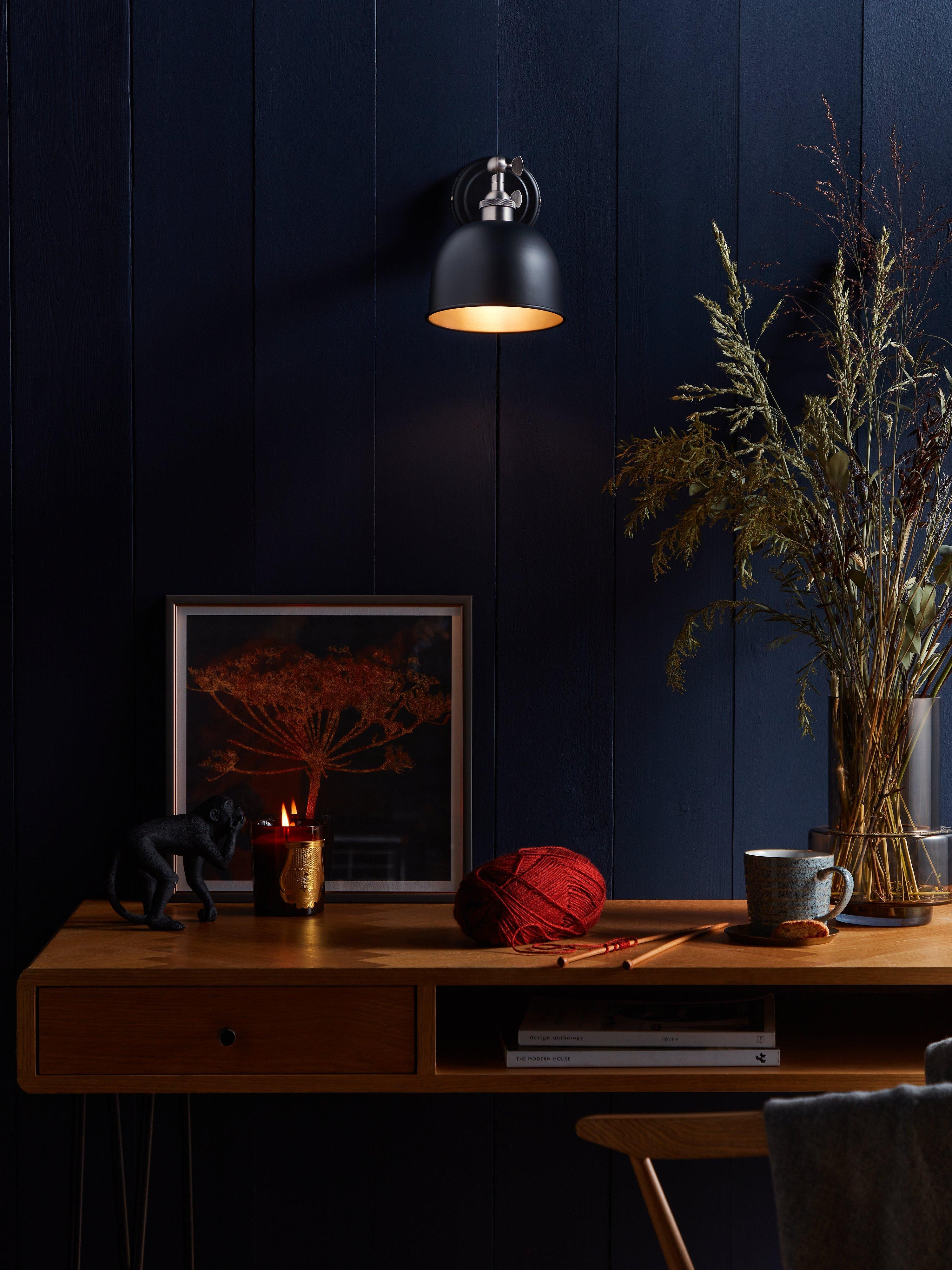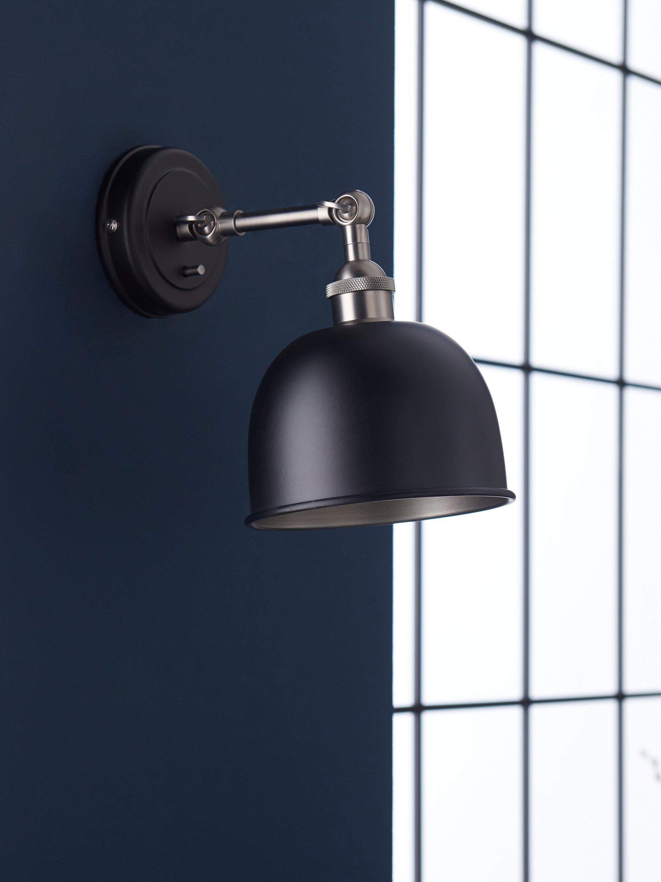 This Baldwin wall light is designed with a tilt-mechanism, making it even easier to cast light exactly where you need it. Made from metal in gloss, matt and antique finishes, its sleek design is ideal for both modern and traditional, country-inspired interiors. The dome-shaped shade has a contrasting painted inner to enhance a warm glow of light.