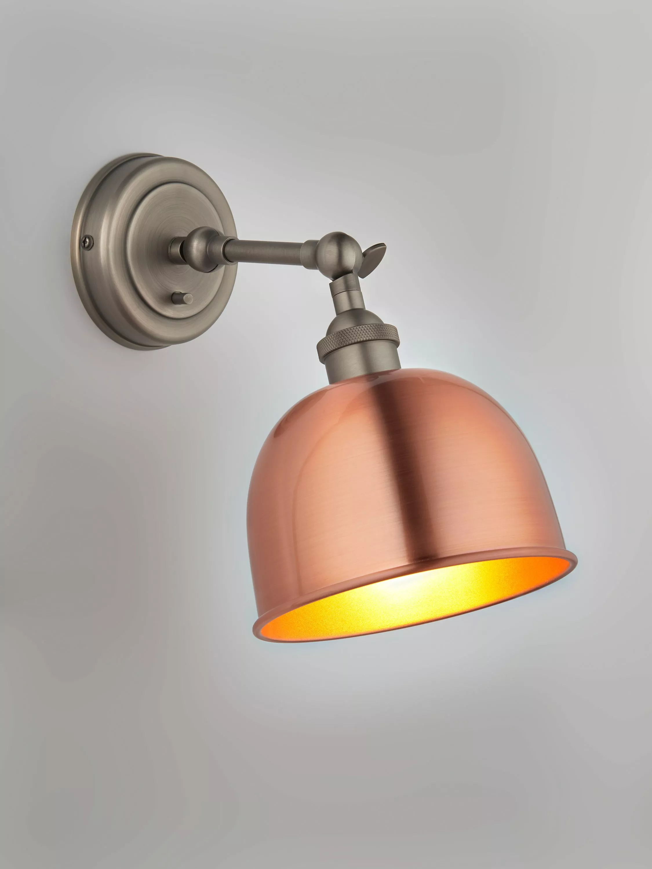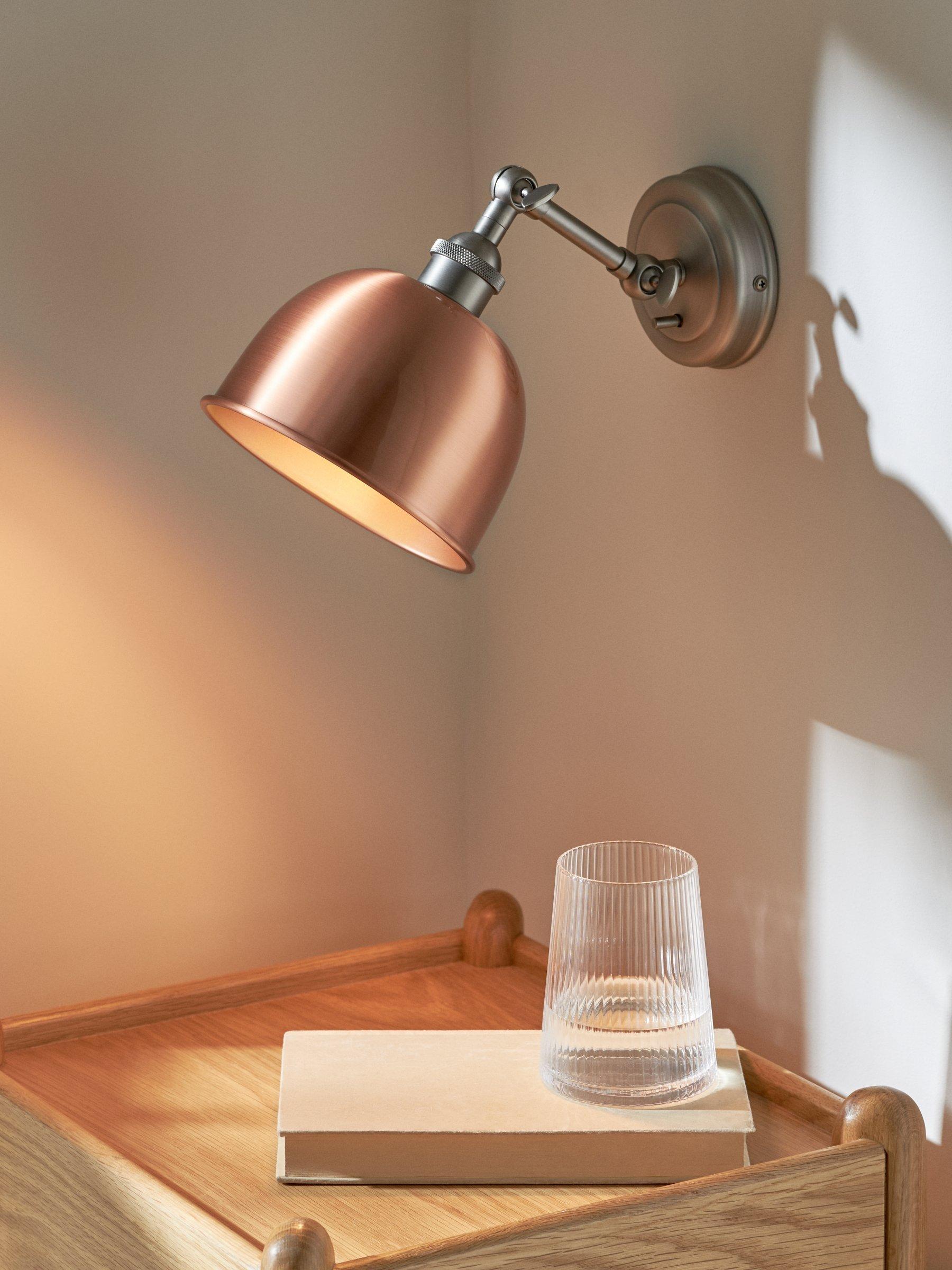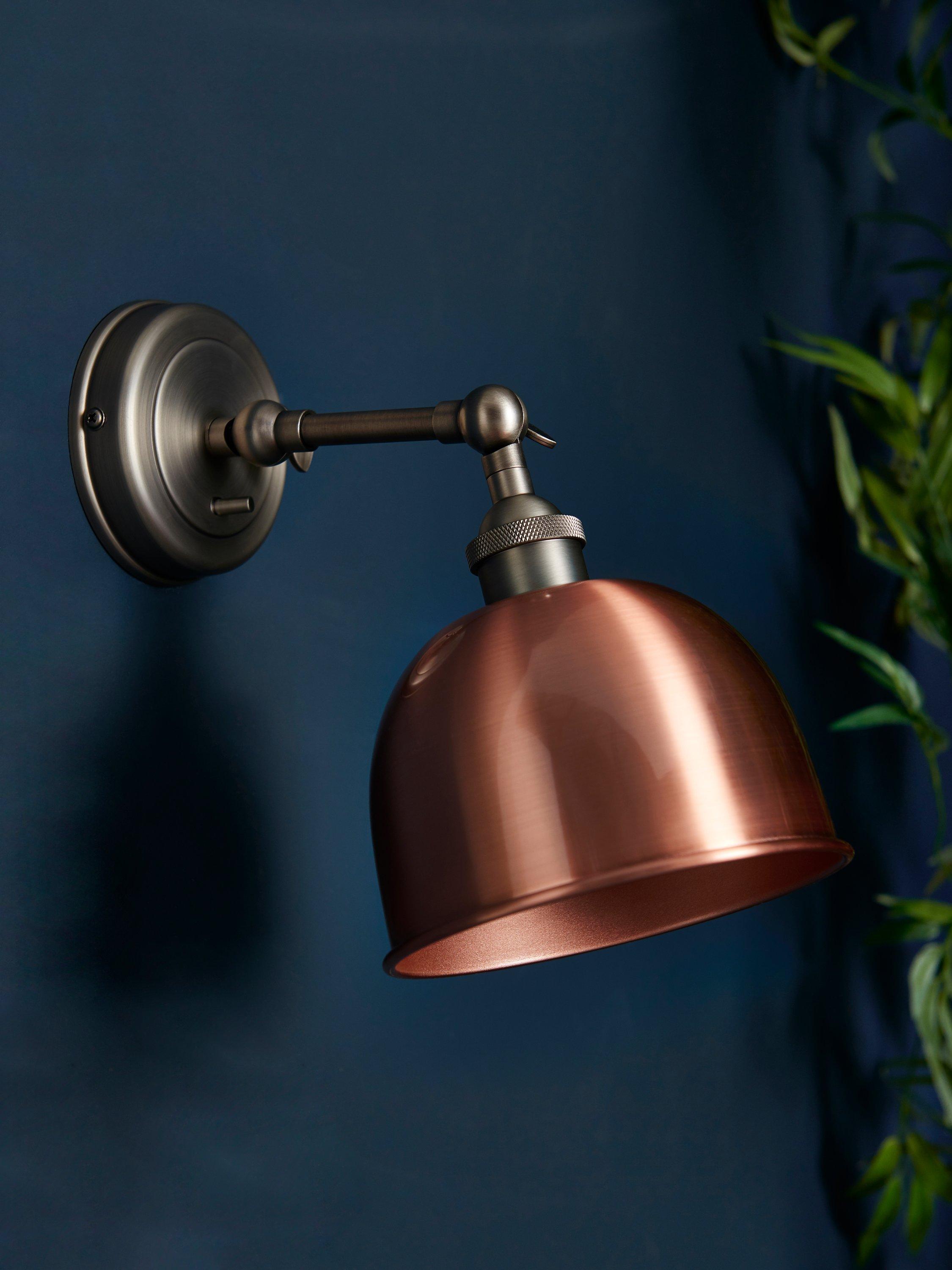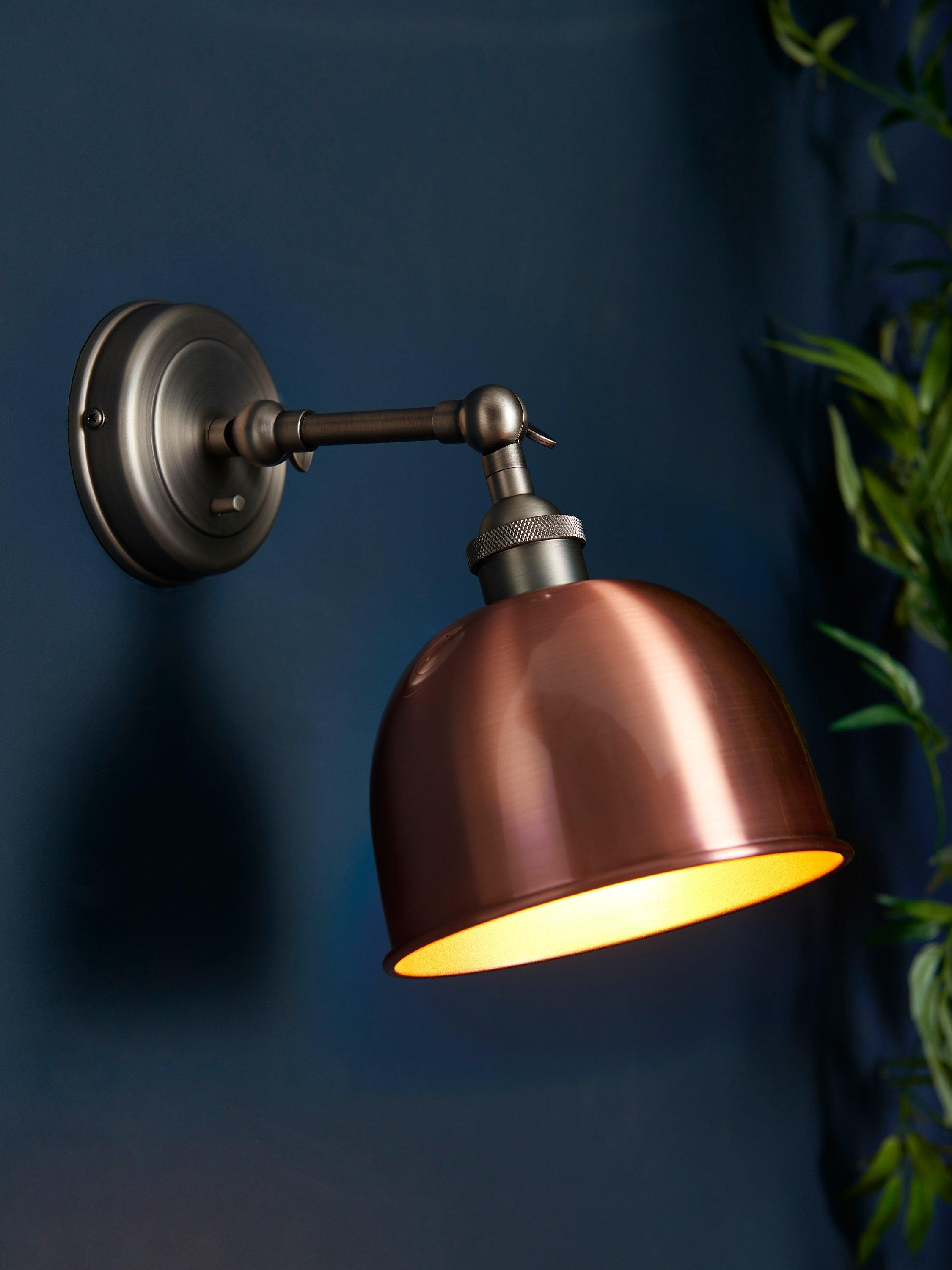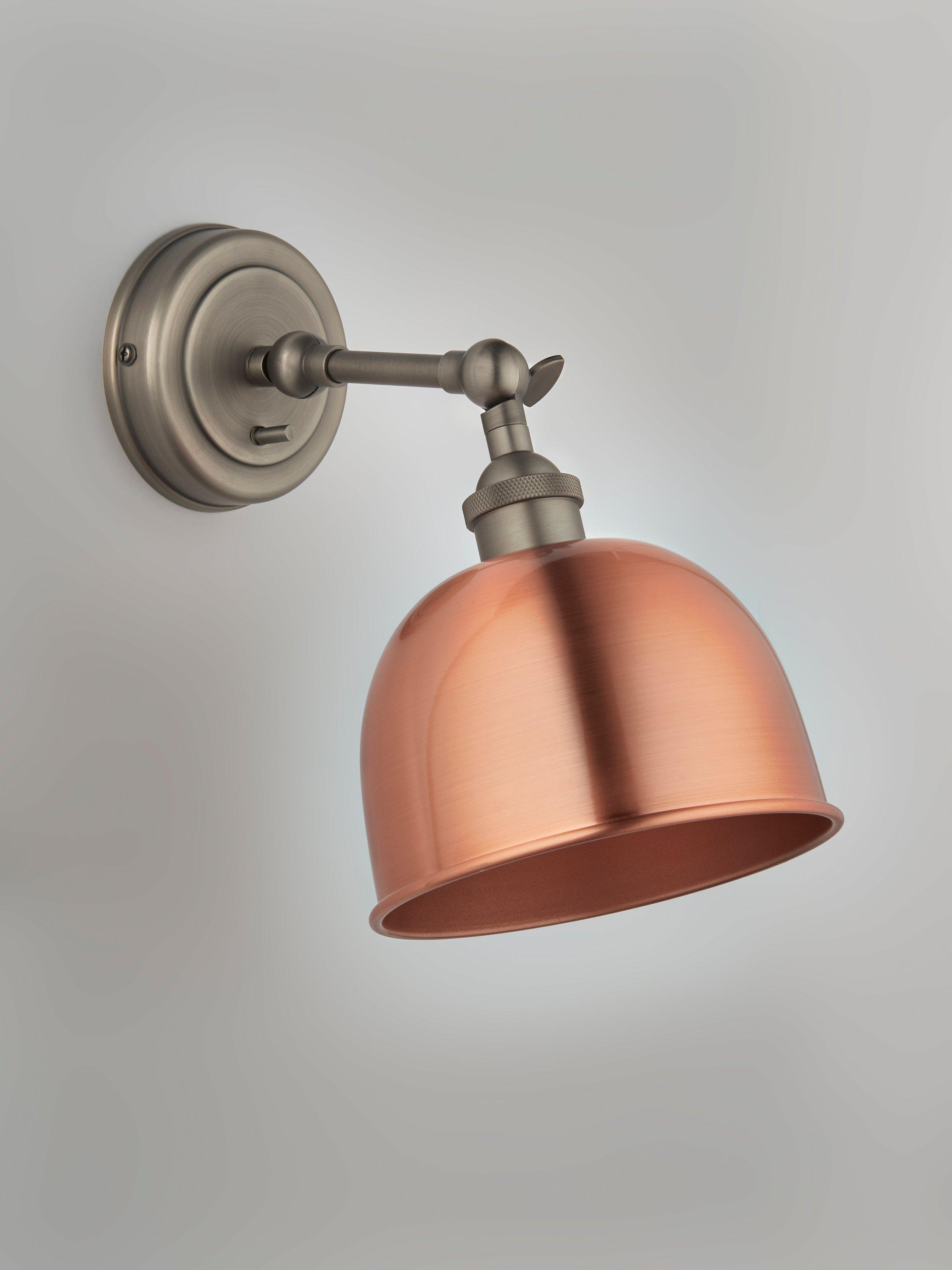 This Baldwin wall light is designed with a tilt-mechanism, making it even easier to cast light exactly where you need it. Made from metal in gloss, matt and antique finishes, its sleek design is ideal for both modern and traditional, country-inspired interiors. The dome-shaped shade has a contrasting painted inner to enhance a warm glow of light.