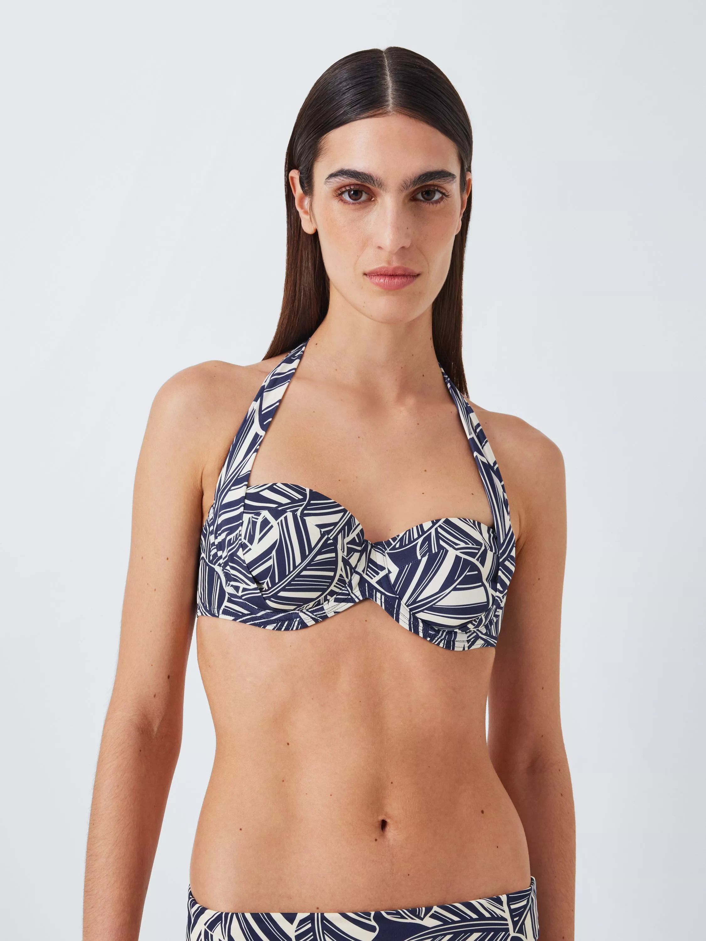 Designed with a leaf-inspired print, this bikini top has sling straps that can be tied in a halterneck when it's swim time or straight around your back for a strapless style when it's tie to sunbathe.