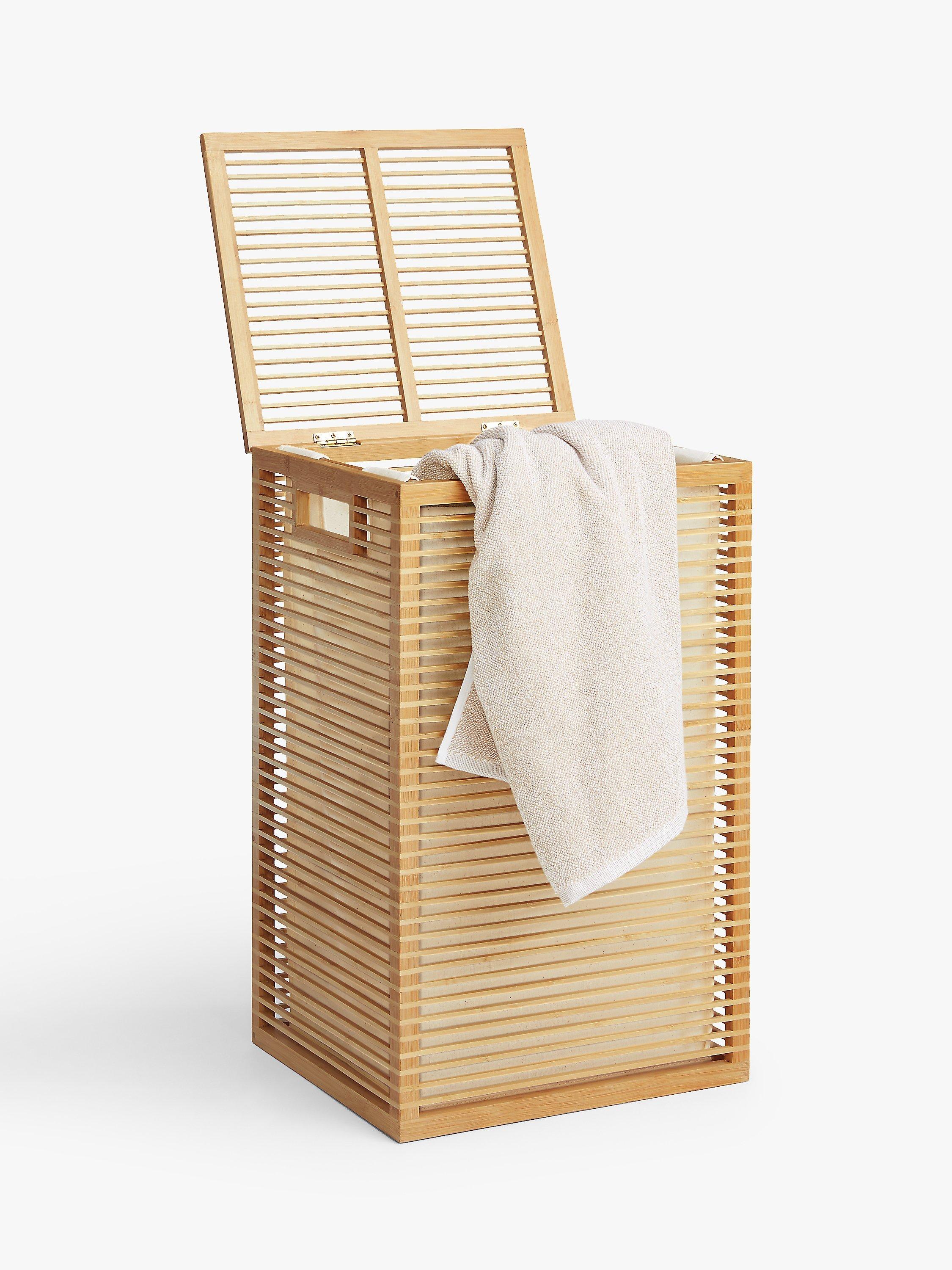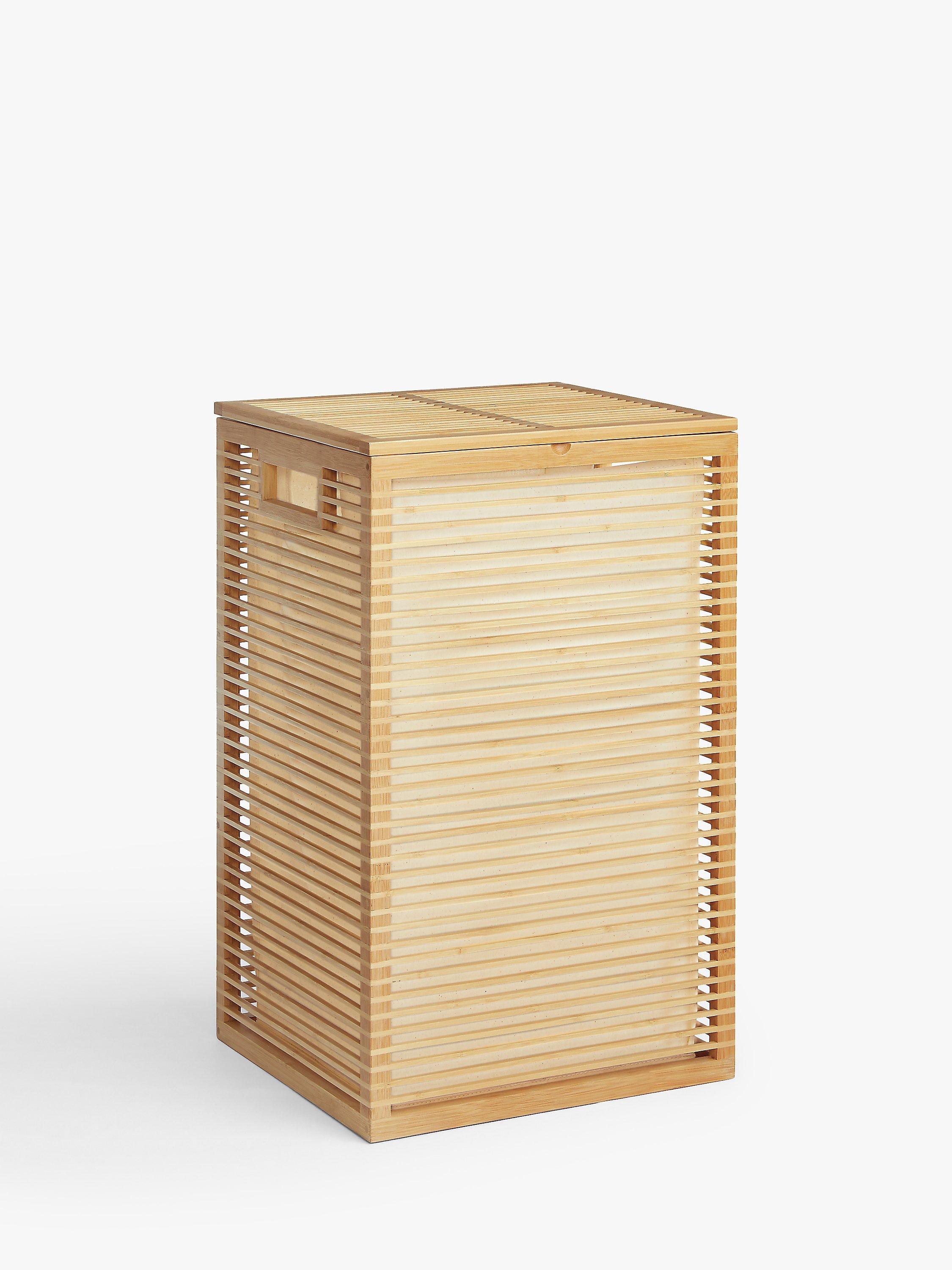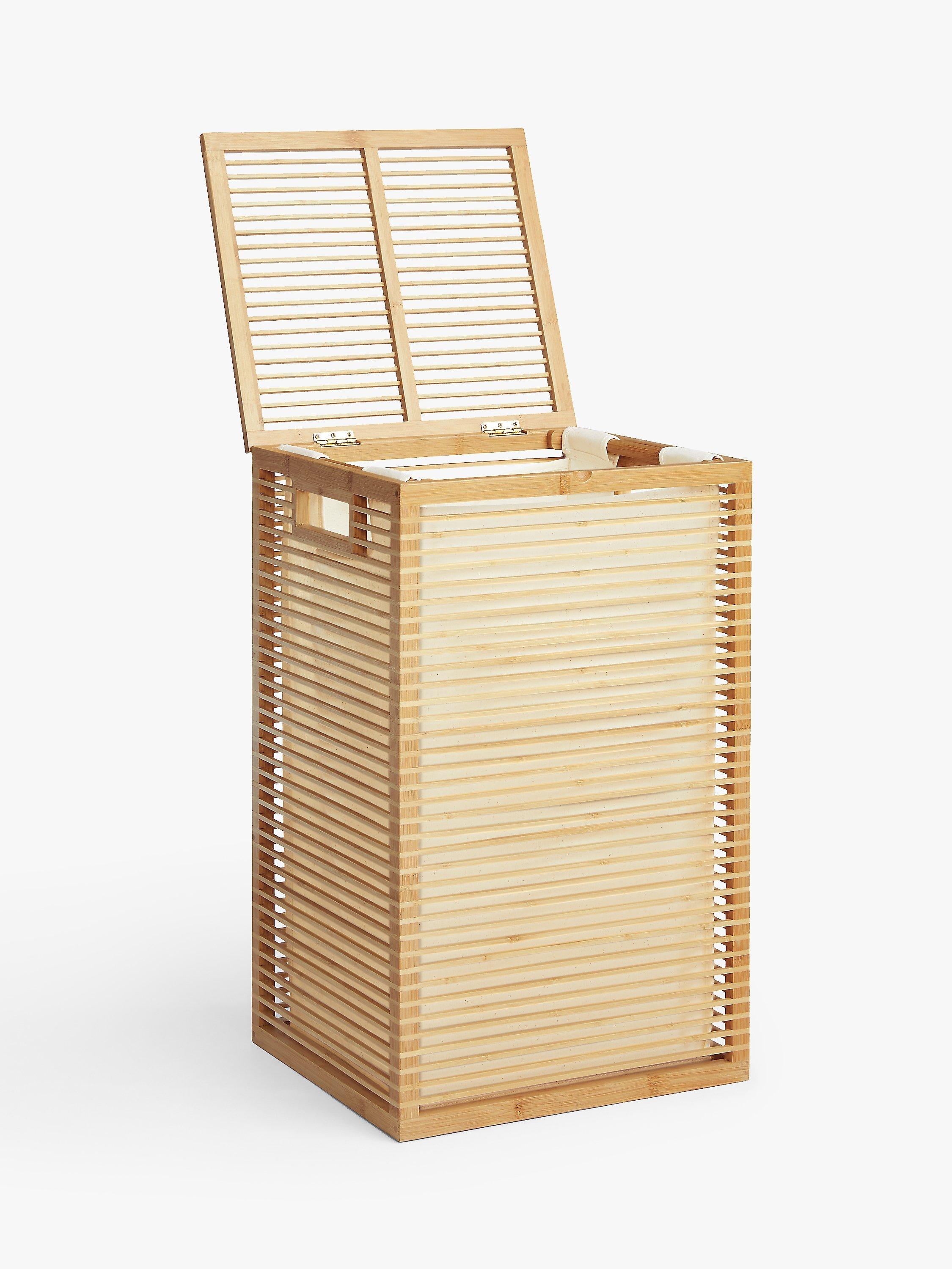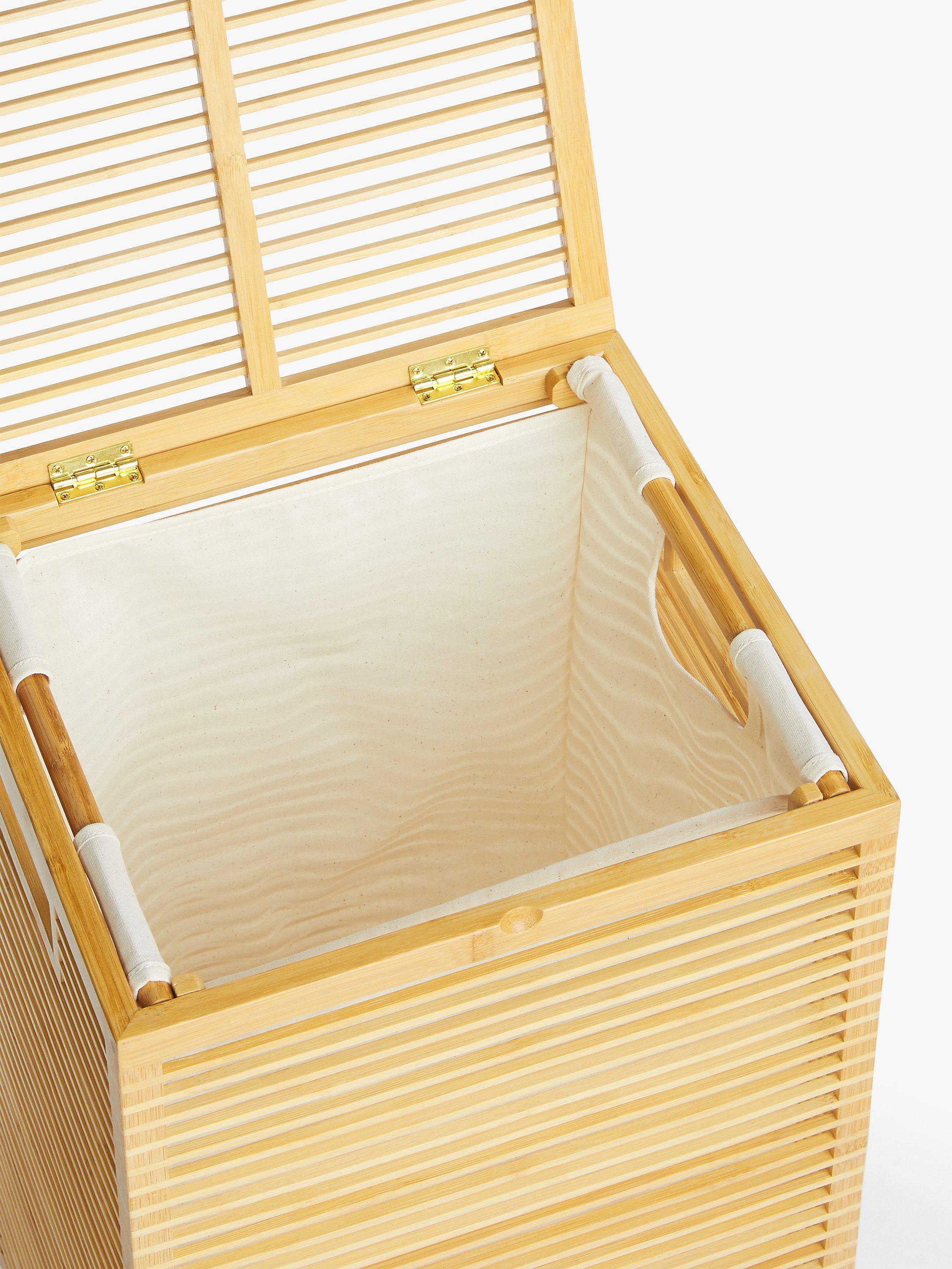 Neatly tidy your laundry away in this versatile box made with a bamboo frame and featuring a polyester inner lining. With a simple, hinged lid it's a great way to keep your bathroom or bedroom tidy without compromising on style. The open-framed style allows air to circulate through your laundry reducing the likelihood of nasty niffs.