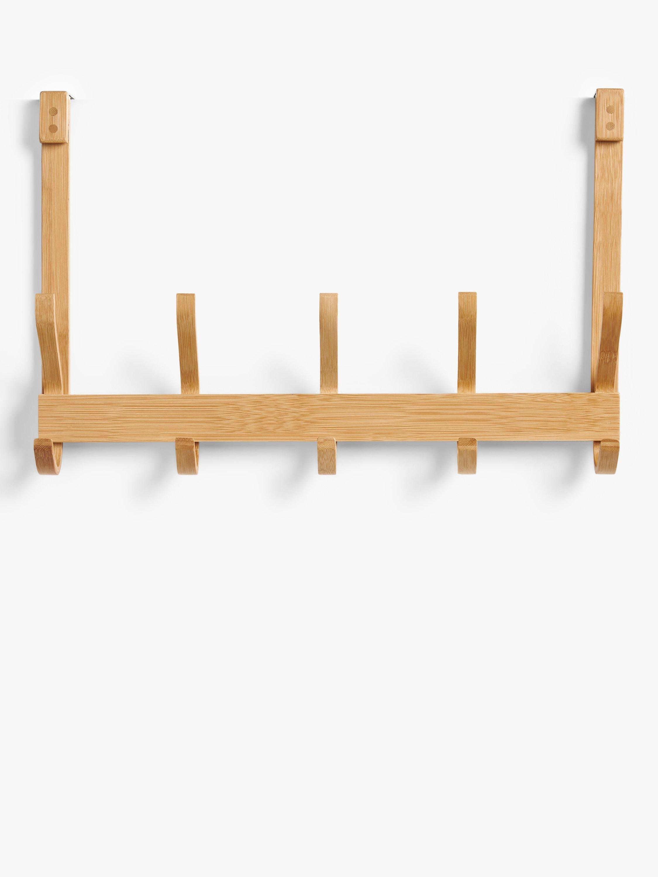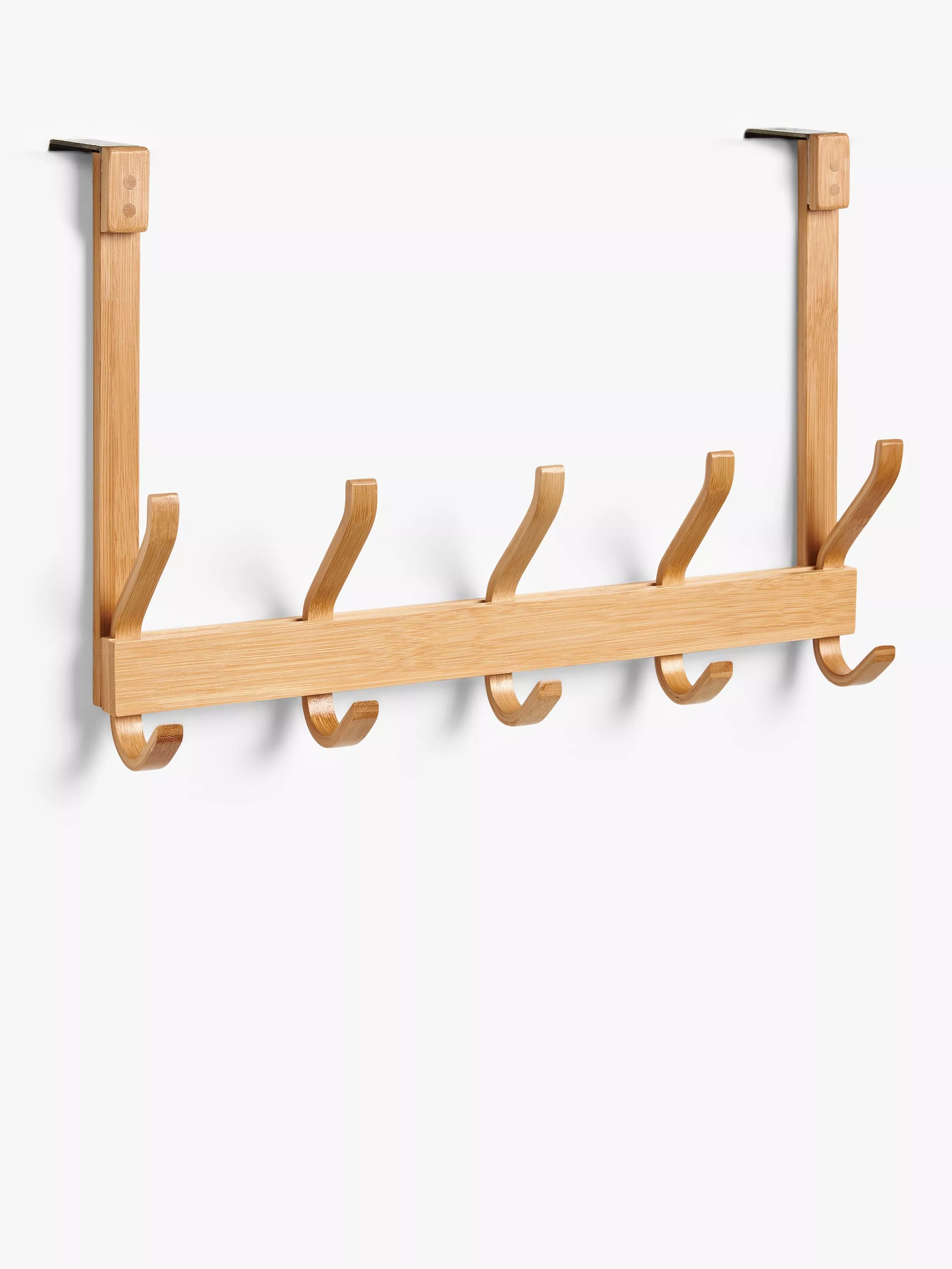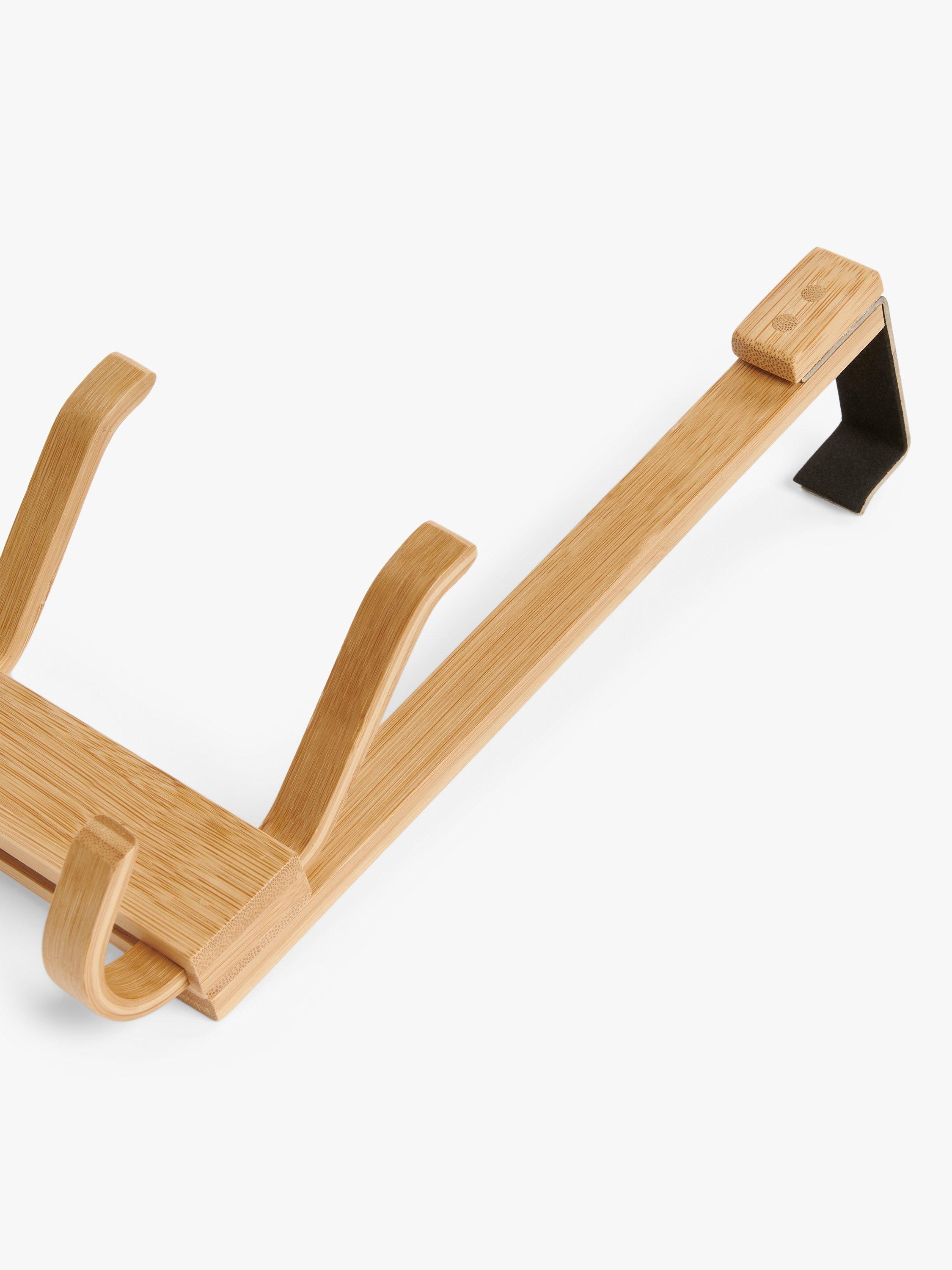 Made from naturally sustainable bamboo, this 5 hook rack hangs over a door to give you extra hanging space without the need for tools or fixings.