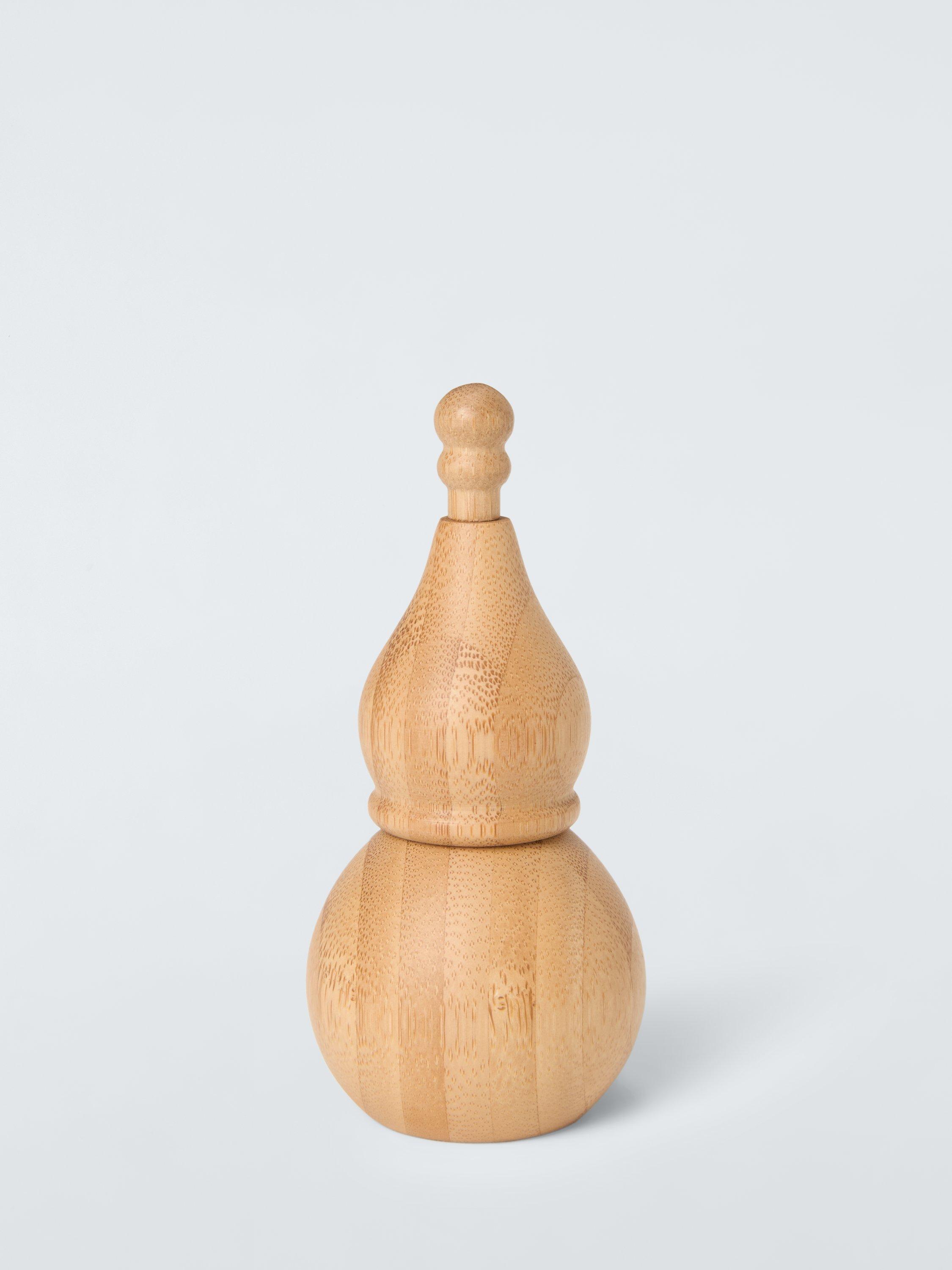 Cruet for keeping shichimi togarashi, a Japanese spice and condiment for sprinkling on salads, rice dishes and noodles. Made of bamboo, it doesn't absorb water or odours, making it ideal for use with food.