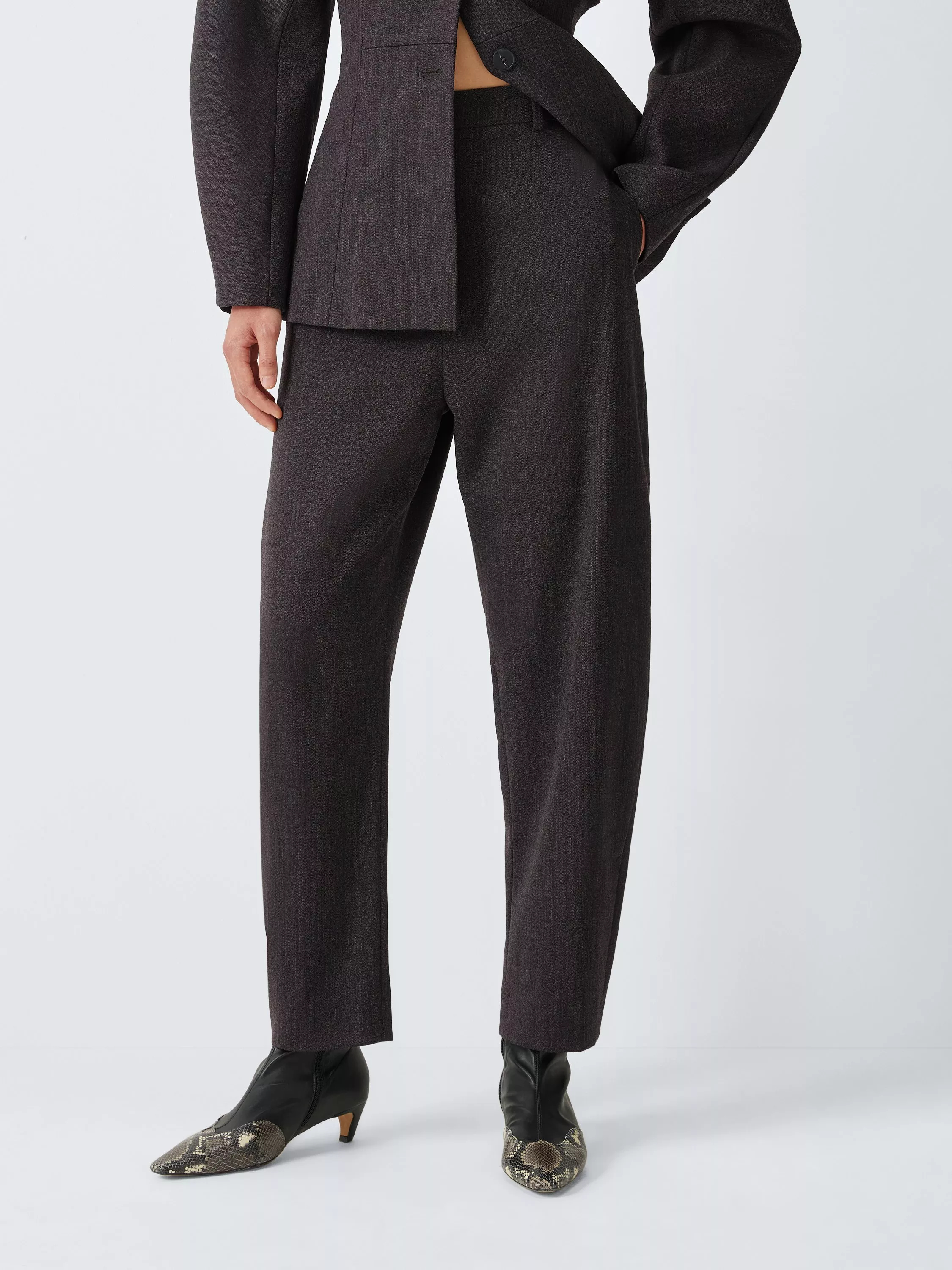 Woven from a woollen blend fabric, these tailored trousers feature a barrel-leg silhouette. Styled with two belt loops and a single button and fly fastening. Pair them with the matching barrel-sleeve jacket.