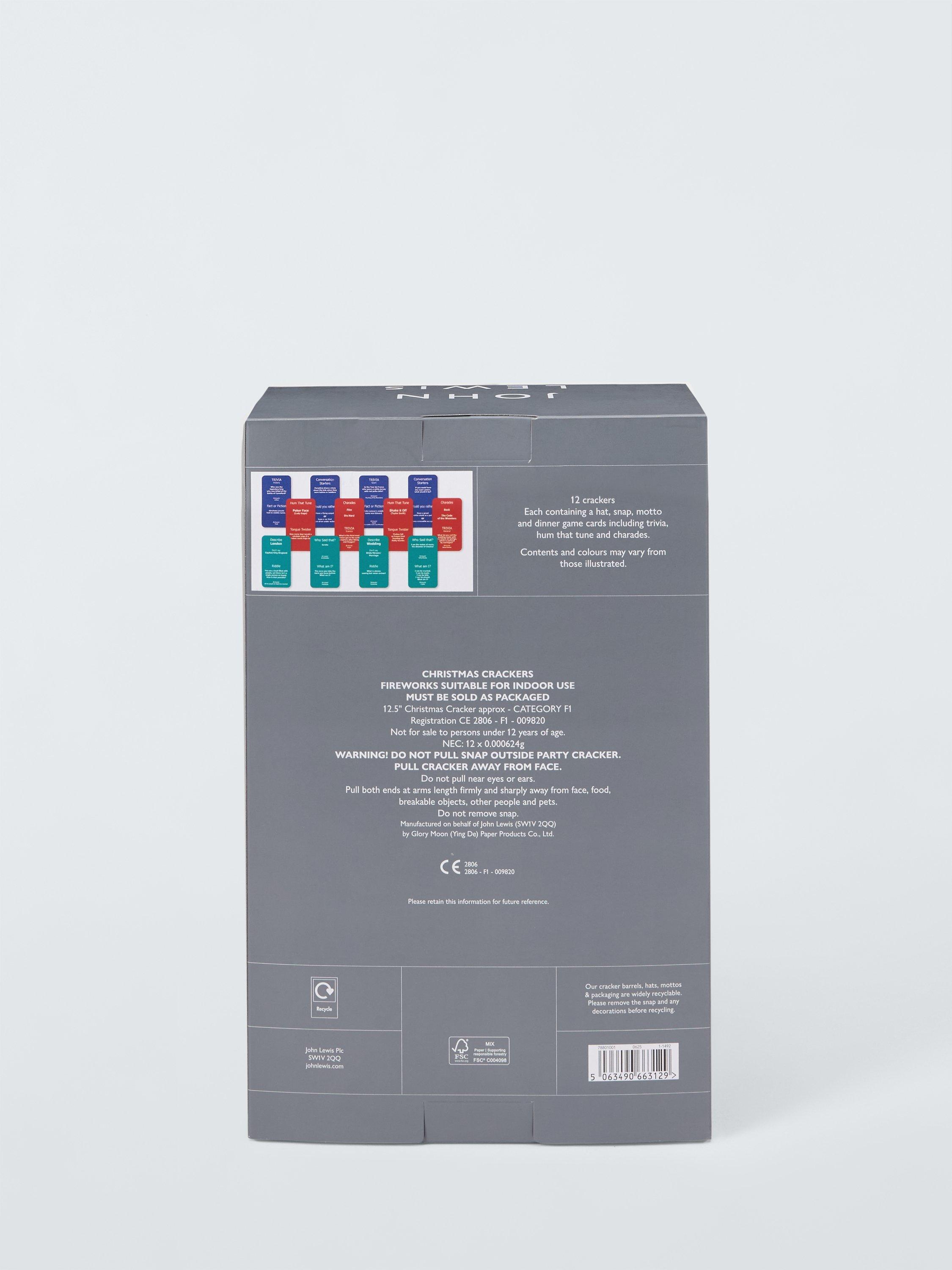 All John Lewis crackers are recyclable, including the paper hats and mottos. We have also upheld our commitment to remain plastic-free with our cracker contents (since 2020), with a wonderful selection of cracker prizes no longer featuring throw-away plastic.