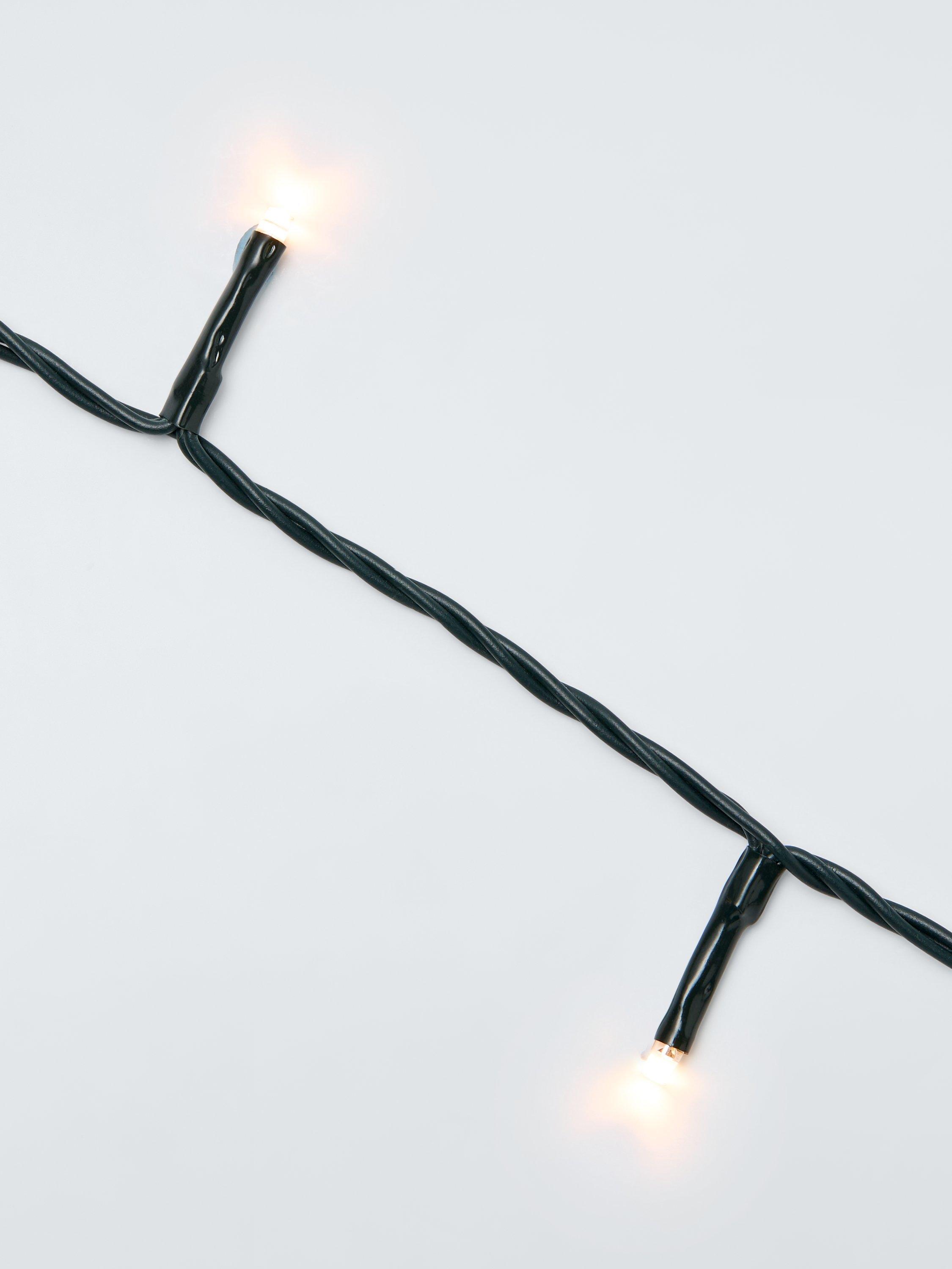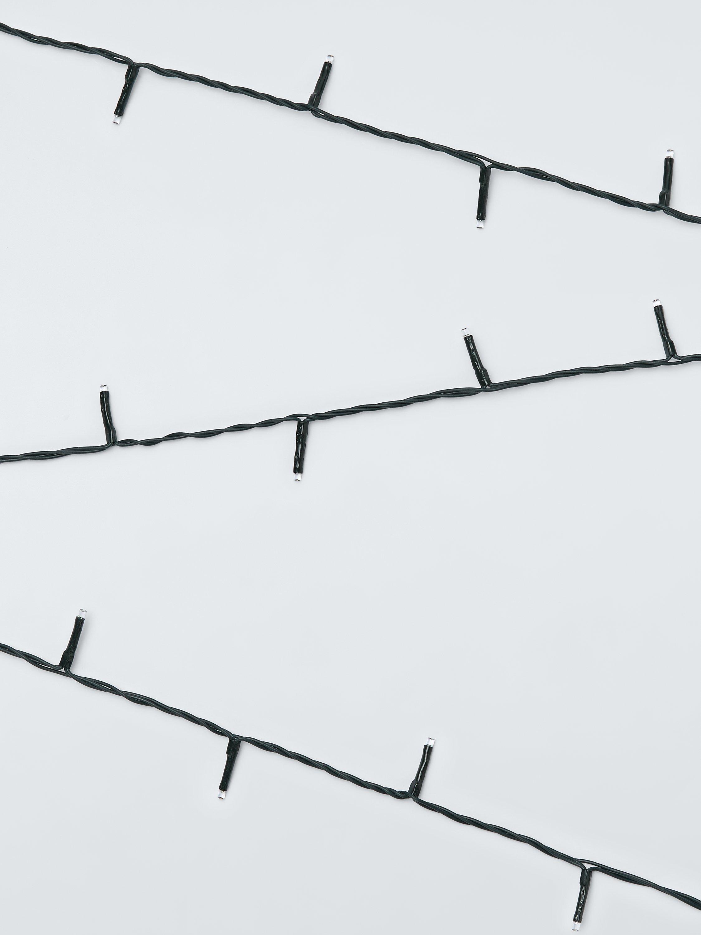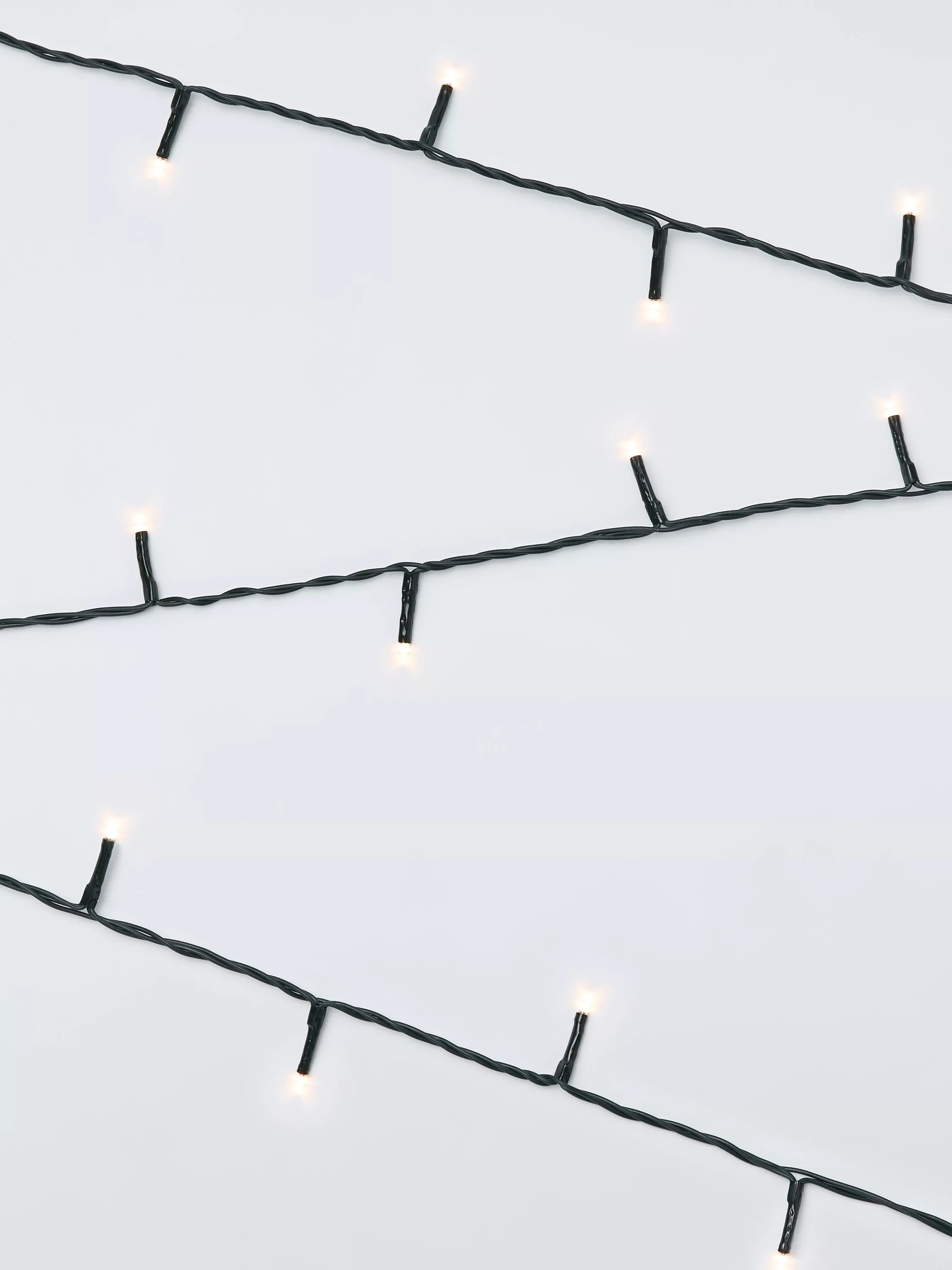 A simple strand of LEDs with a dark green wire. They come with a timer that automatically switches the lights on at the same time each day and off after 8 hours.
