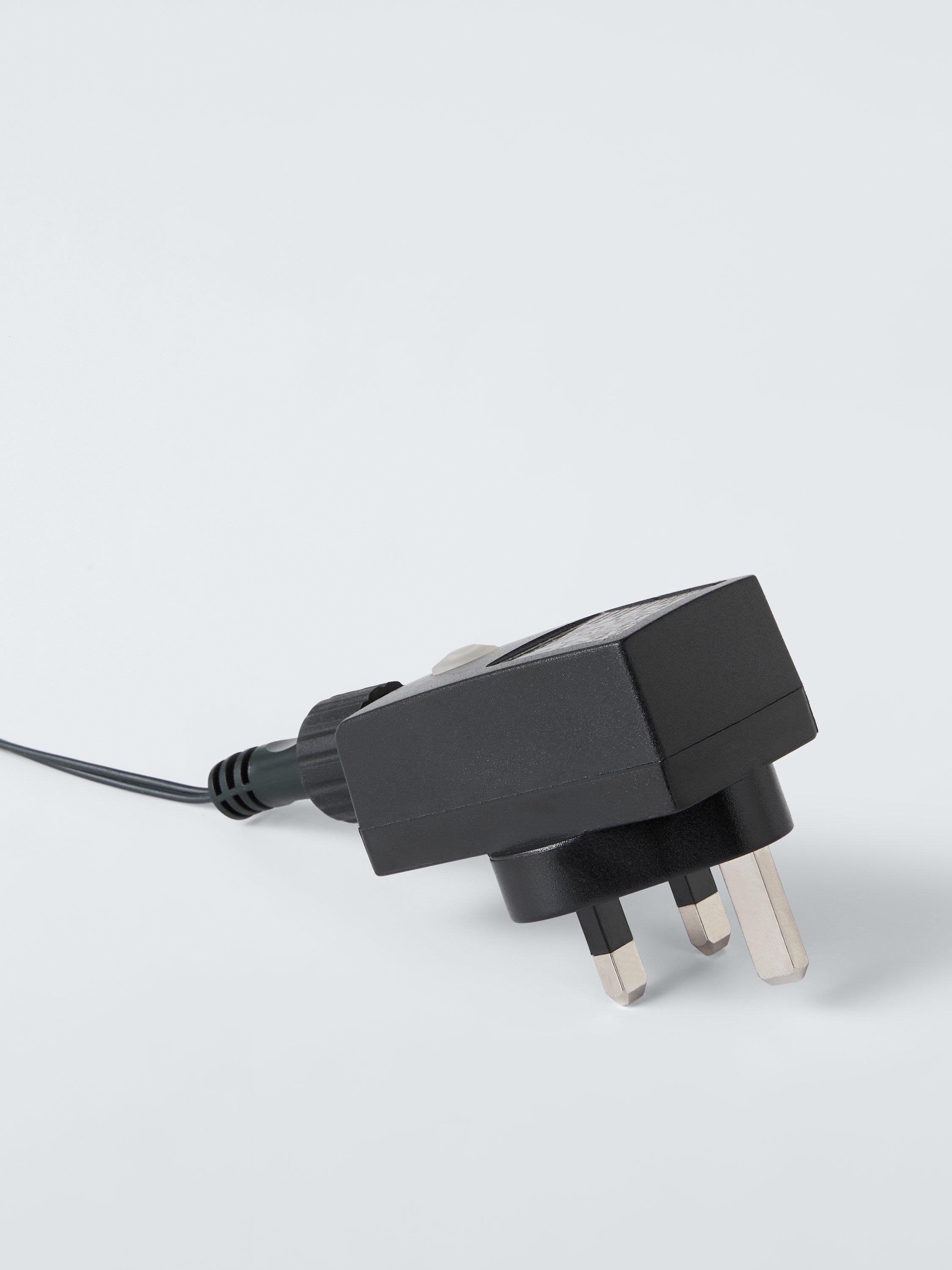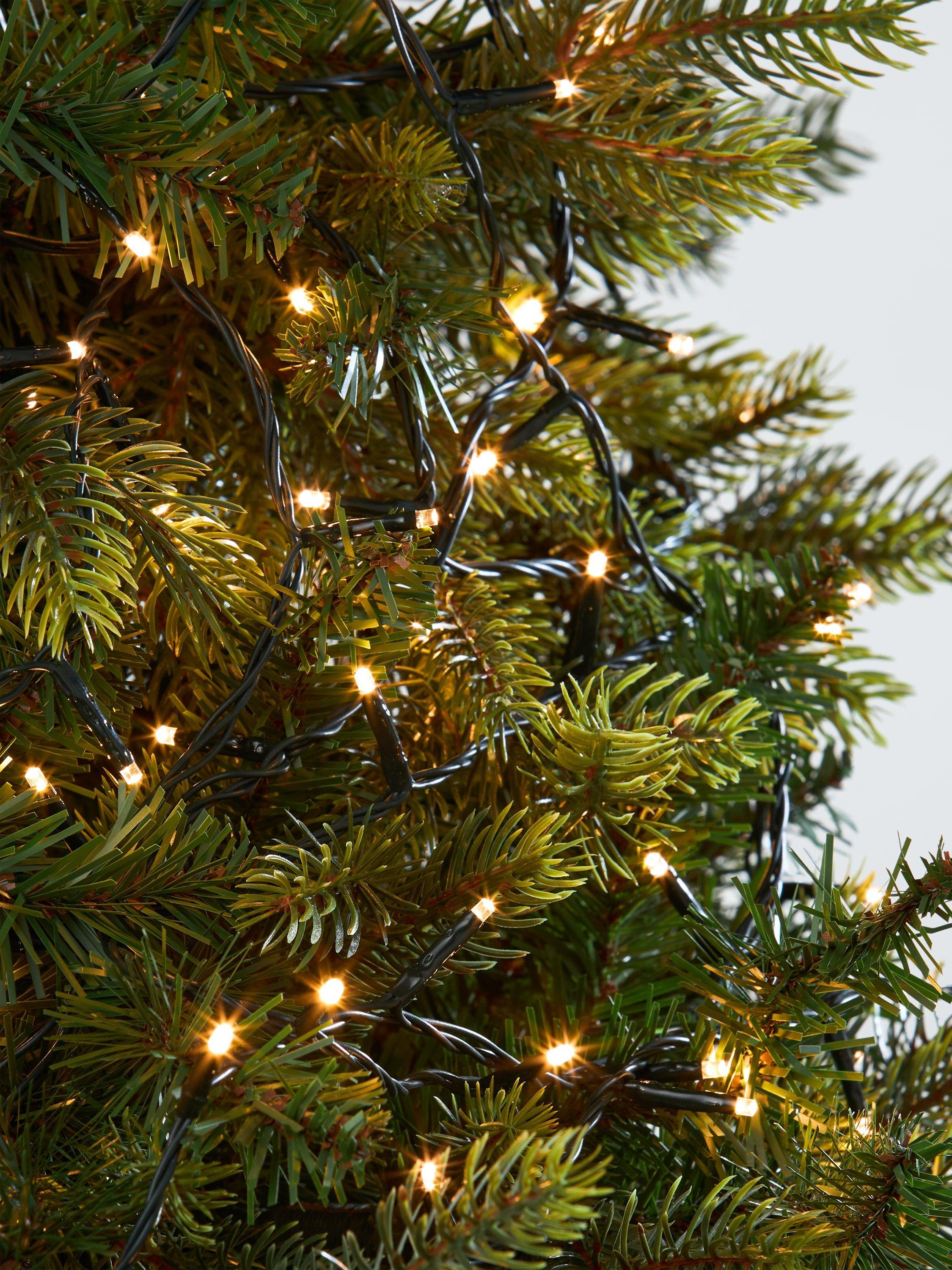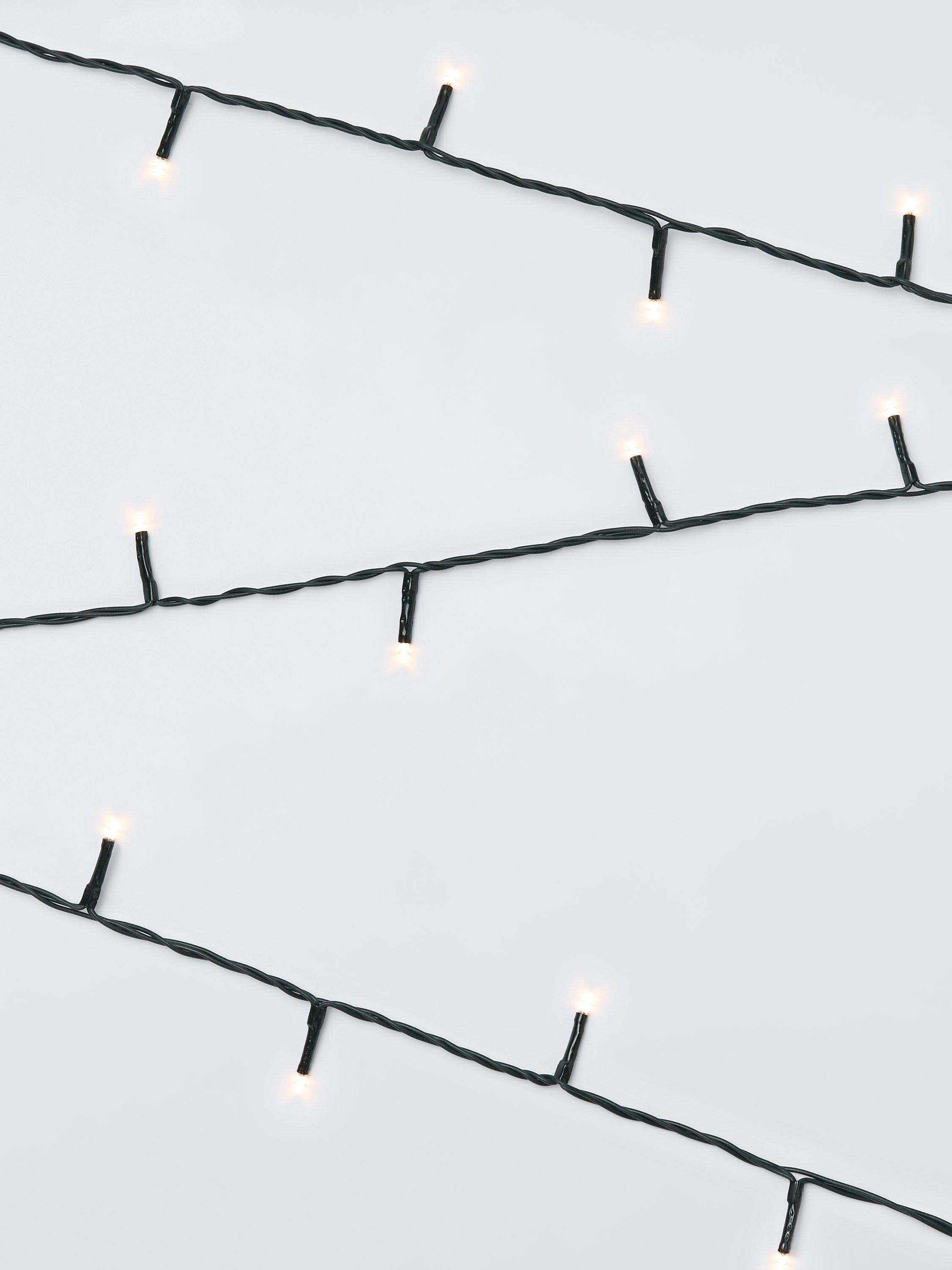 A simple strand of LEDs with a dark green wire. They come with a timer that automatically switches the lights on at the same time each day and off after 8 hours.