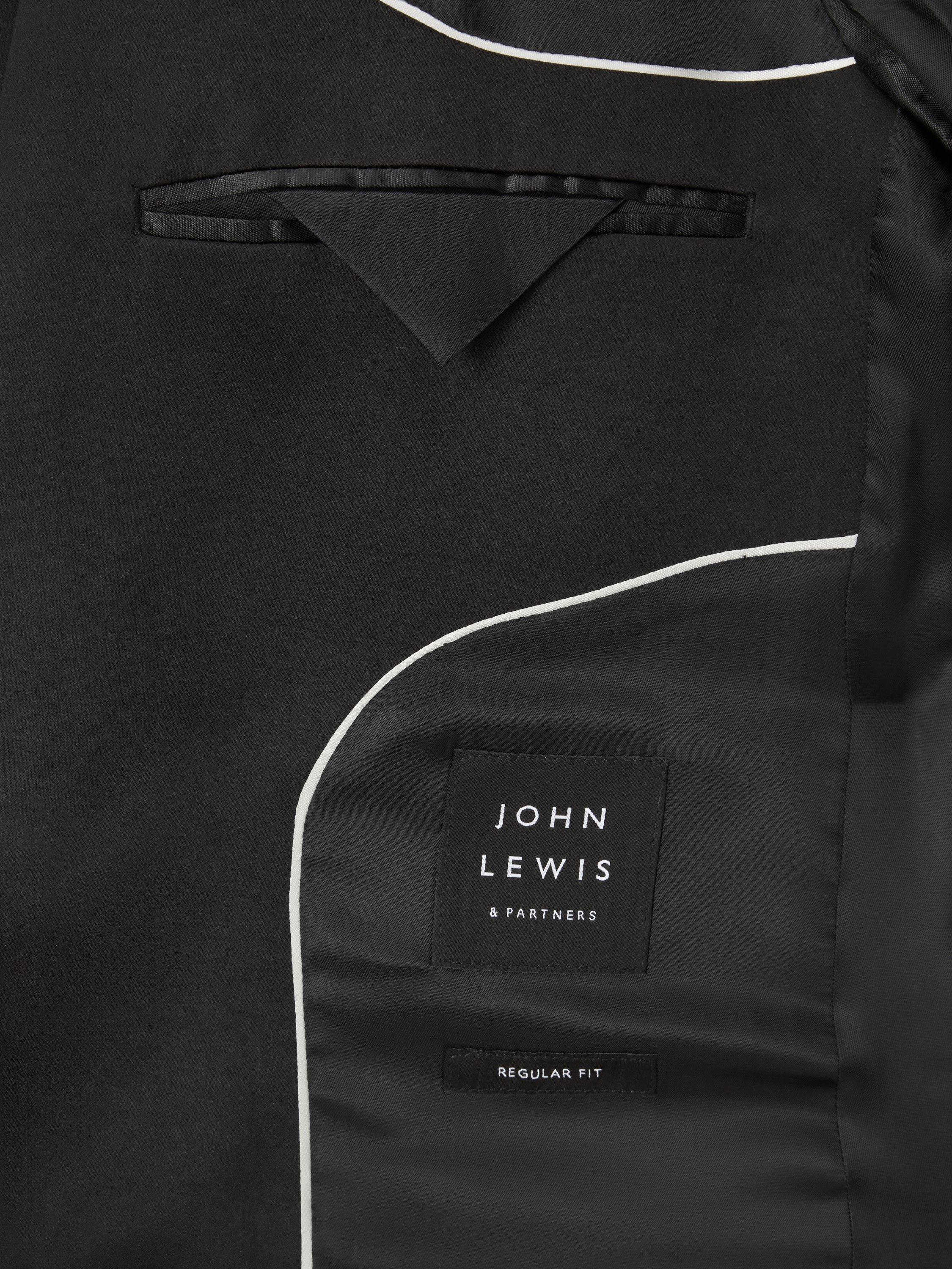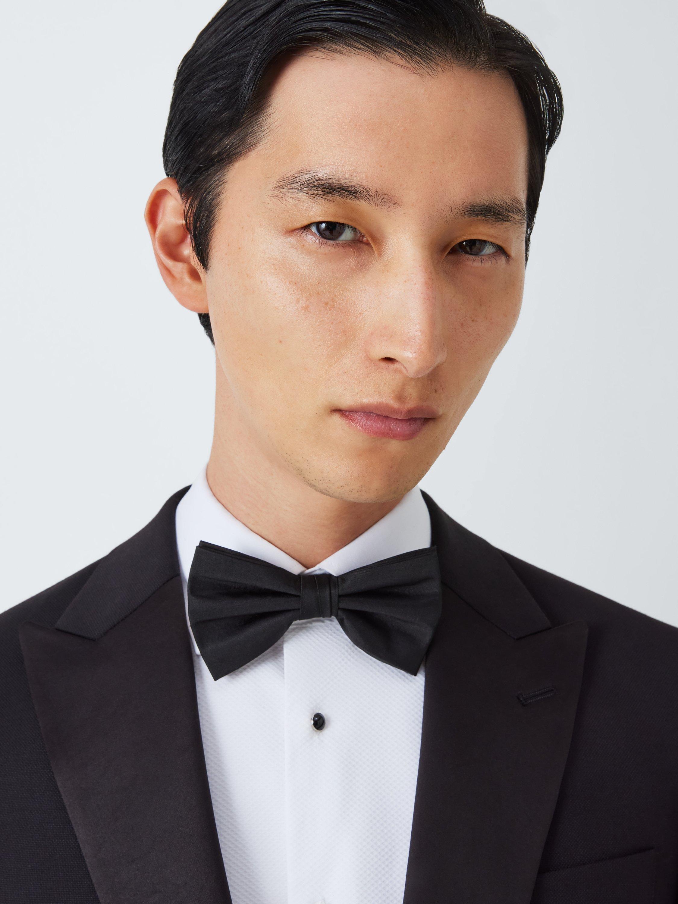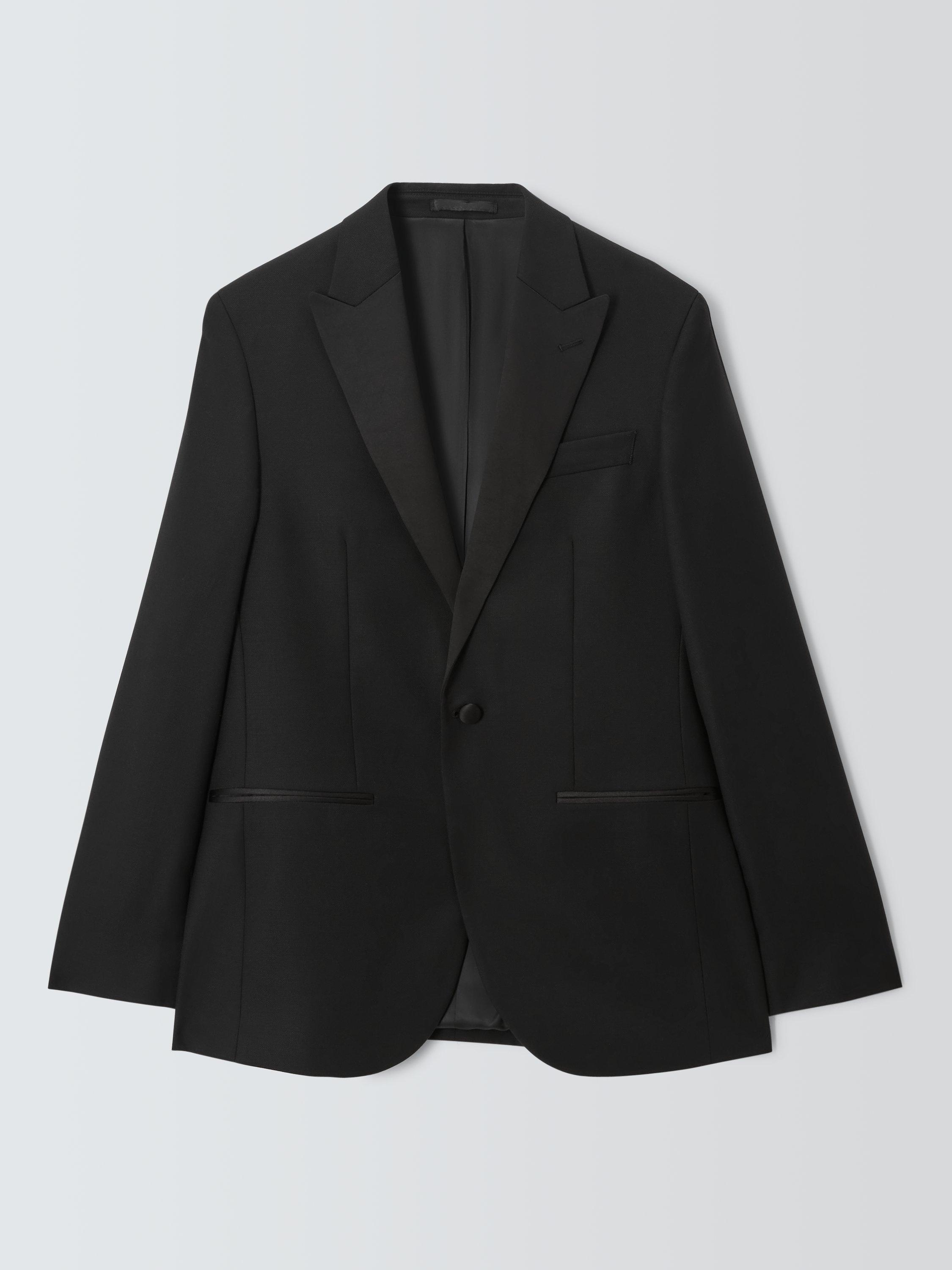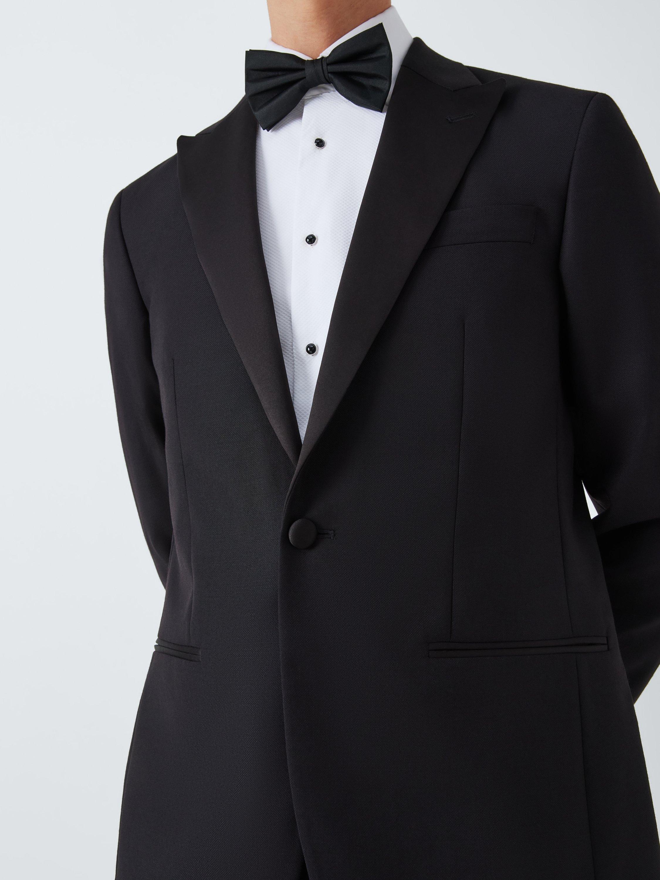 Woven in 100% wool in a basketweave design, our dinner suit jacket is styled with a contrast satin peak lapel, satin jet pockets at the hip and a welt pocket at the chest.