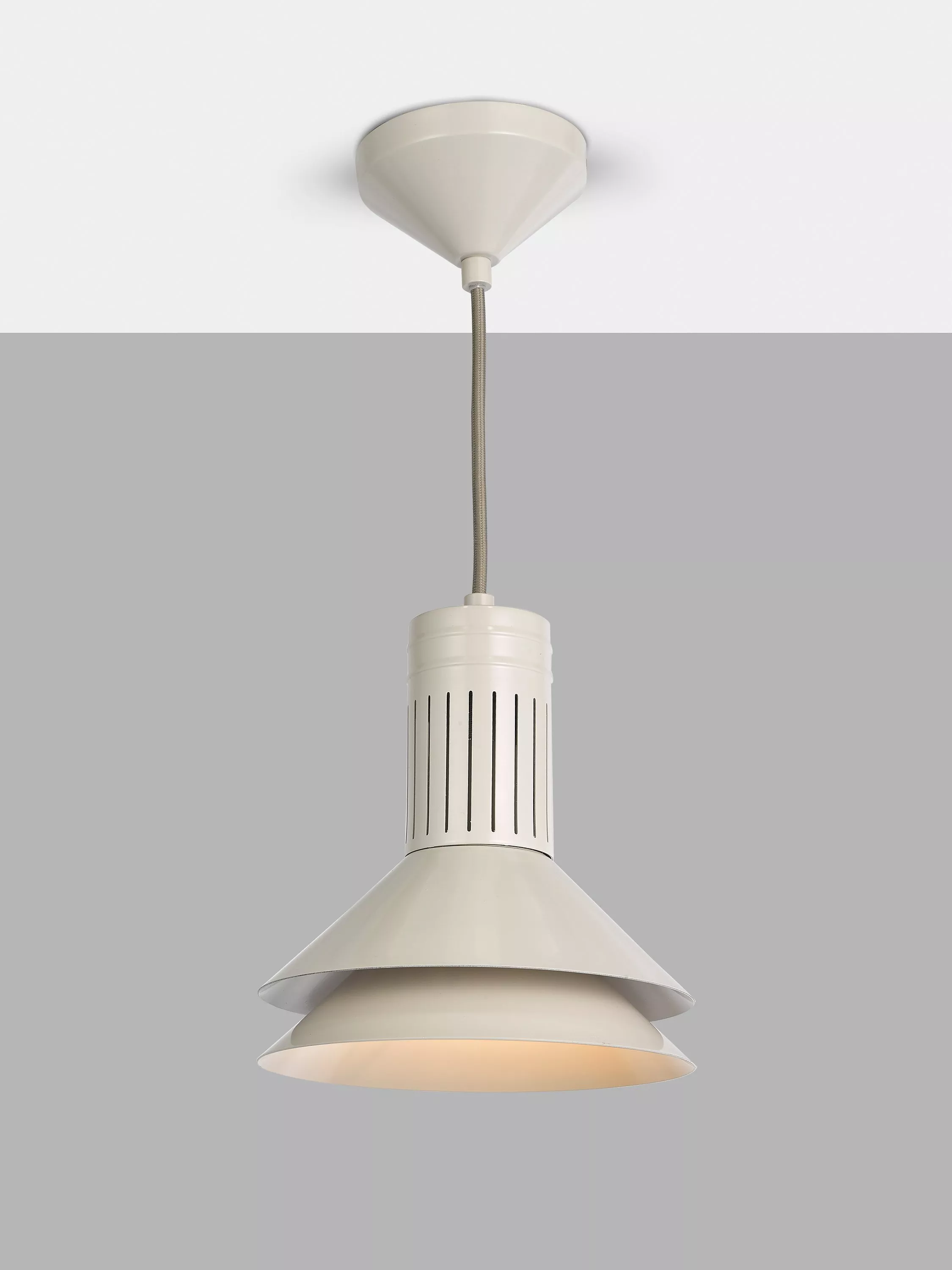The Battersea Pendant mixes cool Scandi styling with a timeless industrial look. The layered metal shade comes with an adjustable fabric flex to sit at whatever height you like. Although small in size, the Battersea Pendant has big appeal with it's on-trend vibes.