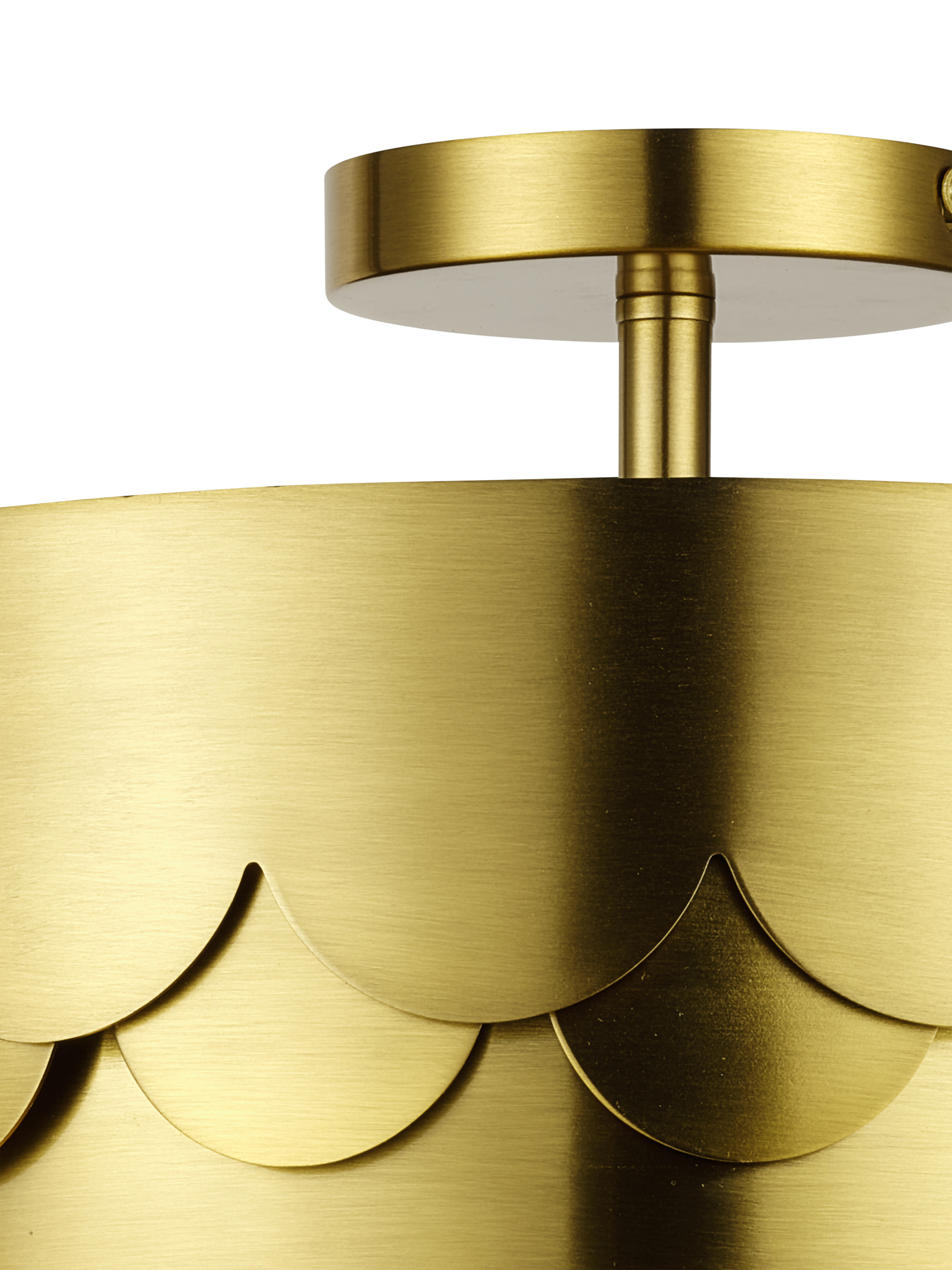Elevate your space with this crafted brushed brass drum, flush mounted ceiling light. Featuring a cylindrical design with a stunning scalloped pattern, this fixture adds a touch of glamour and modern elegance to any room. The warm toned finish beautifully complements the soft, diffused light, making it perfect for bedrooms, hallways, living areas or dining spaces.