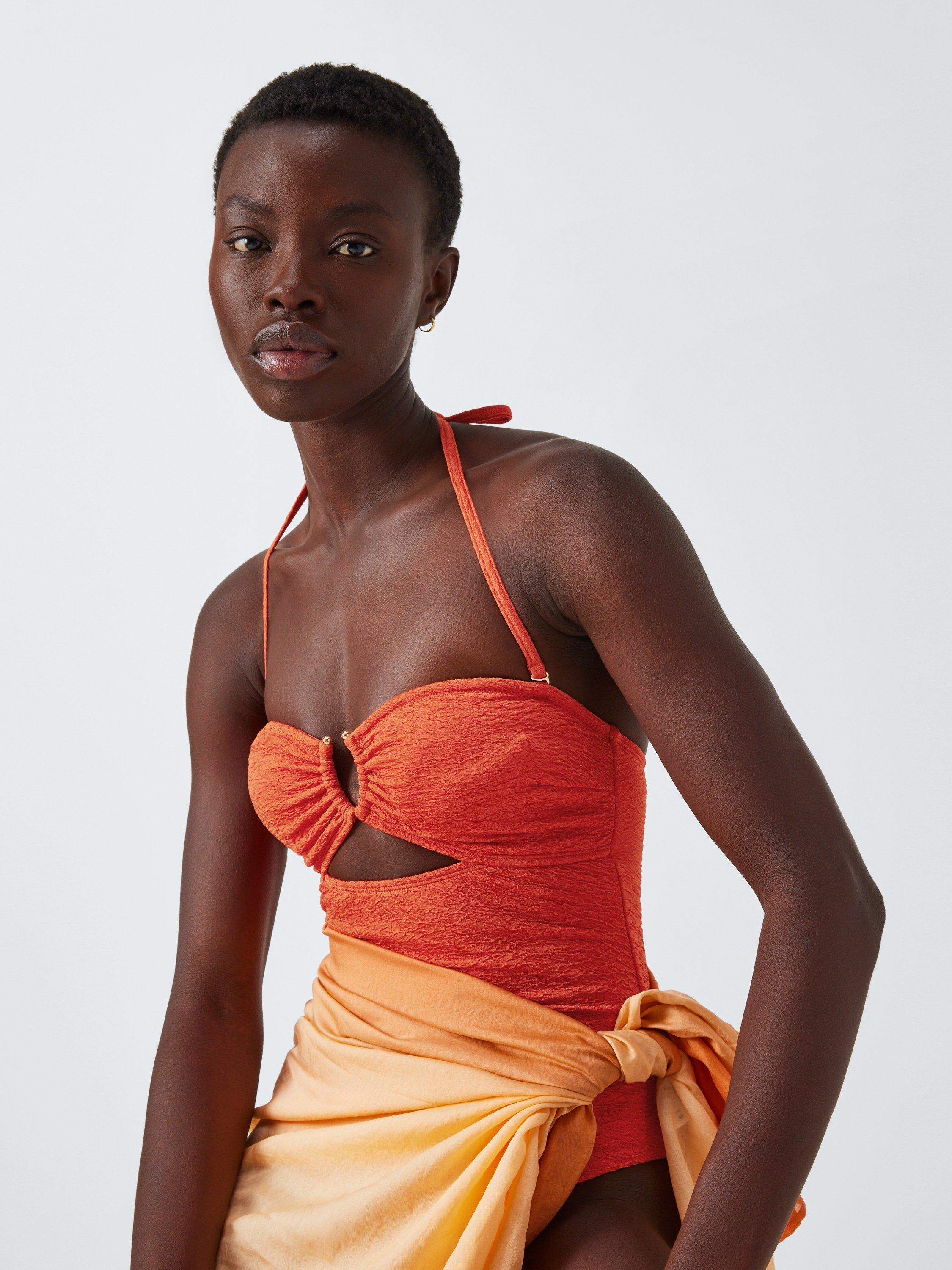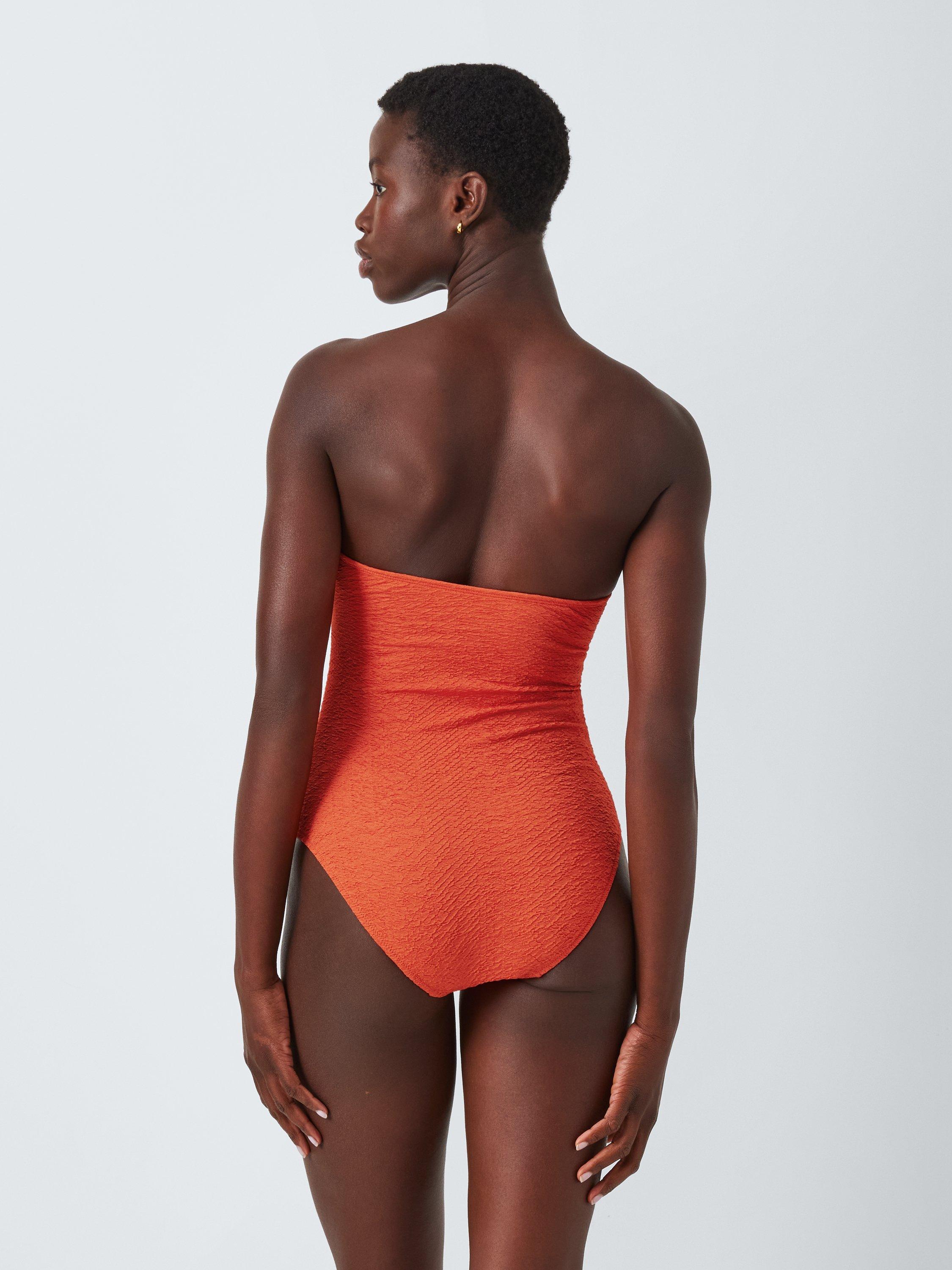 Our plain bandeau swimsuit has a textured look and feel. With sculpting around the cups, you'll feel safe and secure as you brave the waves this summer.