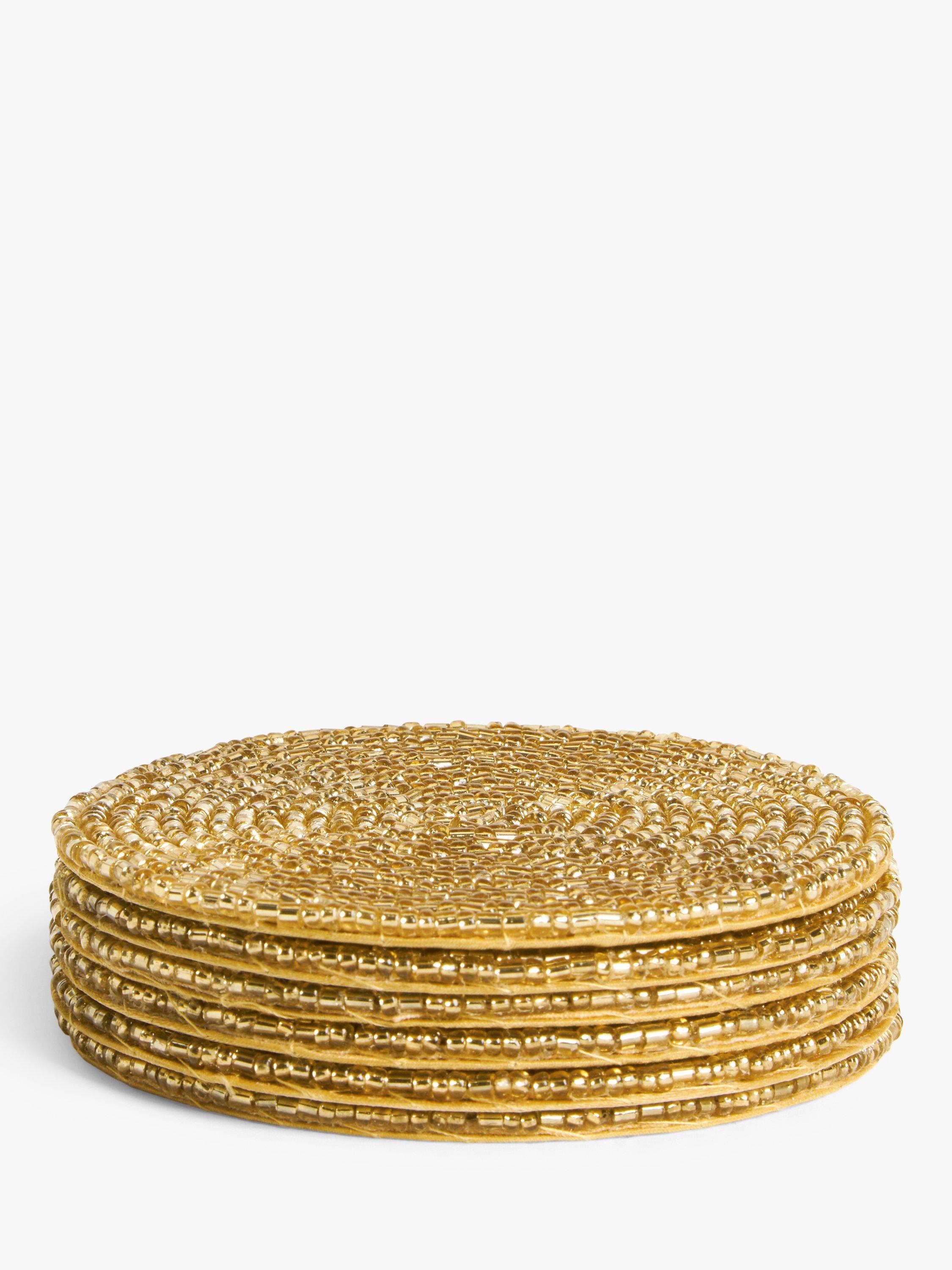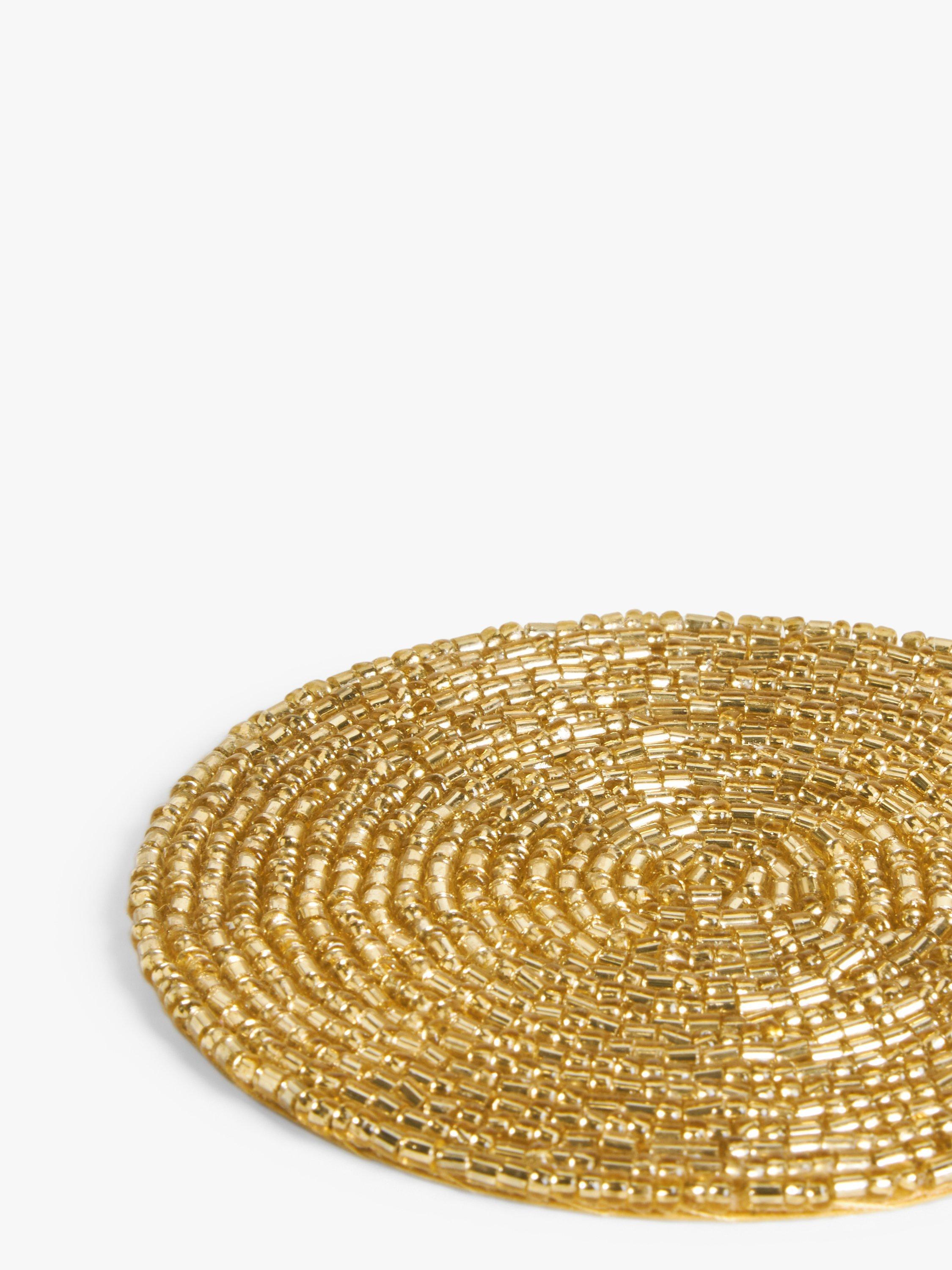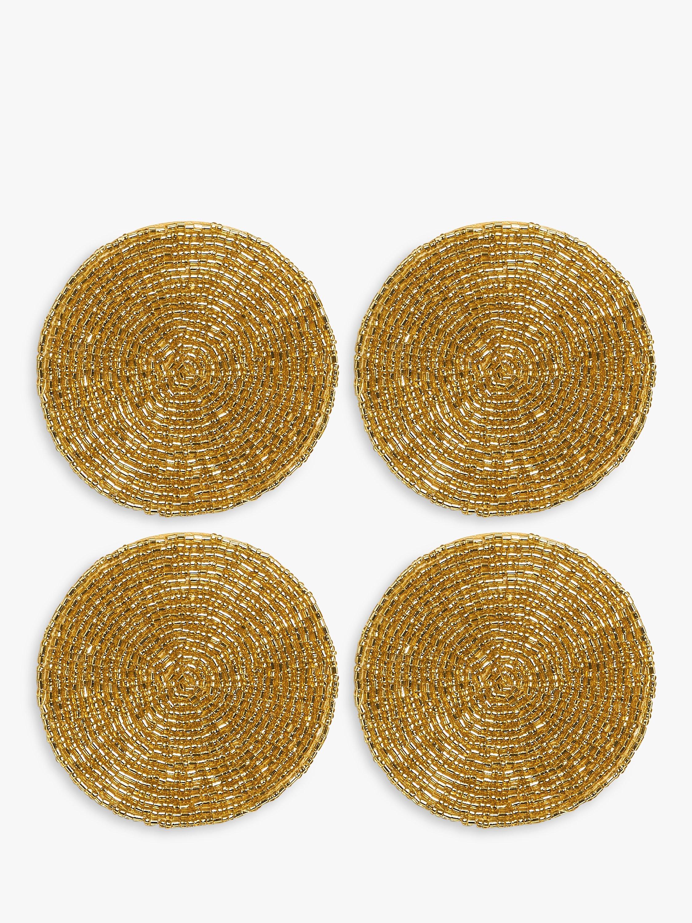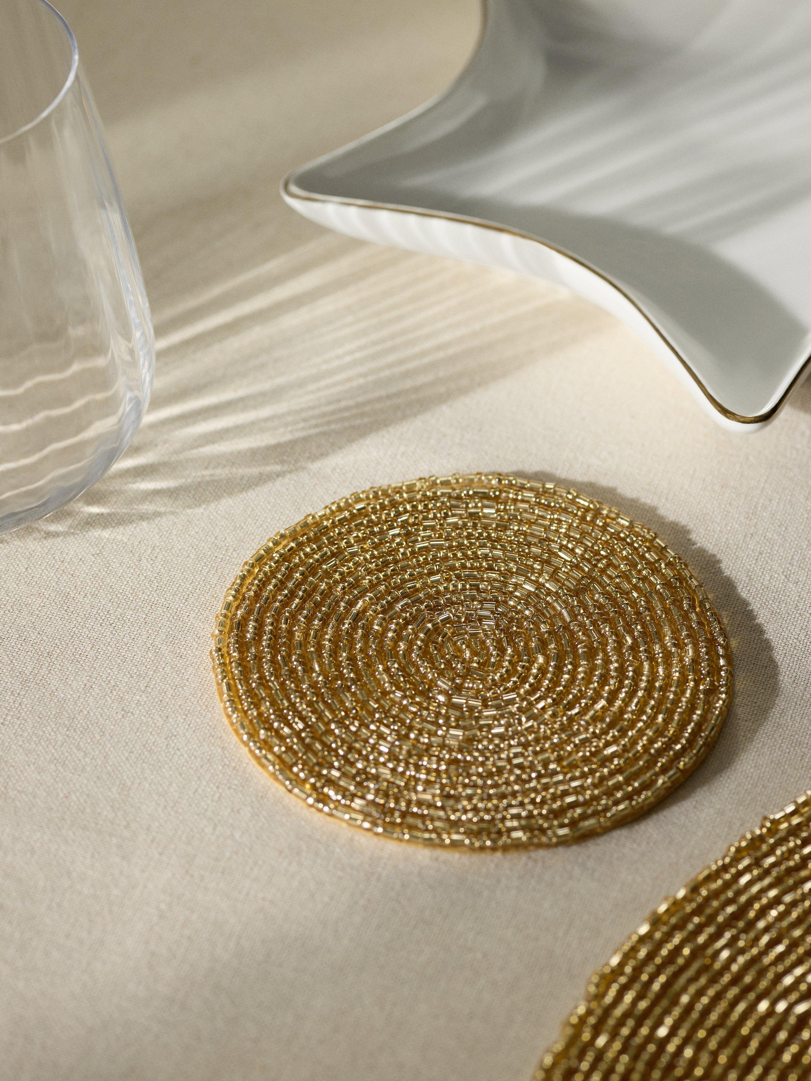 Glass beads create texture and a little sparkle for your dining table with this set of four coasters. Team them with our matching placemats for the festive season.