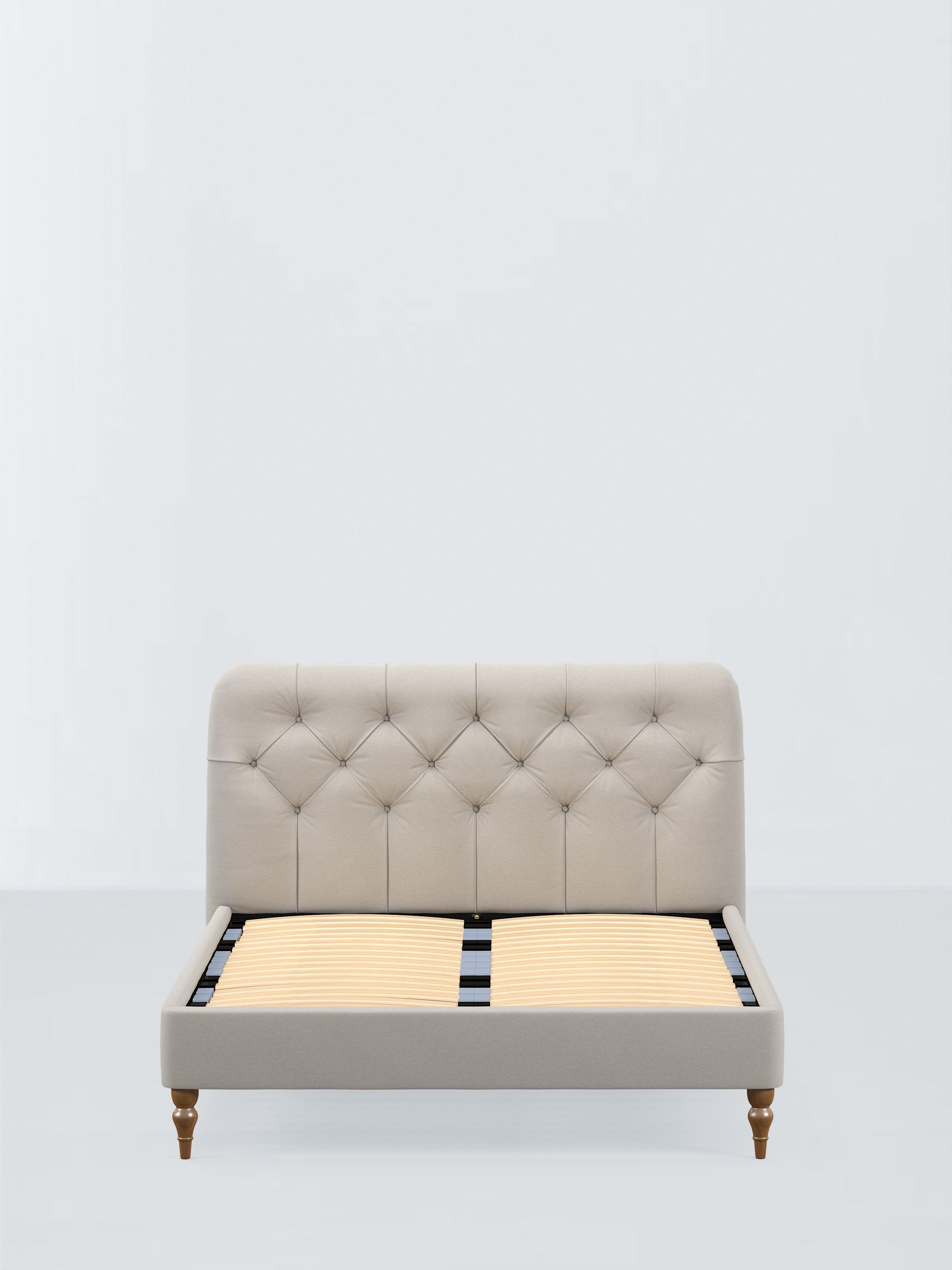 The timeless design of our Beatrix bed frame makes it a versatile choice and the subtly curved foam filled headboard ensures optimal comfort while giving a modern edge. We've added button detailing to the headboard and supported the frame with low, turned legs made from high quality wood. We've added sprung Smart Slats to the base which provide enhanced support where you need it most.