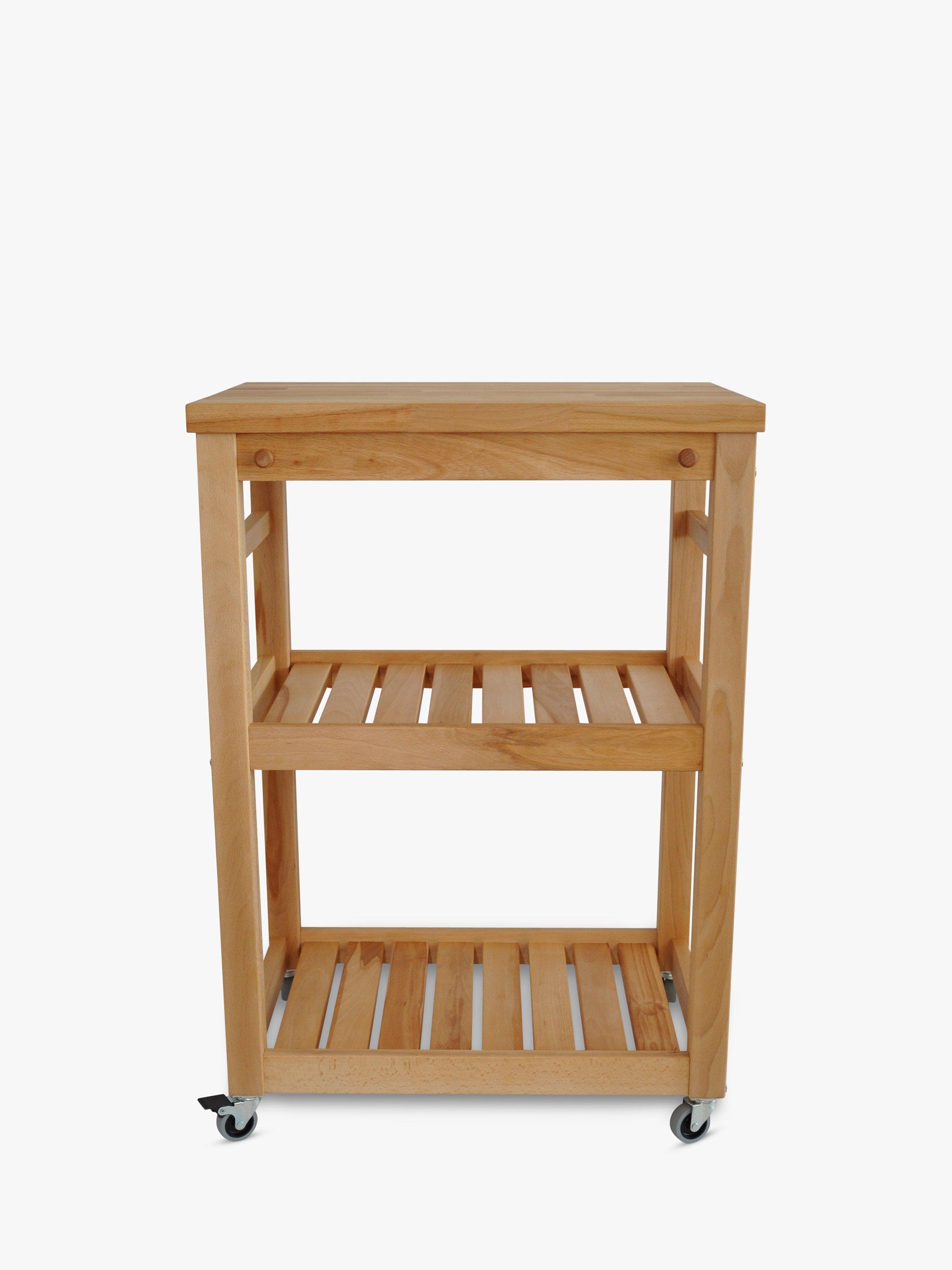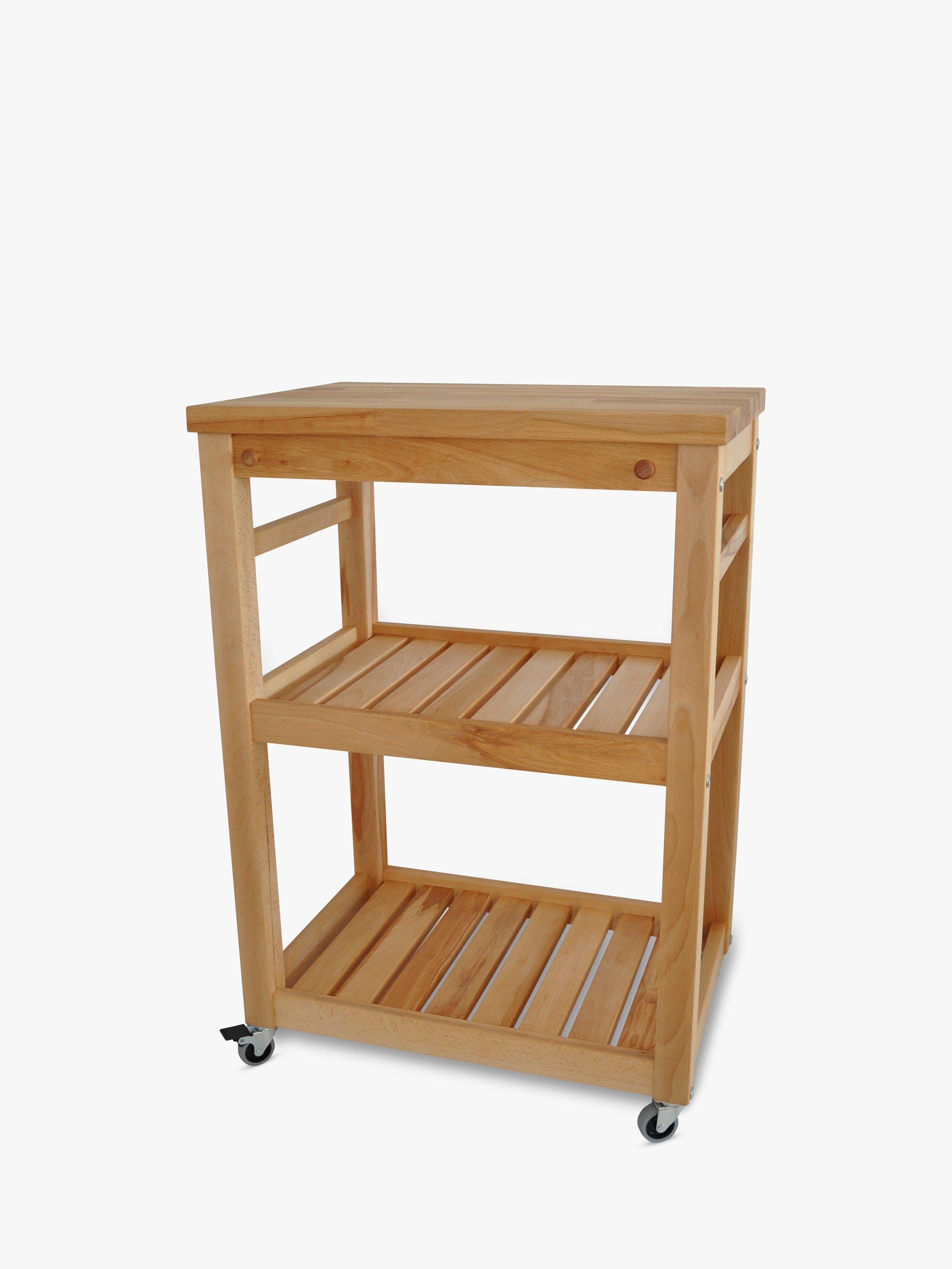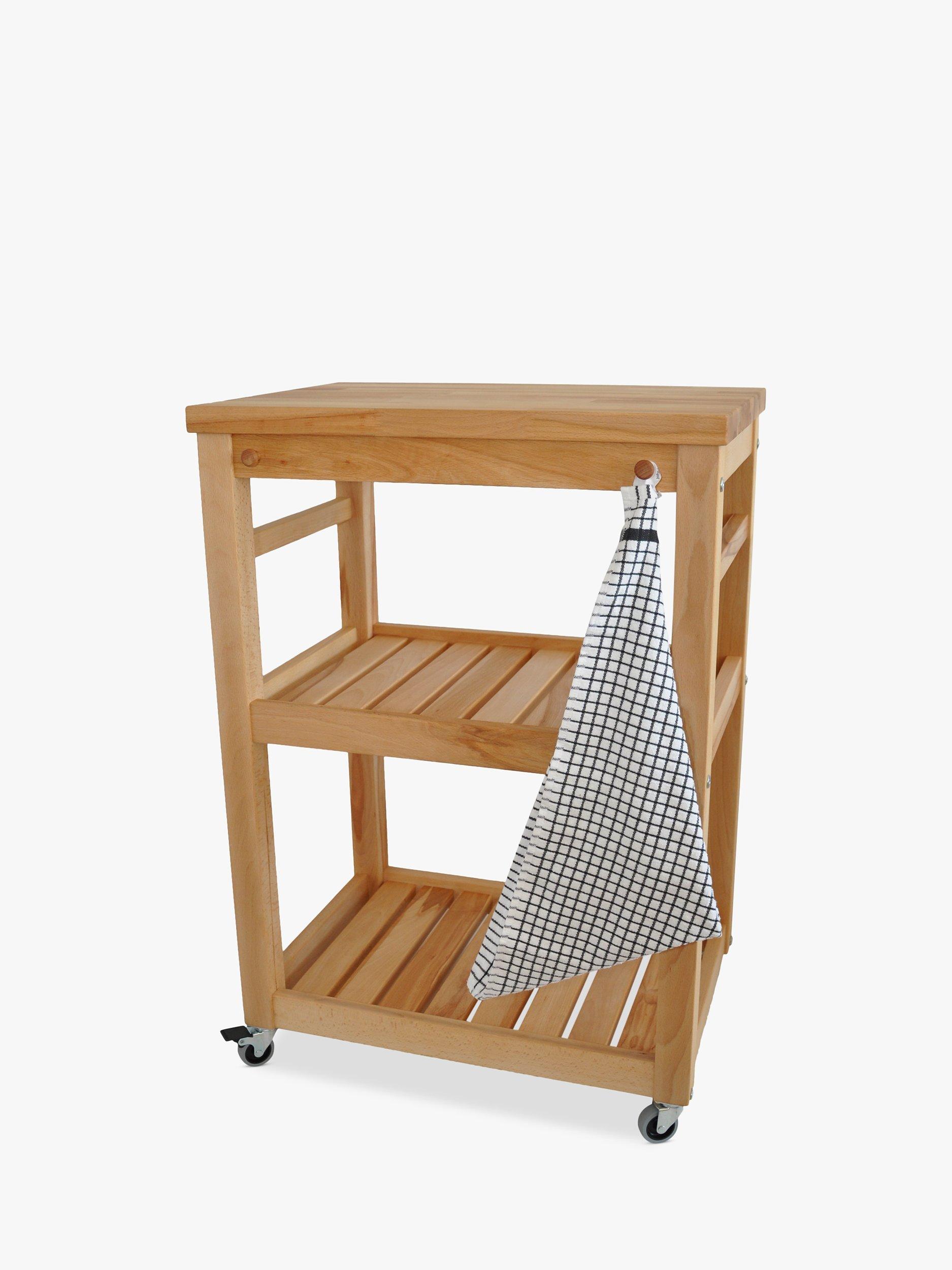 Adding a little more worktop space to the kitchen, this stylish butcher's trolley is made of beech wood with two shelves and twin teatowel rails.