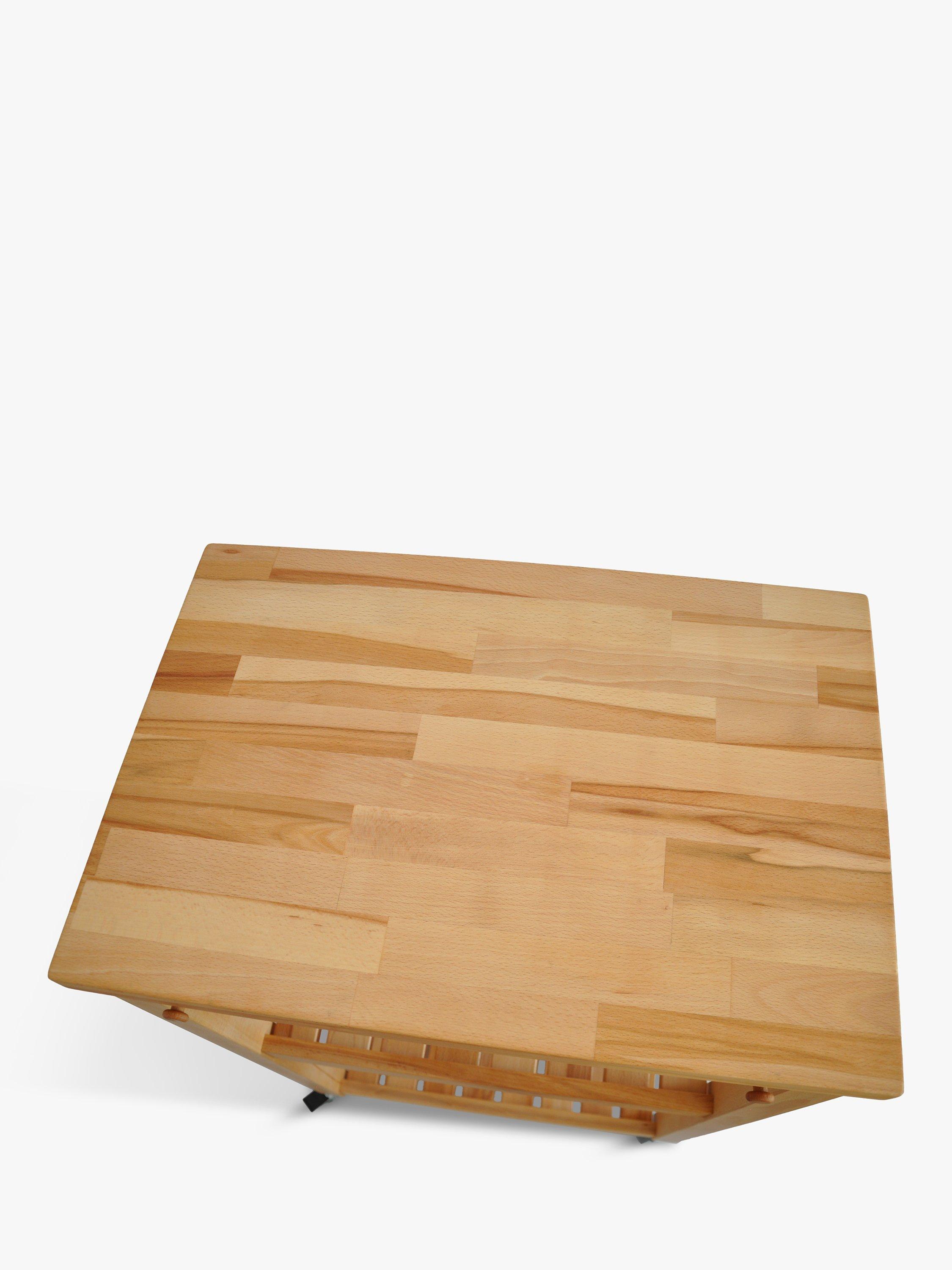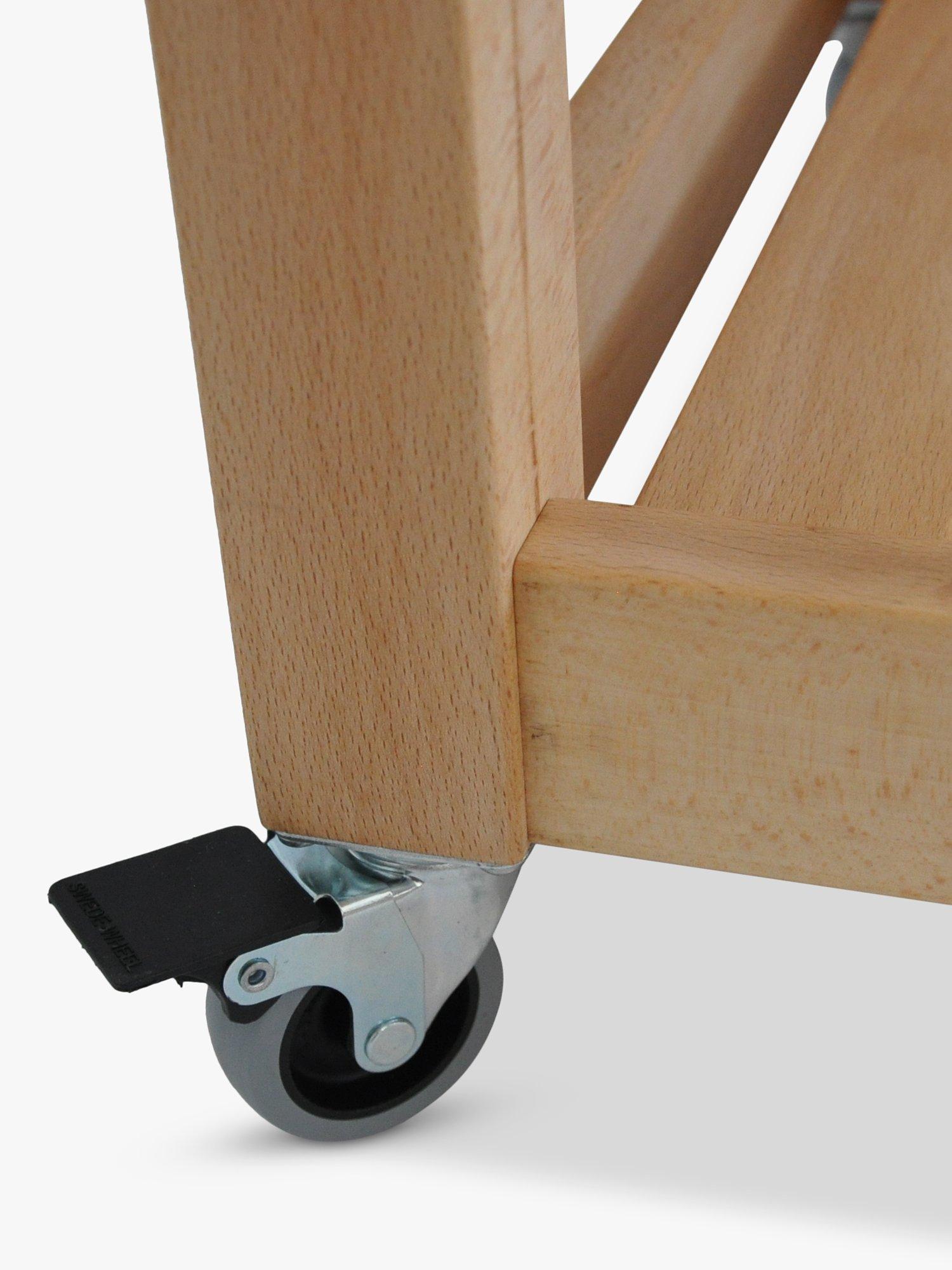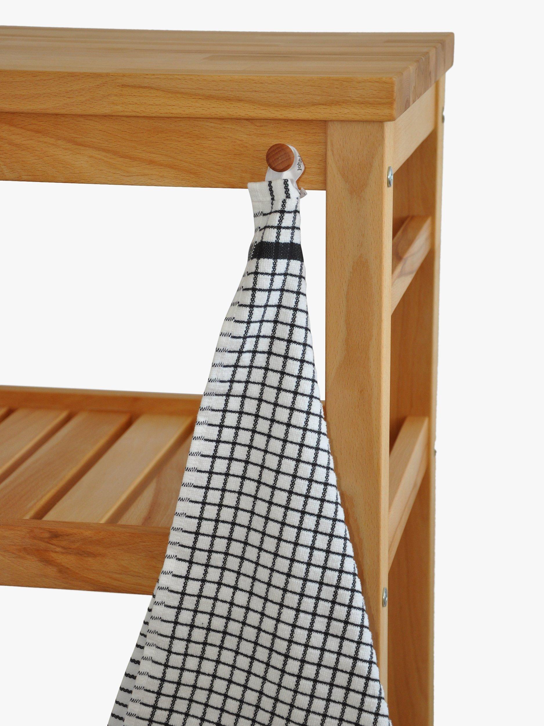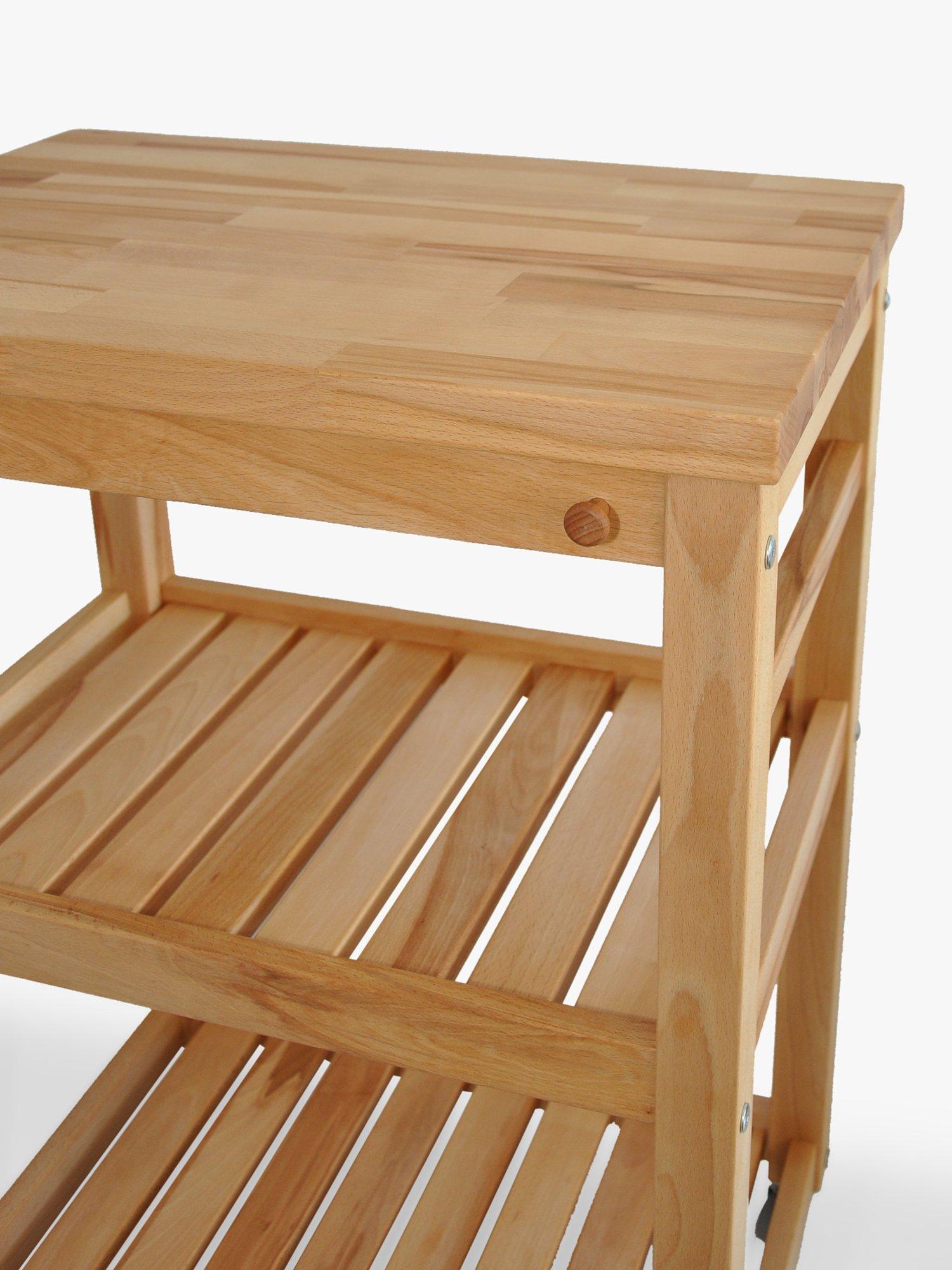 Adding a little more worktop space to the kitchen, this stylish butcher's trolley is made of beech wood with two shelves and twin teatowel rails.