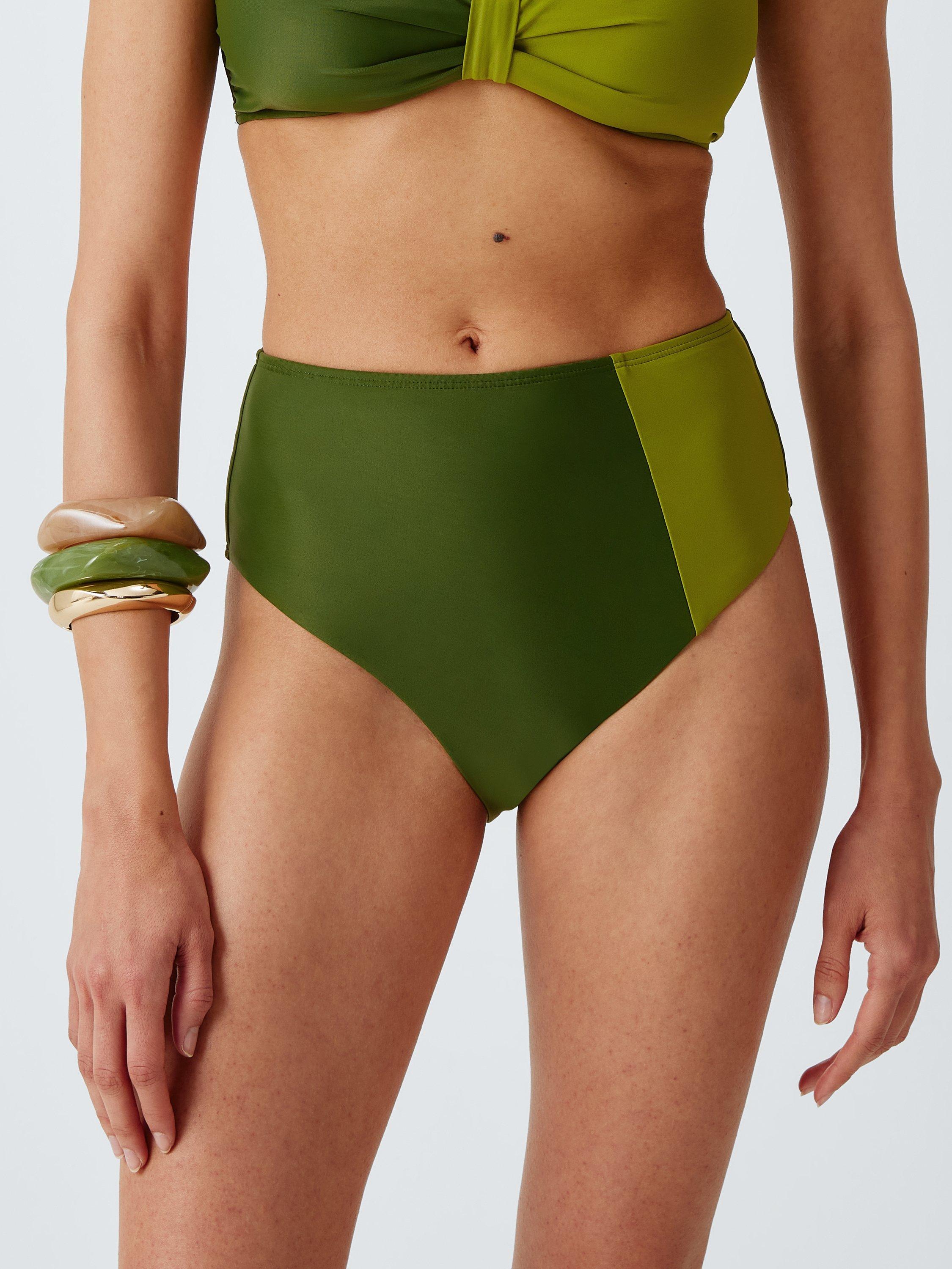 In a high cut style to elongate the legs, these colour block bikini bottoms provide moderate coverage. Pair with the matching top for a coordinated look.