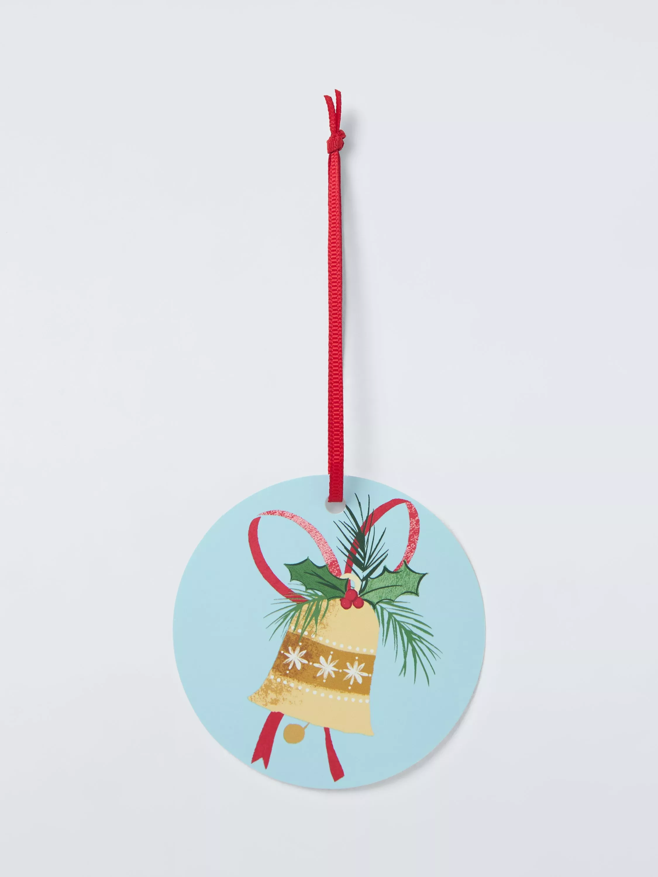 Pack of 10 printed gift tags with red ribbon hangers.