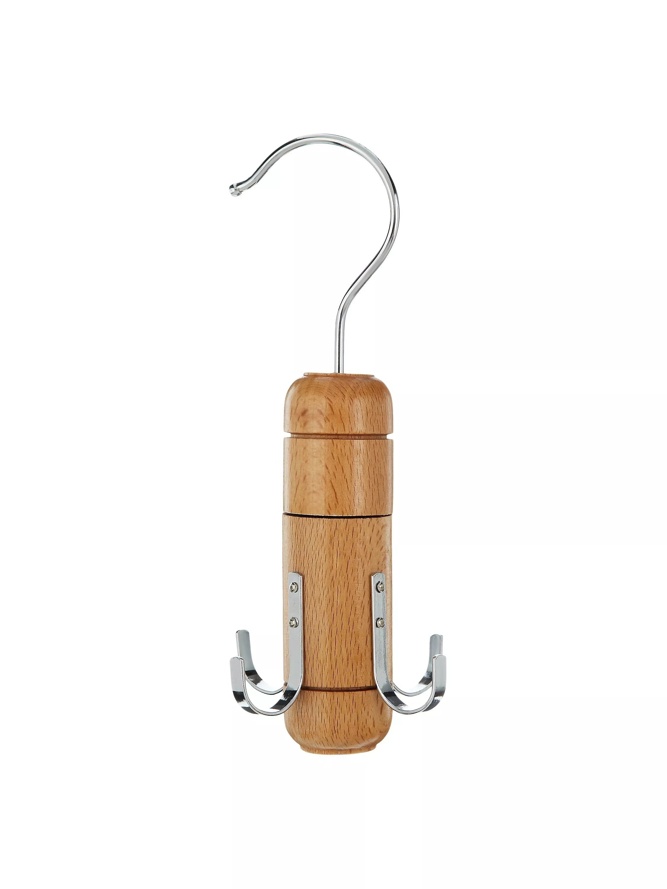 This swivel hanger has 4 hooks to hold belts, hats or scarves.