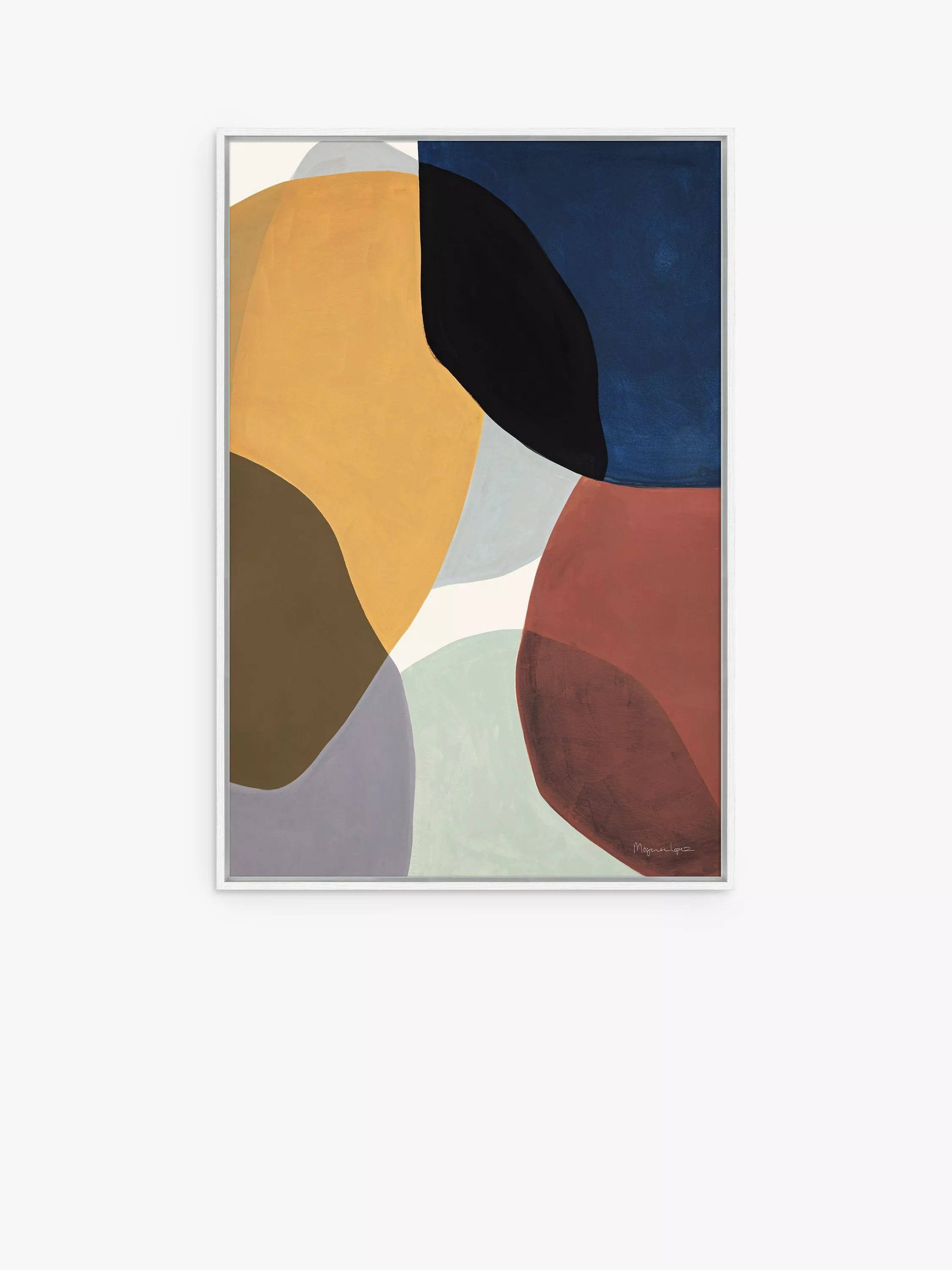 An abstract canvas print, 'Overlap' by artist Berit Mogensen Lopez. Made in the UK, this canvas wrap print is mounted in a white frame, a deep frame that creates an elegant shadow gap around the picture. It comes ready to hang on your wall.