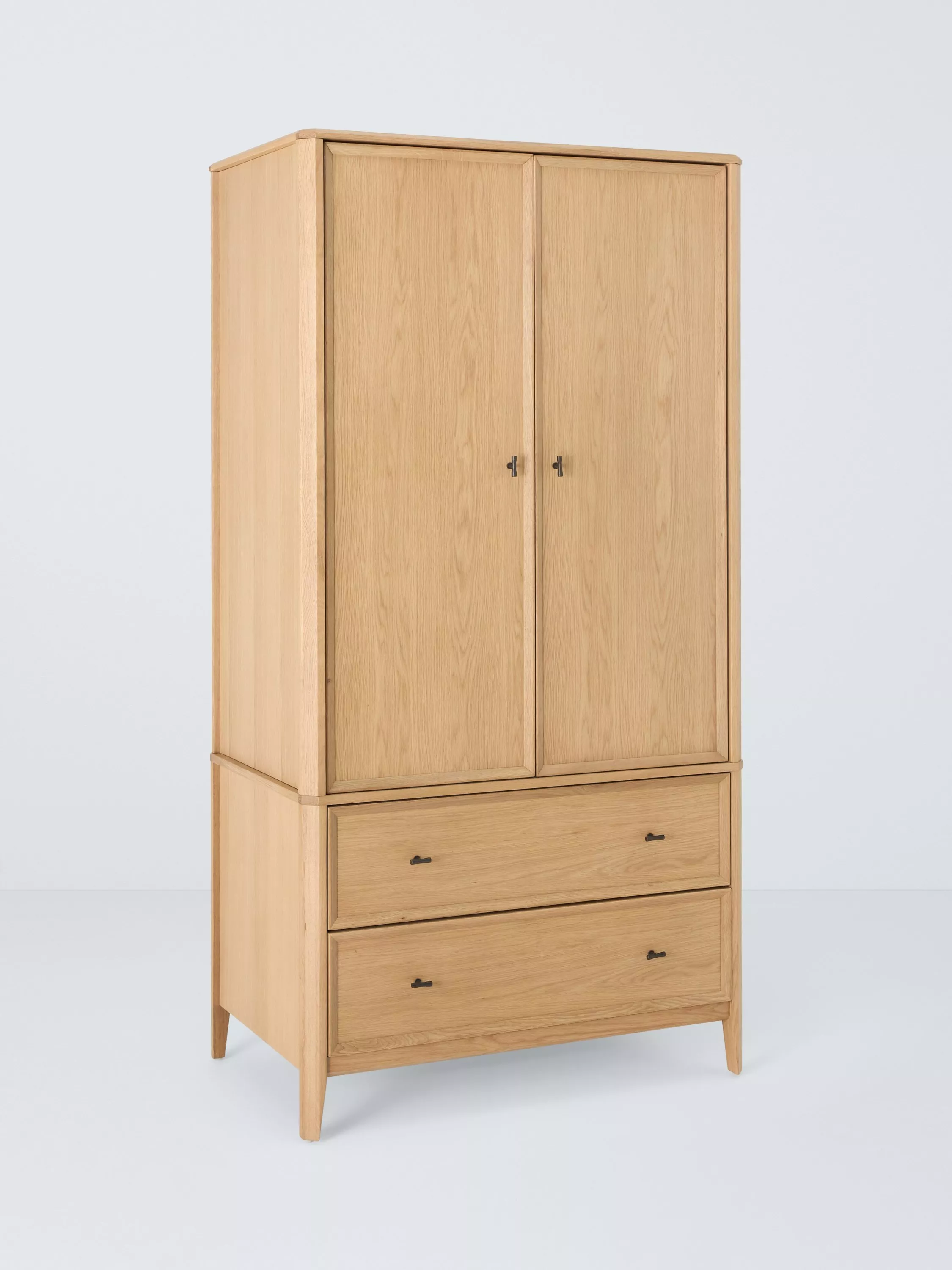 When you're looking for practical furniture that's full of character and charm - our Bevel range meets the brief. This double wardrobe is built from a mix of hard-wearing timbers, including oak and showcases a generous hanging space and two spacious drawers, elevated with stylish handles. It's perfectly sized for keeping your bedroom a calm and uncluttered space.