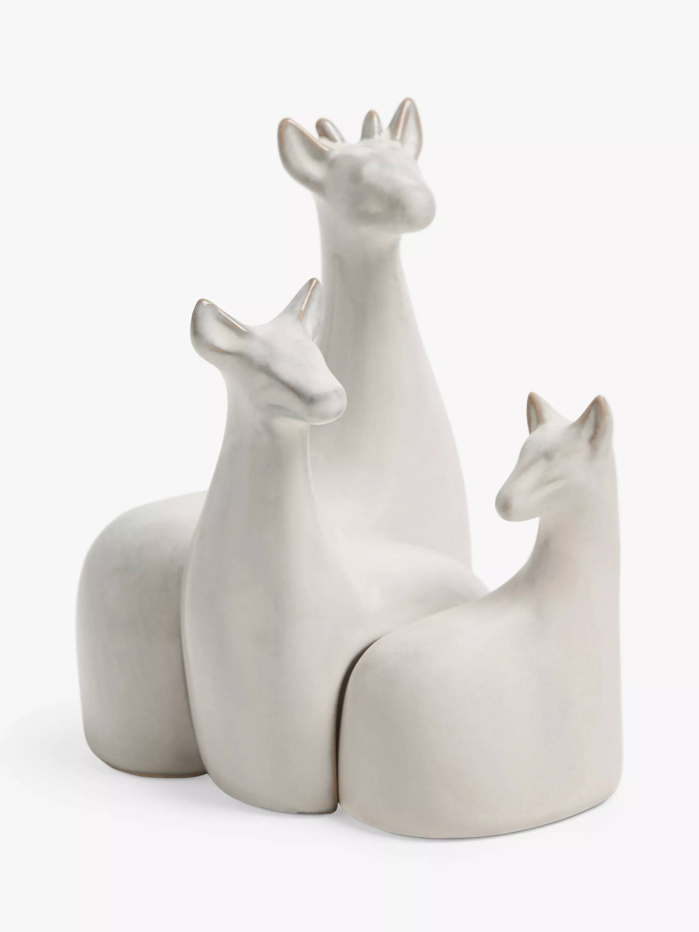 A sweet, wrap around, deer ornament made of durable stoneware.