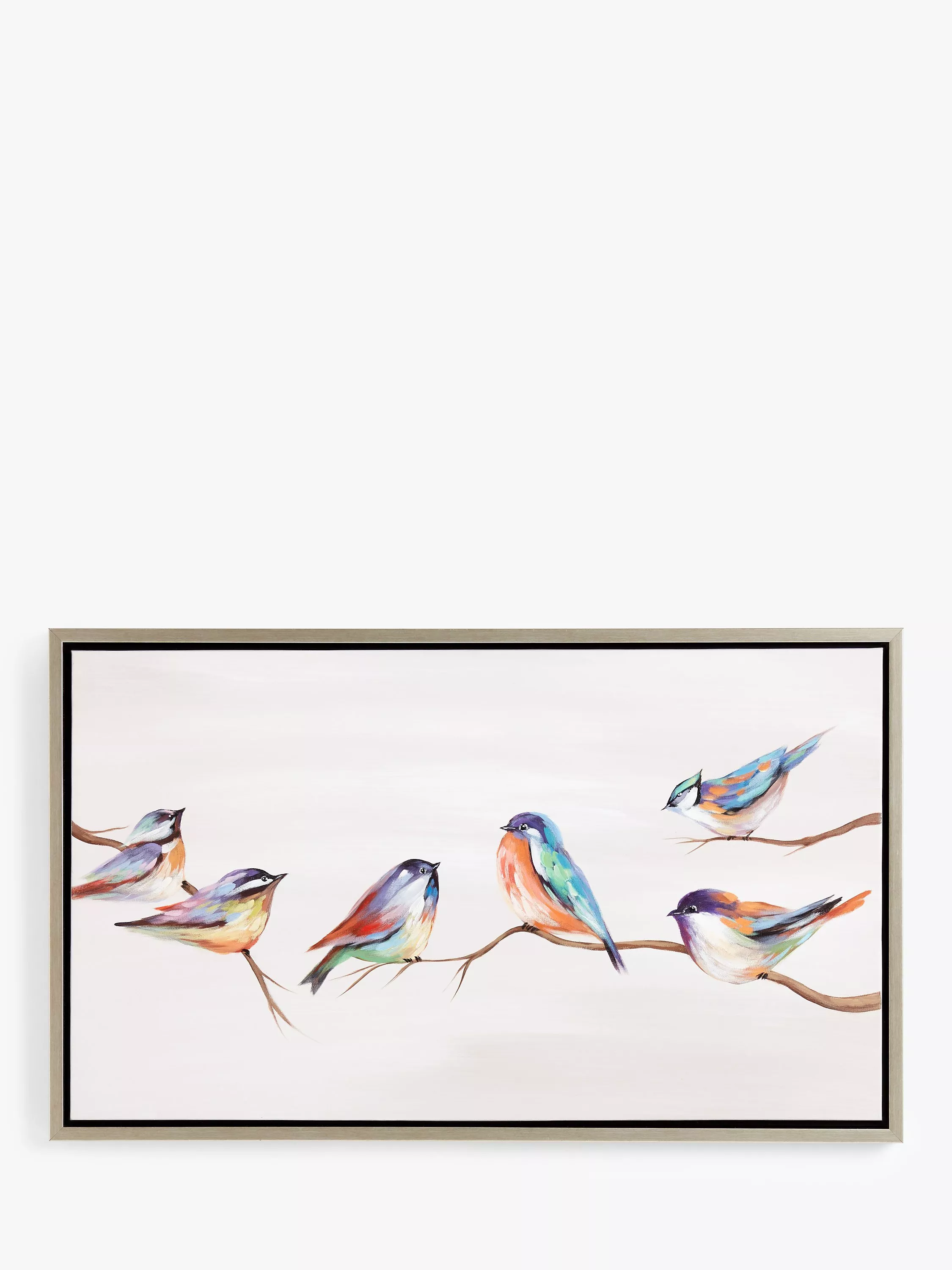 The vivid colours of birds are brought to life with an acrylic paint finish on this canvas print. It's framed and ready to hang on your wall.