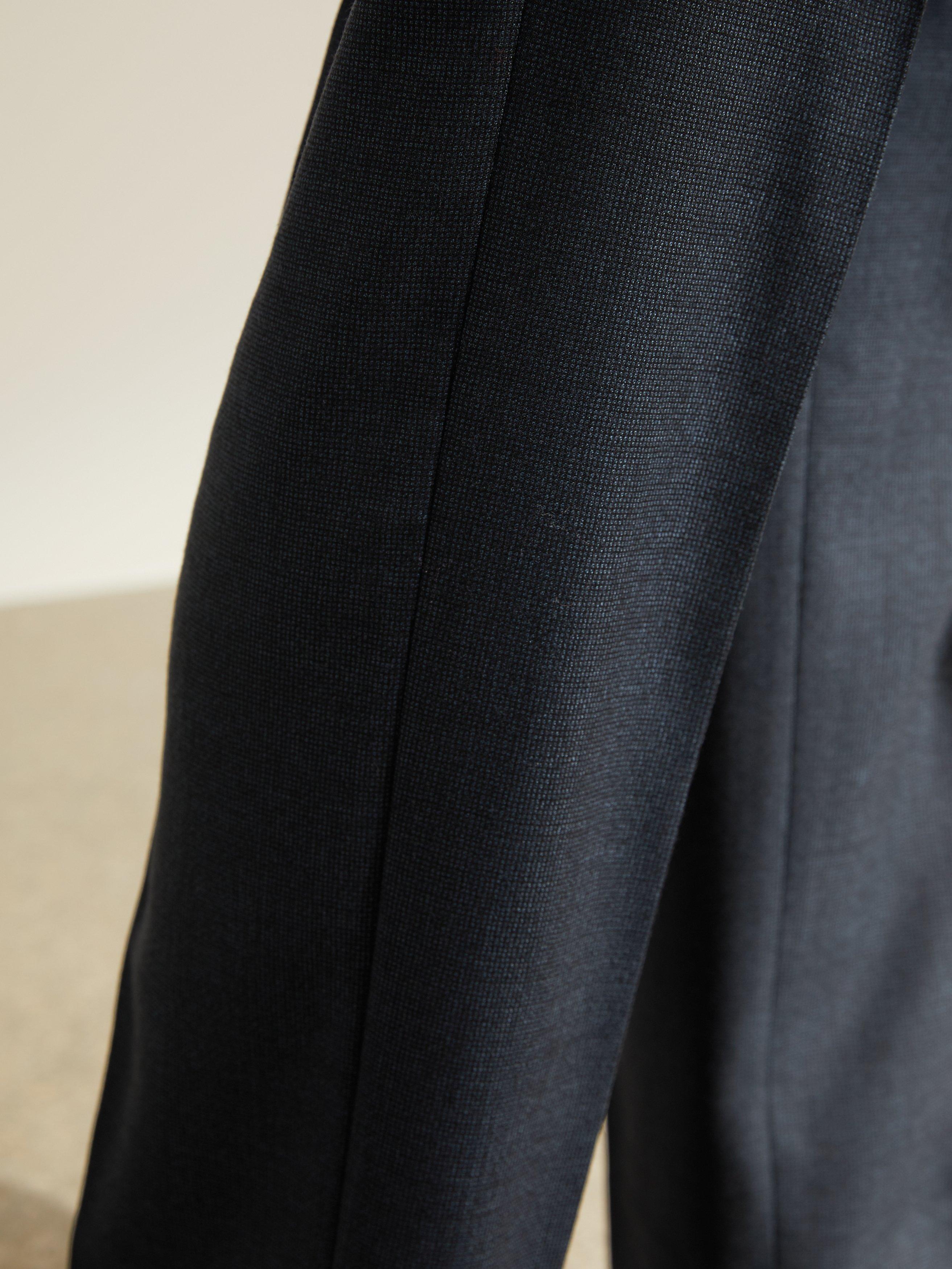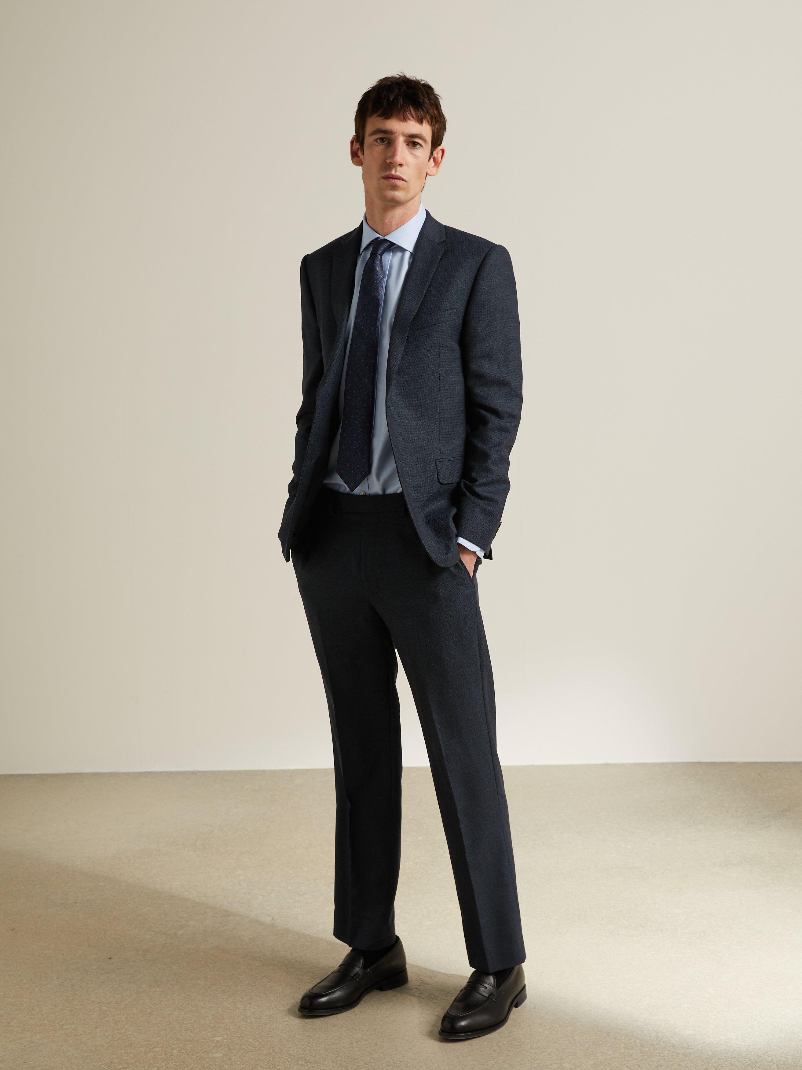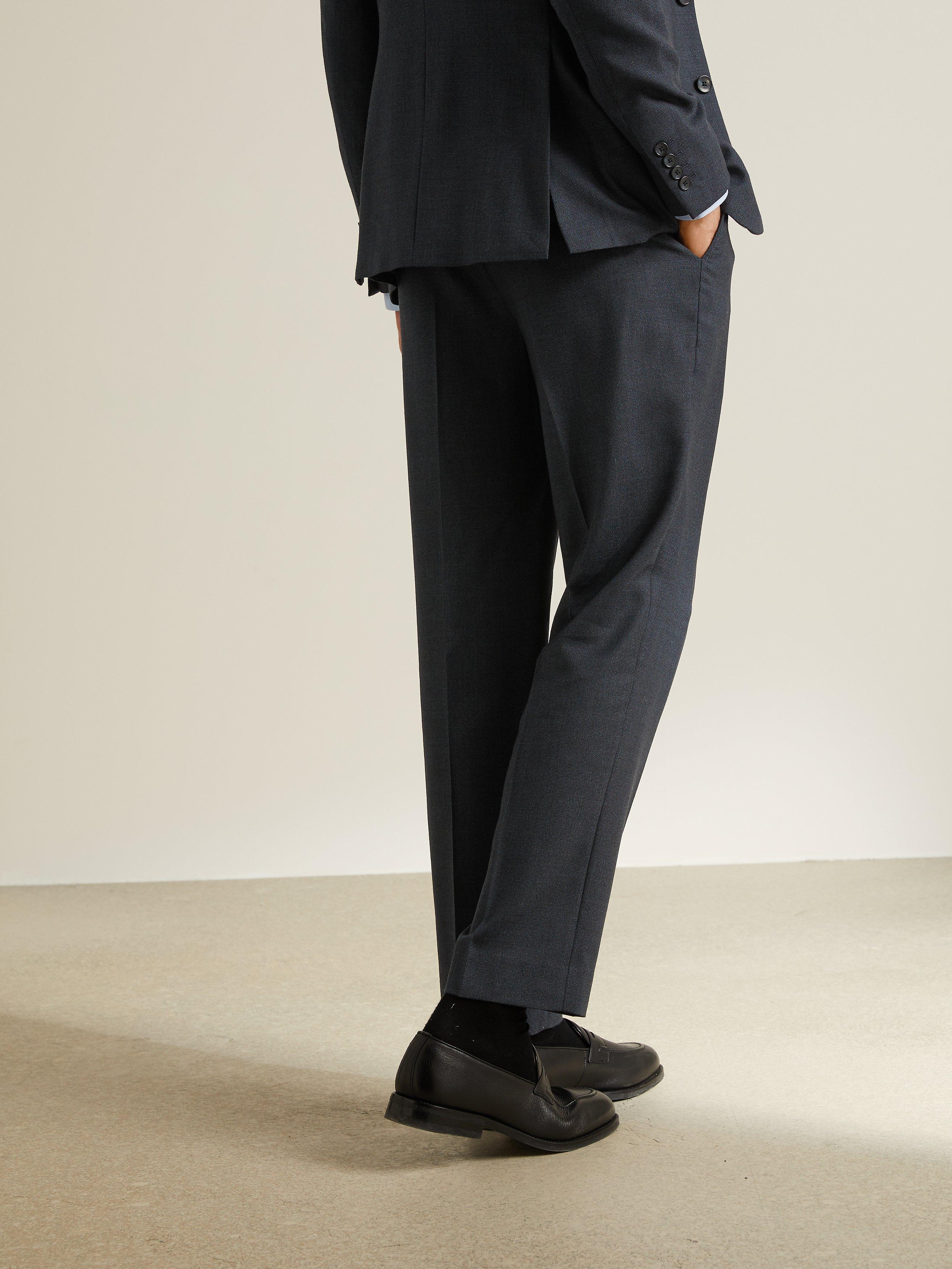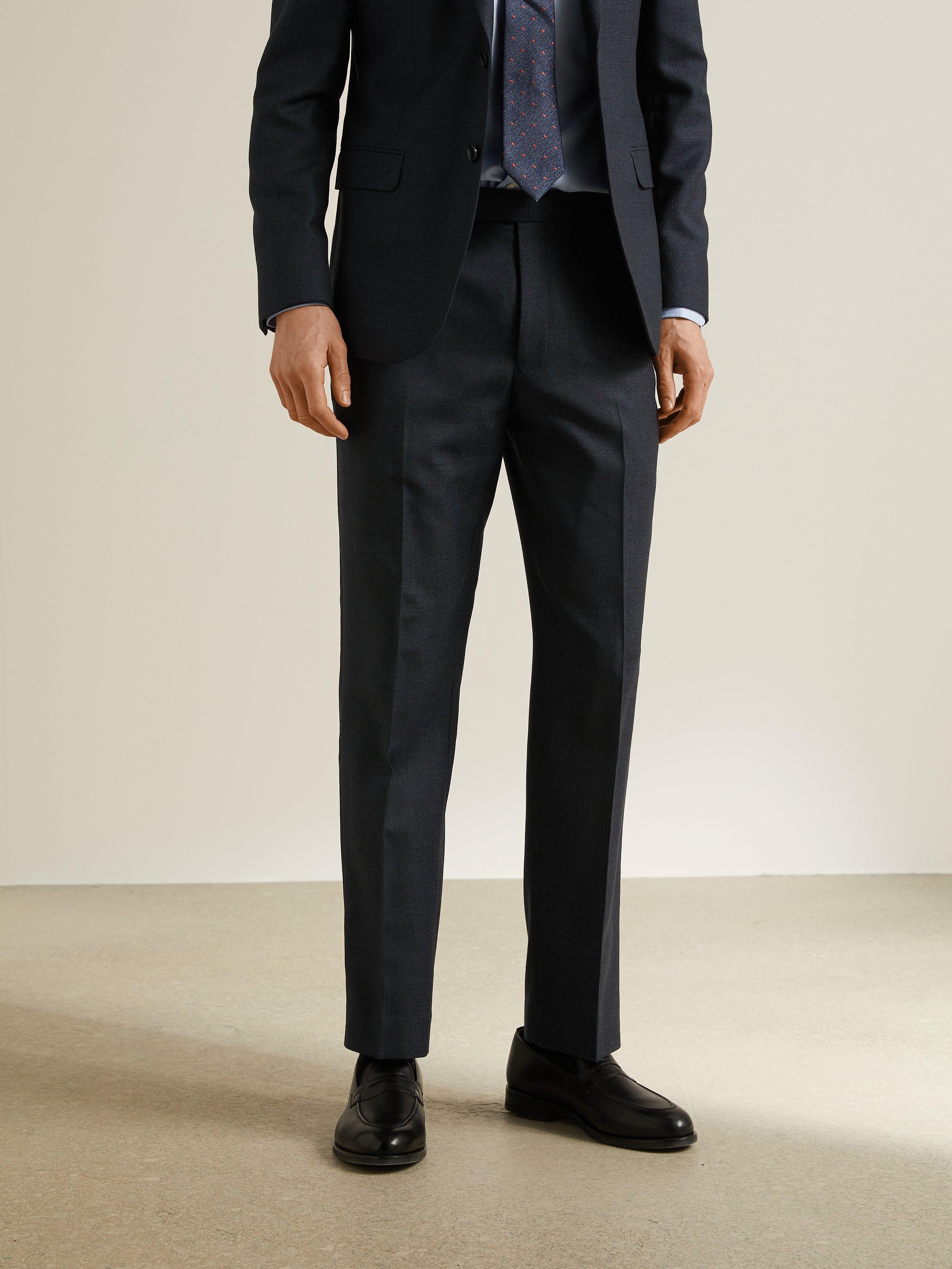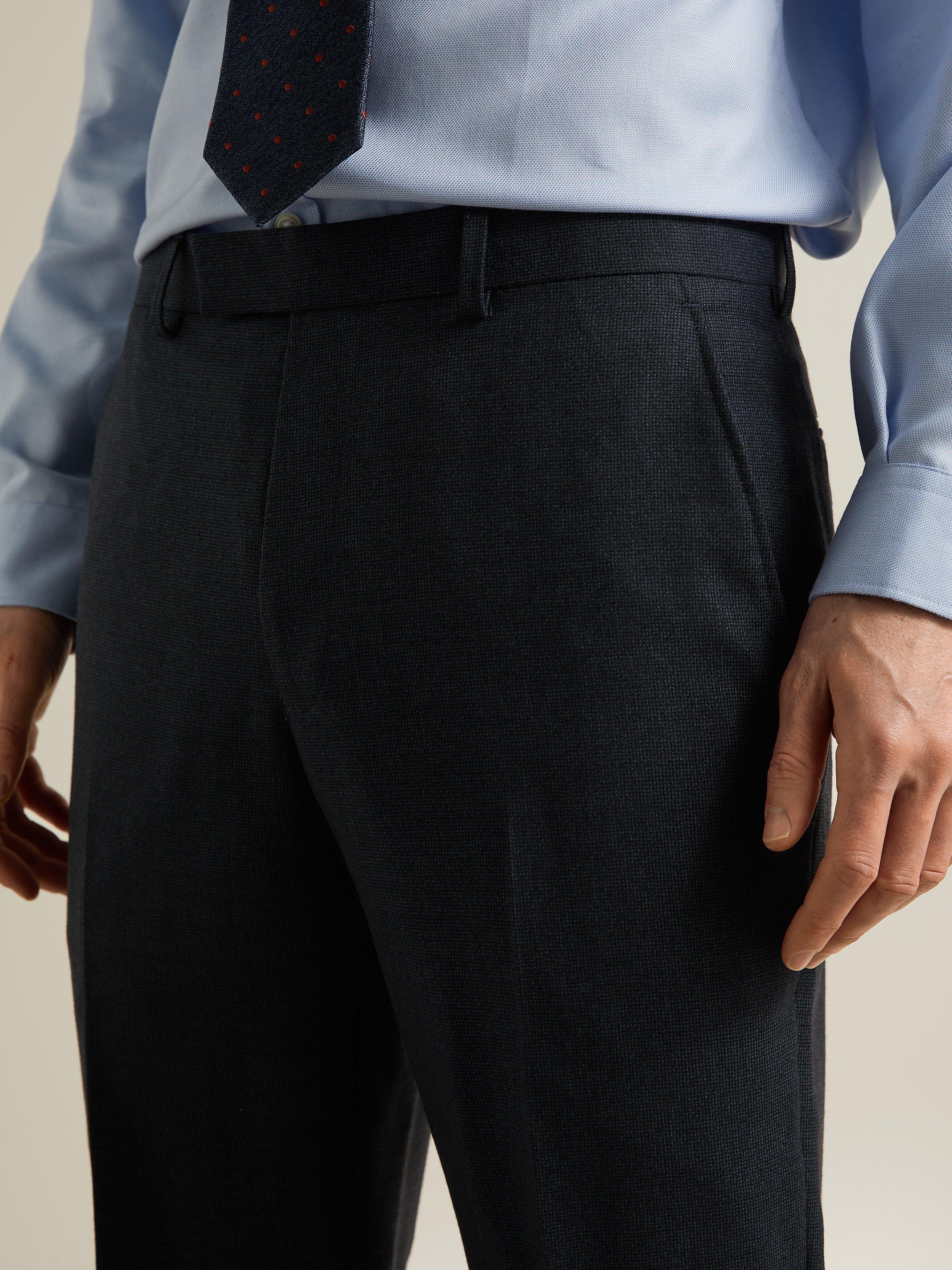 THOUGHTFULLY DESIGNED from pure wool in an intricately textured birdseye weave, these suit trousers are a sharp addition to formal wardrobes. Super 100 is a measure of how fine the wool is, with a higher number translating to a finer wool which will feel softer. The 100% wool was chosen for all-day comfort, and it's fully lined in navy.