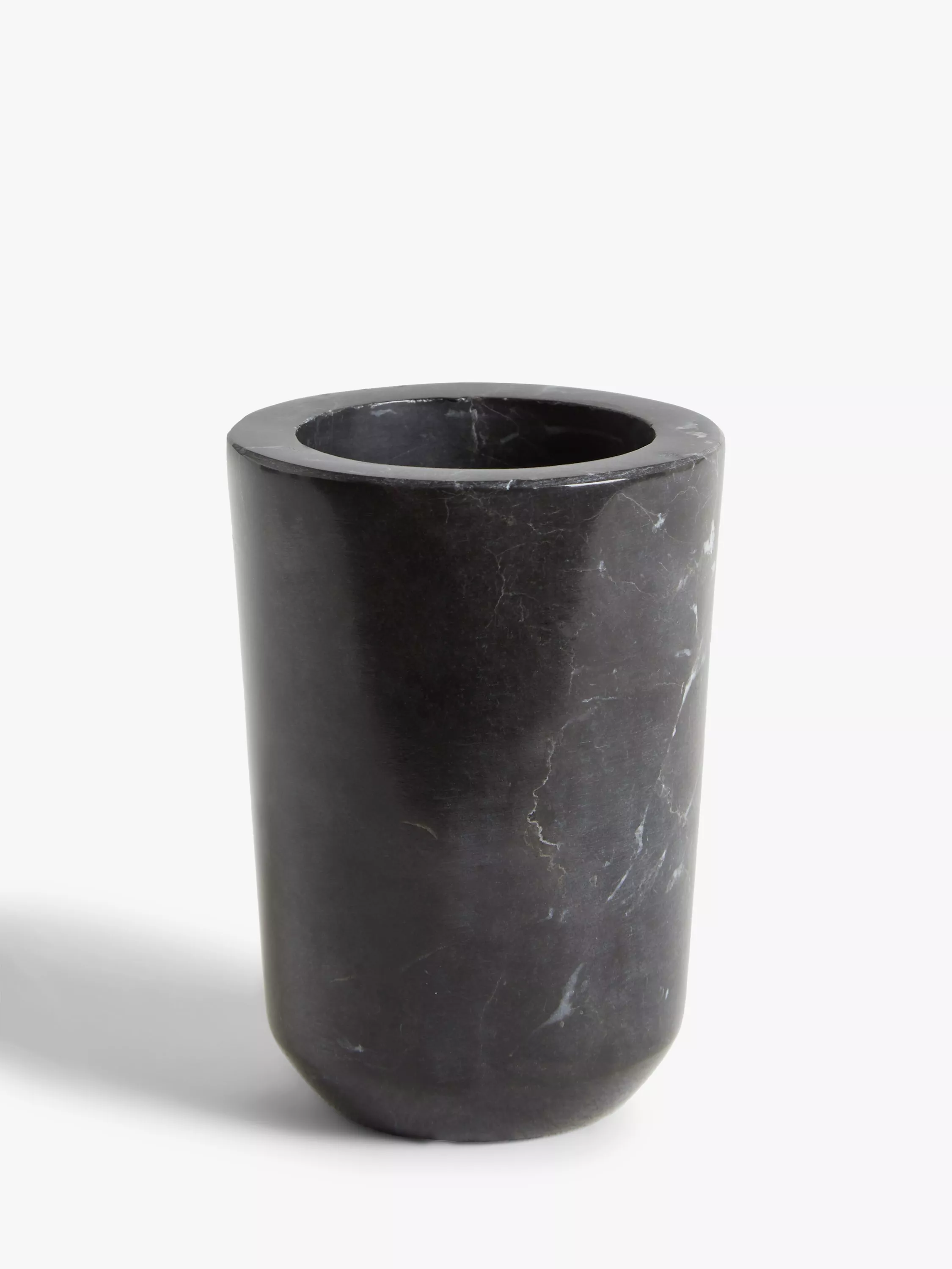 The black marble used in this tumbler has a fine compact grain and white veins running throughout the body, creating a sophisticated overall look. As marble is a natural material and each piece is individually handmade, there may be some variations in the finish with some pieces having more veins than others, which adds to the beauty and character of the product.