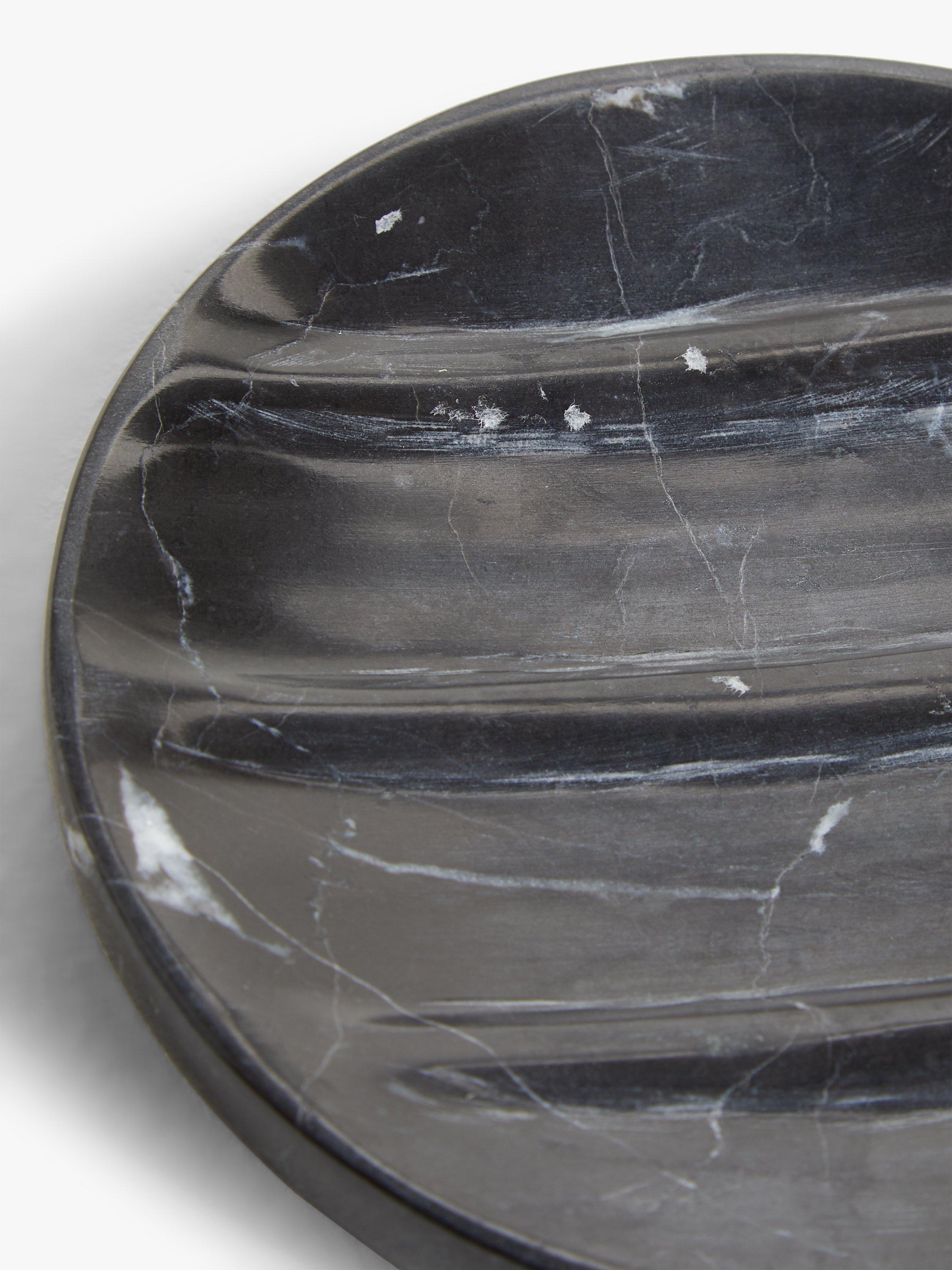 We've given our marble soap dish a modern reboot by using a dark colouring instead of traditional white. The black marble has a fine compact grain and white veins running throughout the body, creating a sophisticated overall look. As each one is individually handmade, there may be some variations in the finish with some pieces having more veins than others, which adds to the beauty and character of the product.