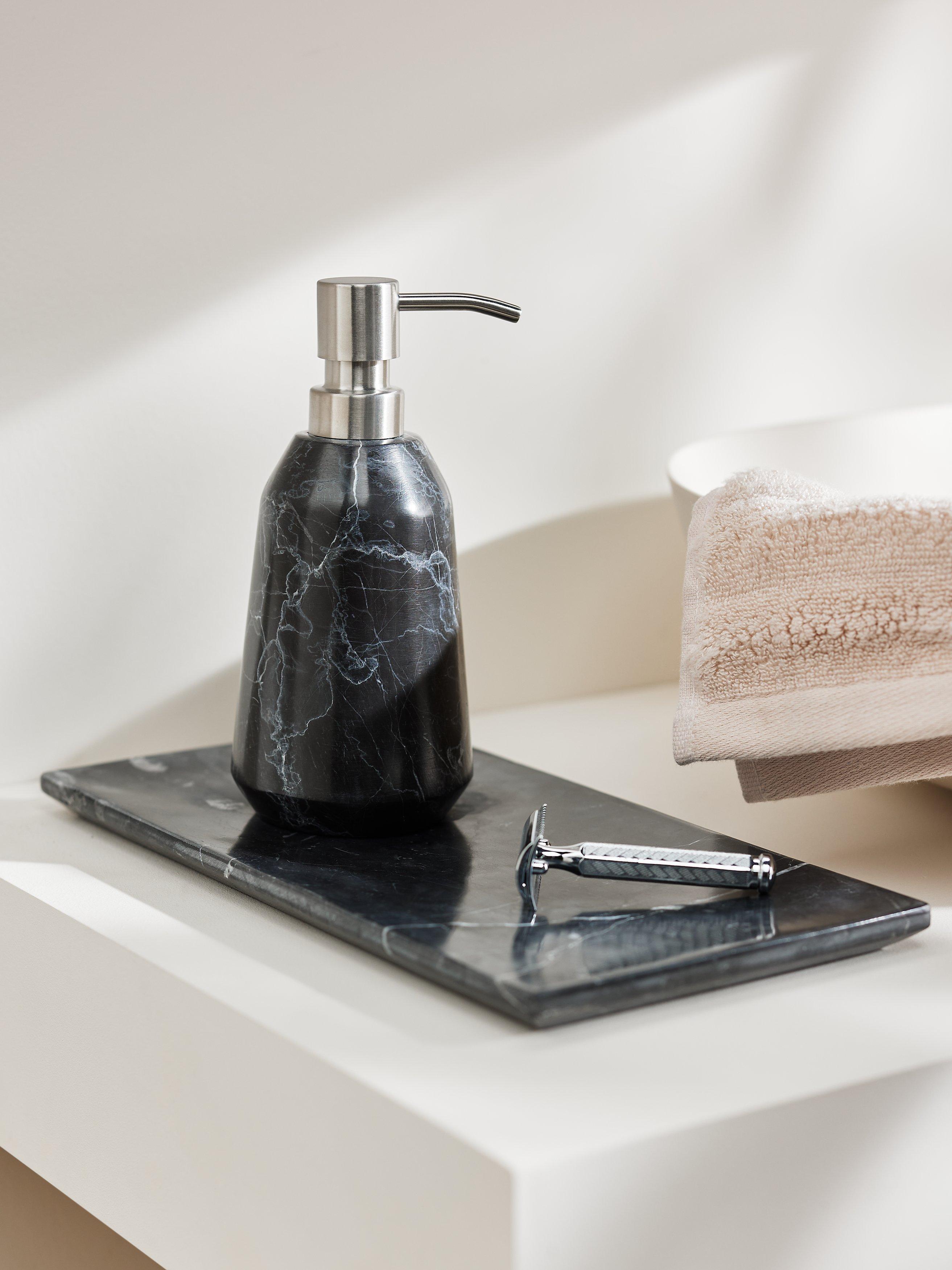 We've given our marble soap pump a modern reboot by using a dark colouring instead of traditional white. The black marble has a fine compact grain and white veins running throughout the body, creating a sophisticated overall look. As marble is a natural material and each piece is individually handmade, there may be some variations in the finish with some pieces having more veins than others, which adds to the beauty and character of the product.