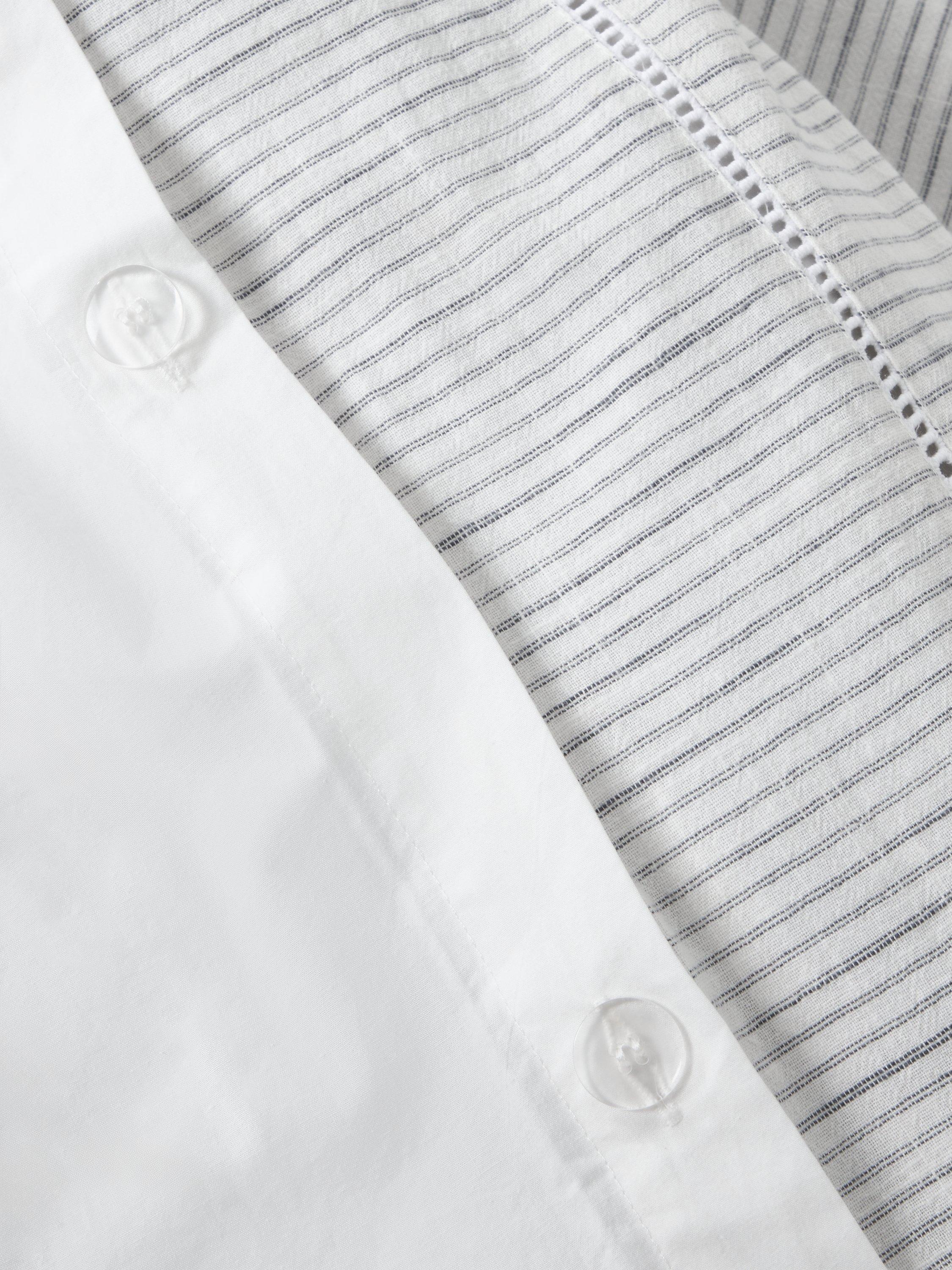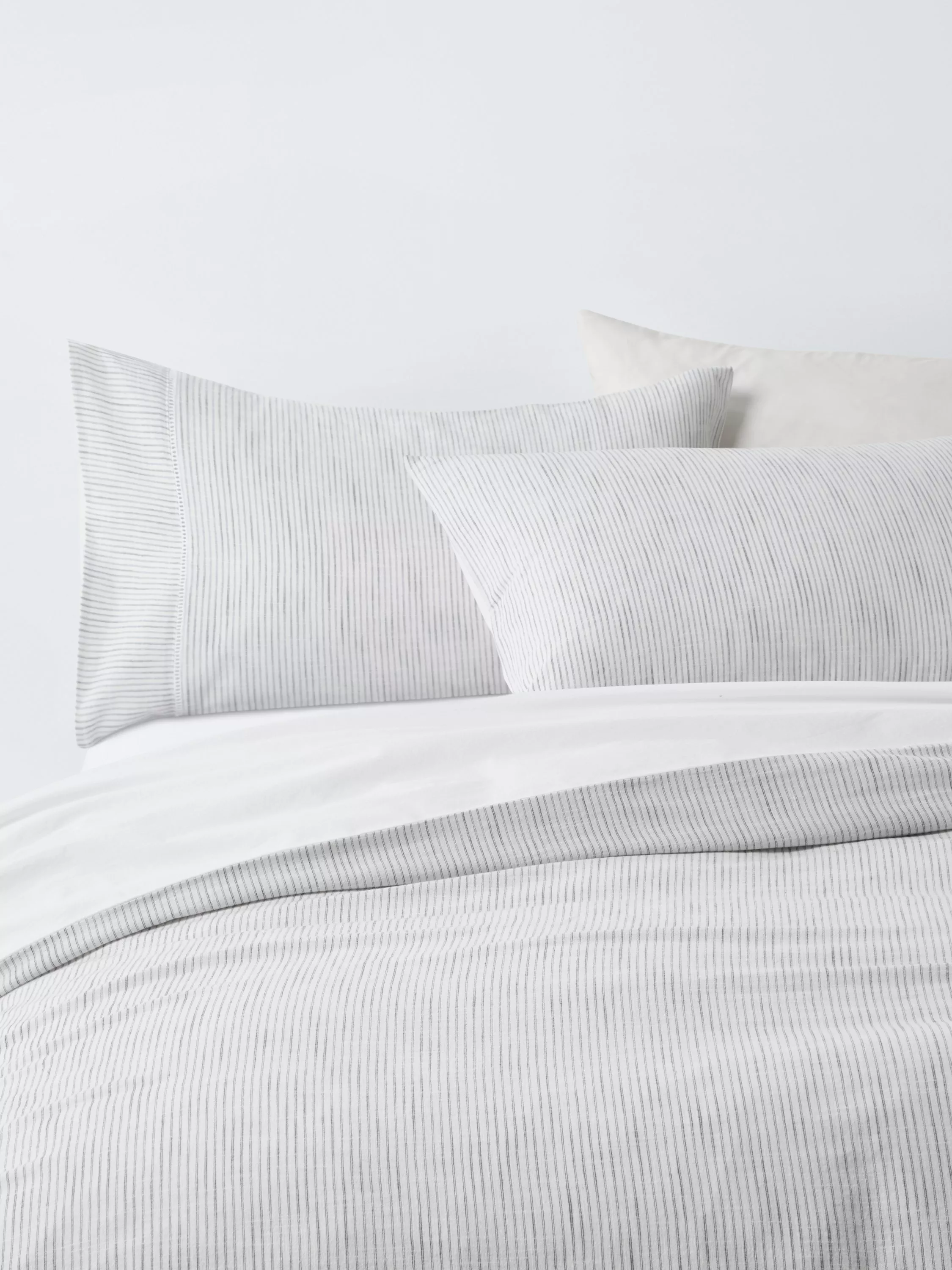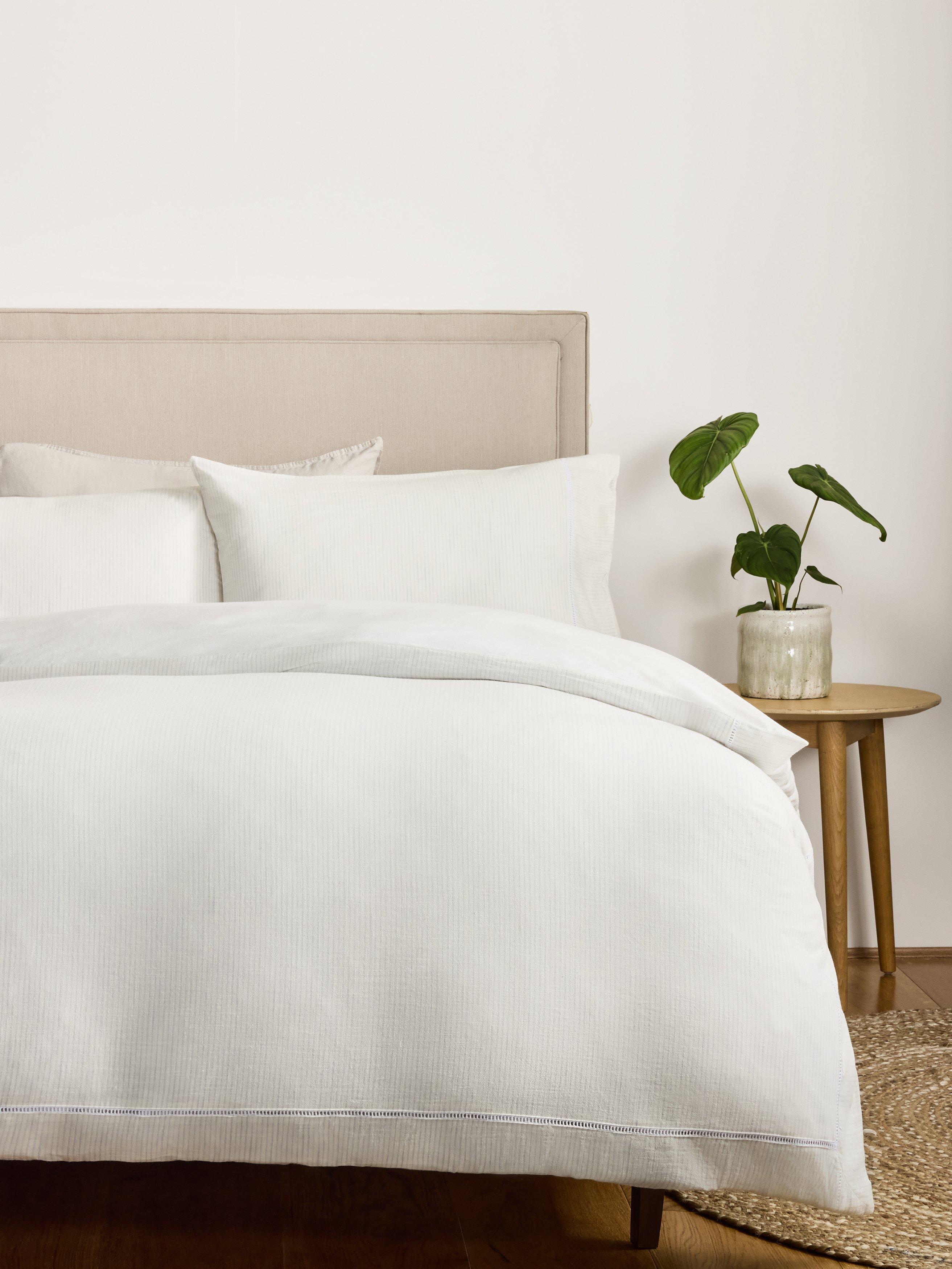 This bedding features a breathable, washed cotton fabric, with stripes and delicate faggoting details for a soft and relaxed look and feel.