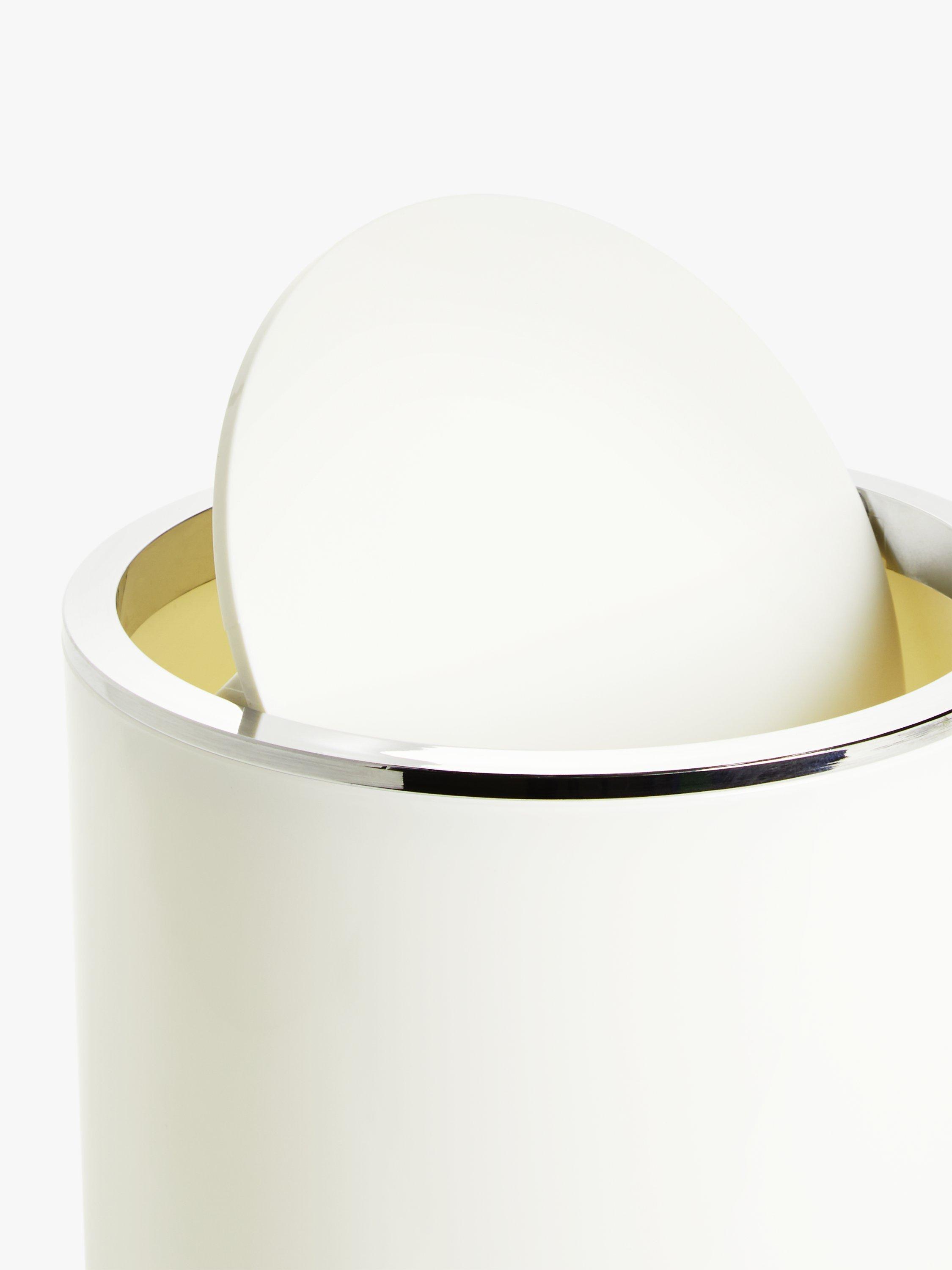 A simple bathroom bin with swing lid, in pastel colouring.