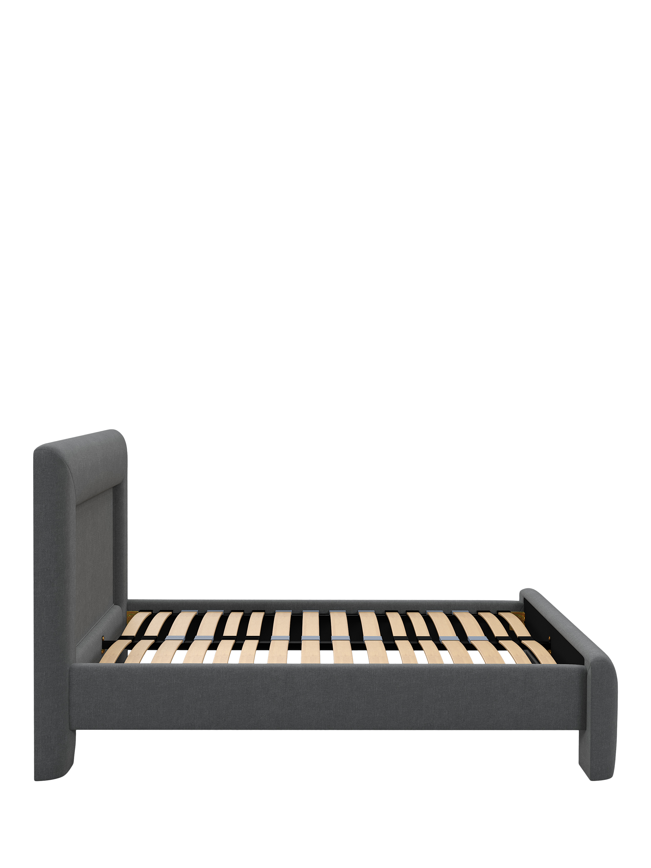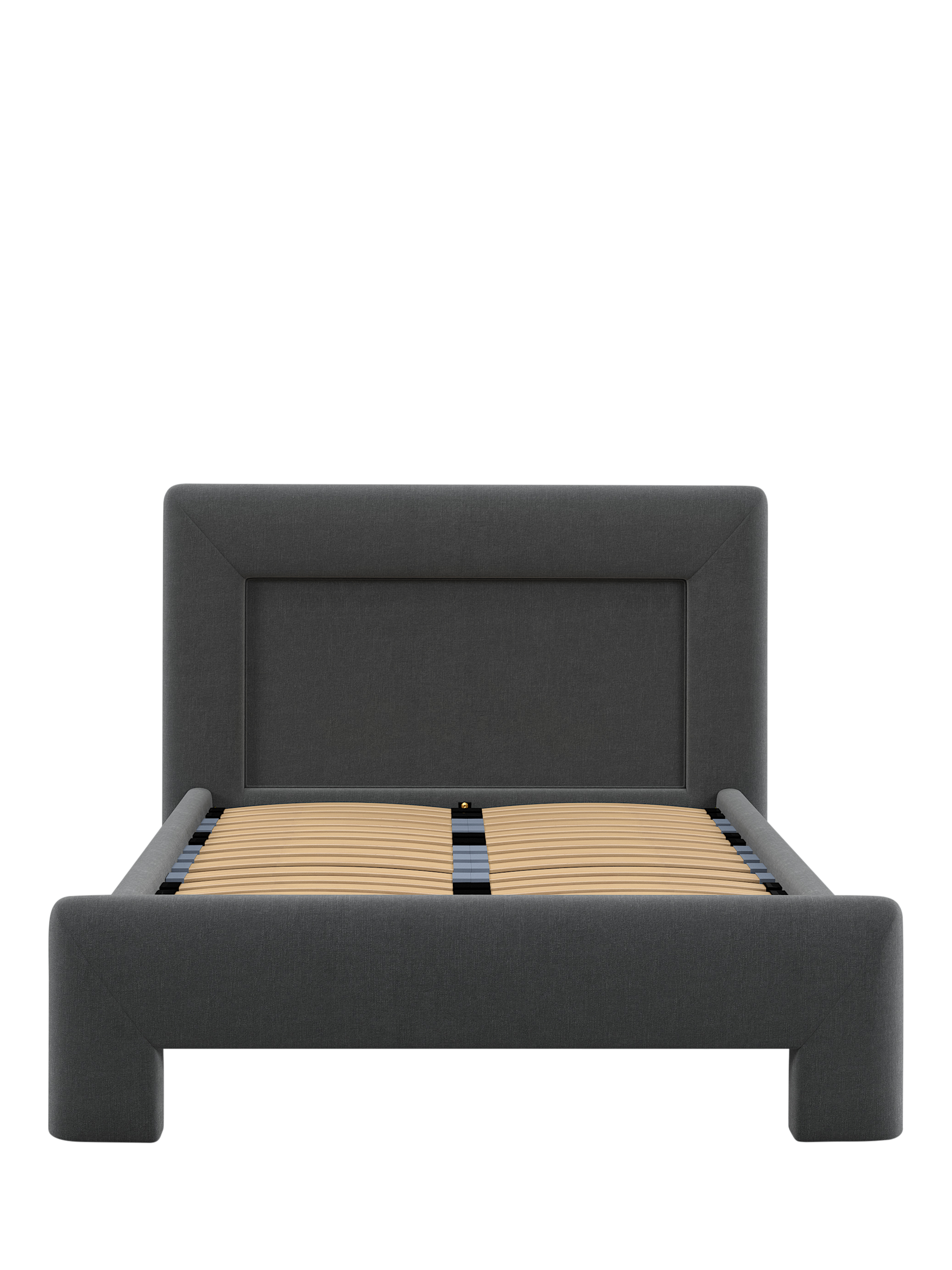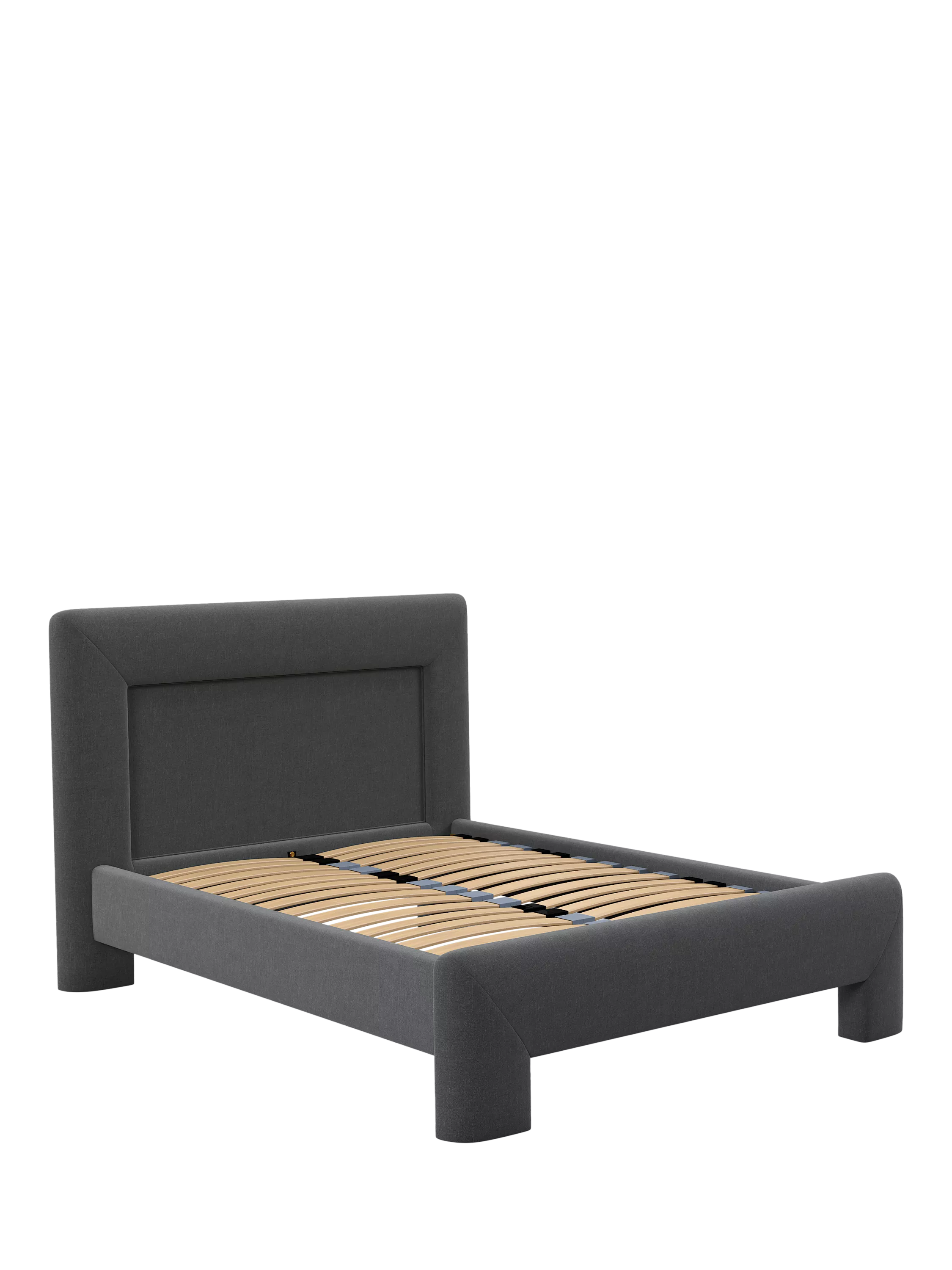 Distinctively modern, our Blocky bed frame will bring a bold, design-led look into your bedroom. Its sculpted shape incorporates a wide headboard with curved edges, and we've added supportive sprung slats to the base. Available in a range of fabrics and colours so you can find the best option for your space.