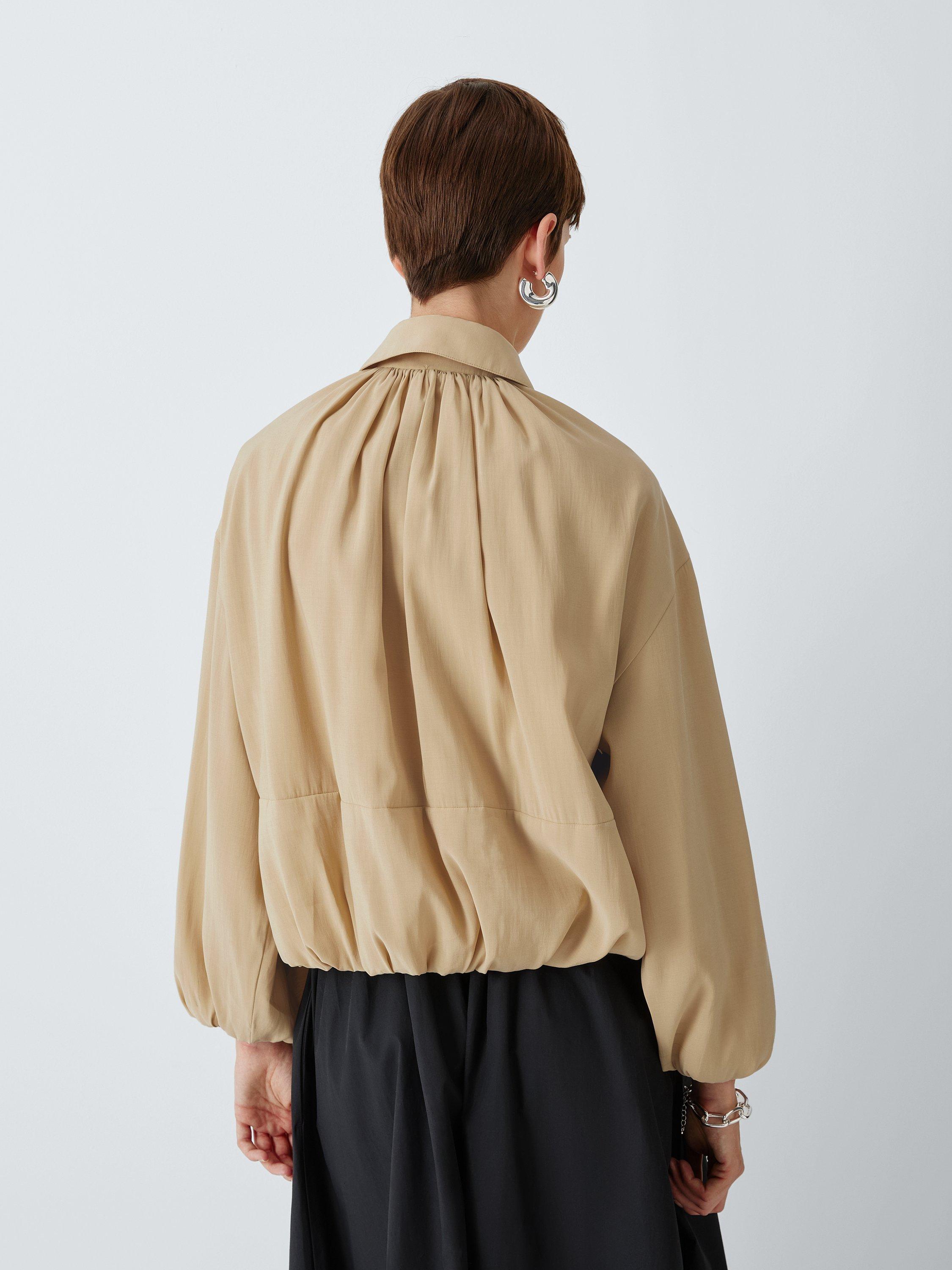 Defined by its blouson sleeves, this jacket has a soft, rounded profile and elegant elasticated hem. The fabric blend offers an exceptionally silky handle and a liquid-like drape that resists creasing, ensuring you maintain a polished look throughout a busy day.