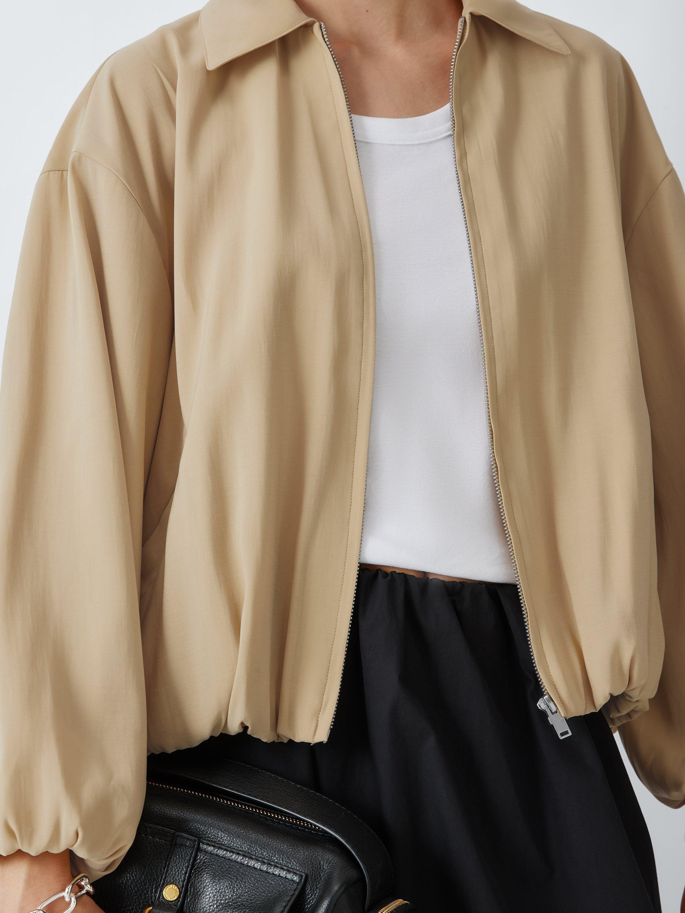 The clean zip-through front and classic pointed collar balance contemporary sportswear influences with minimalist sophistication. Fully lined for effortless layering and finished with discreet welt pockets, this lightweight yet hardwearing piece serves as a versatile outer layer that transitions seamlessly from casual afternoons to evening city outings.