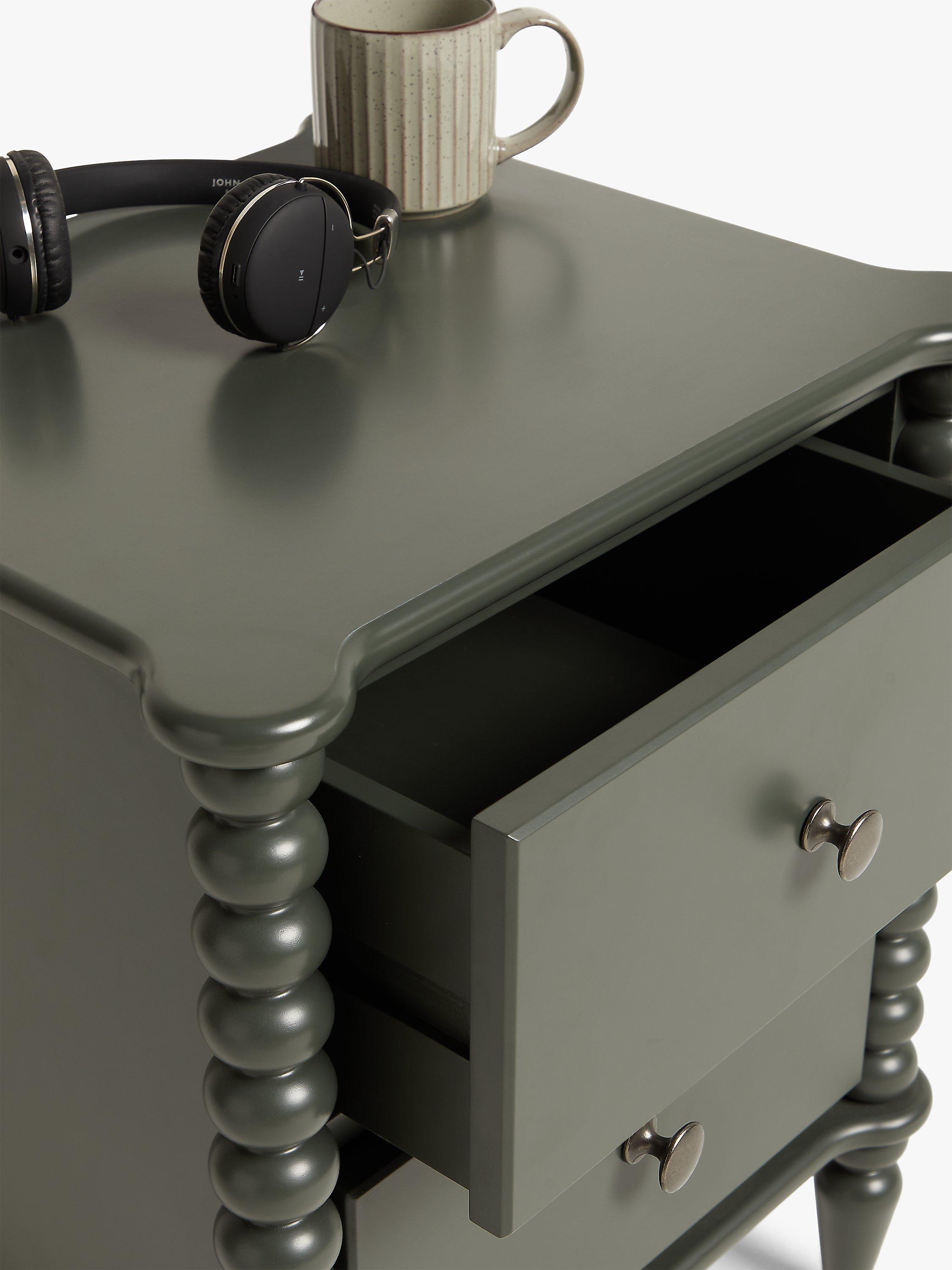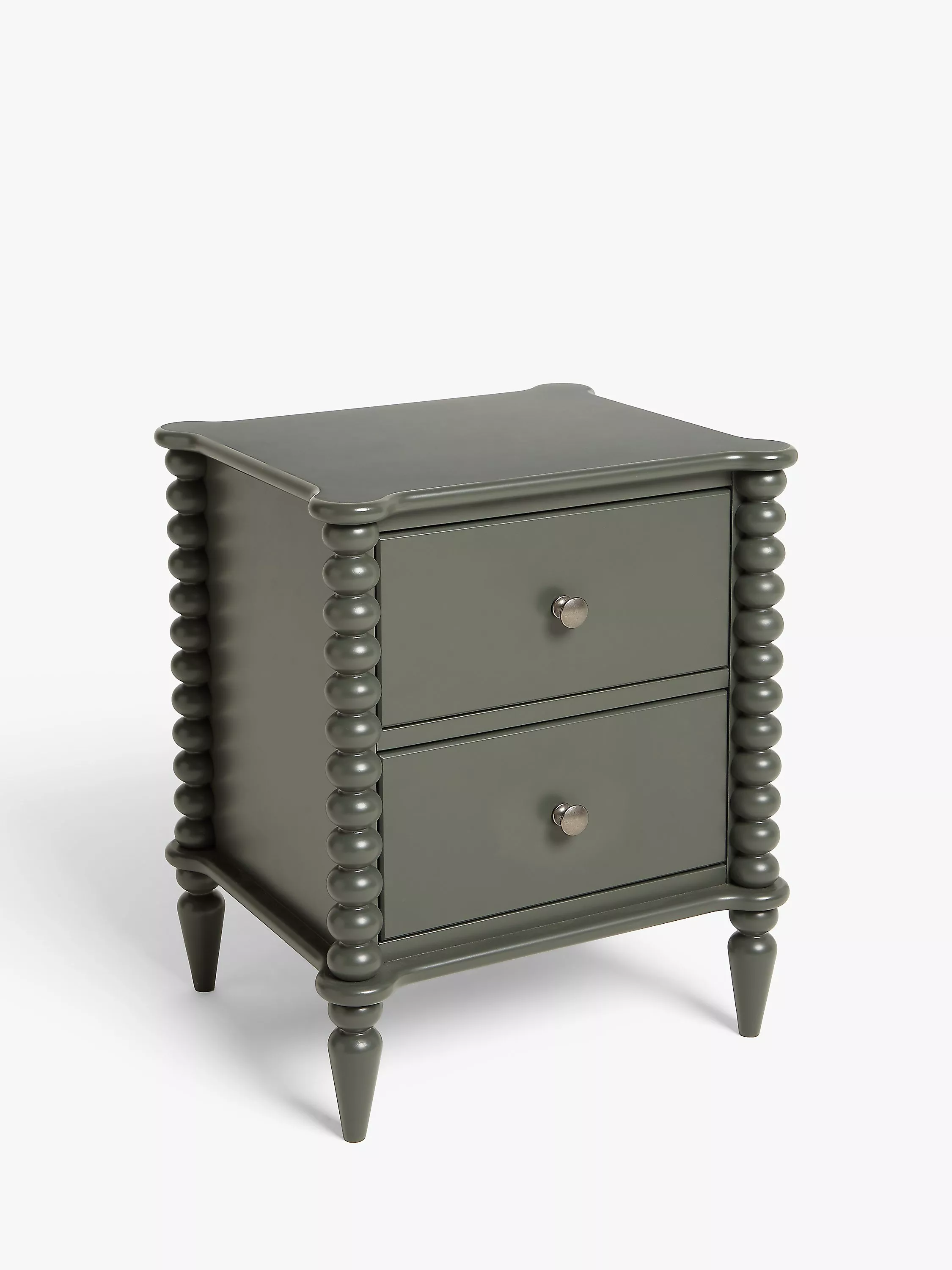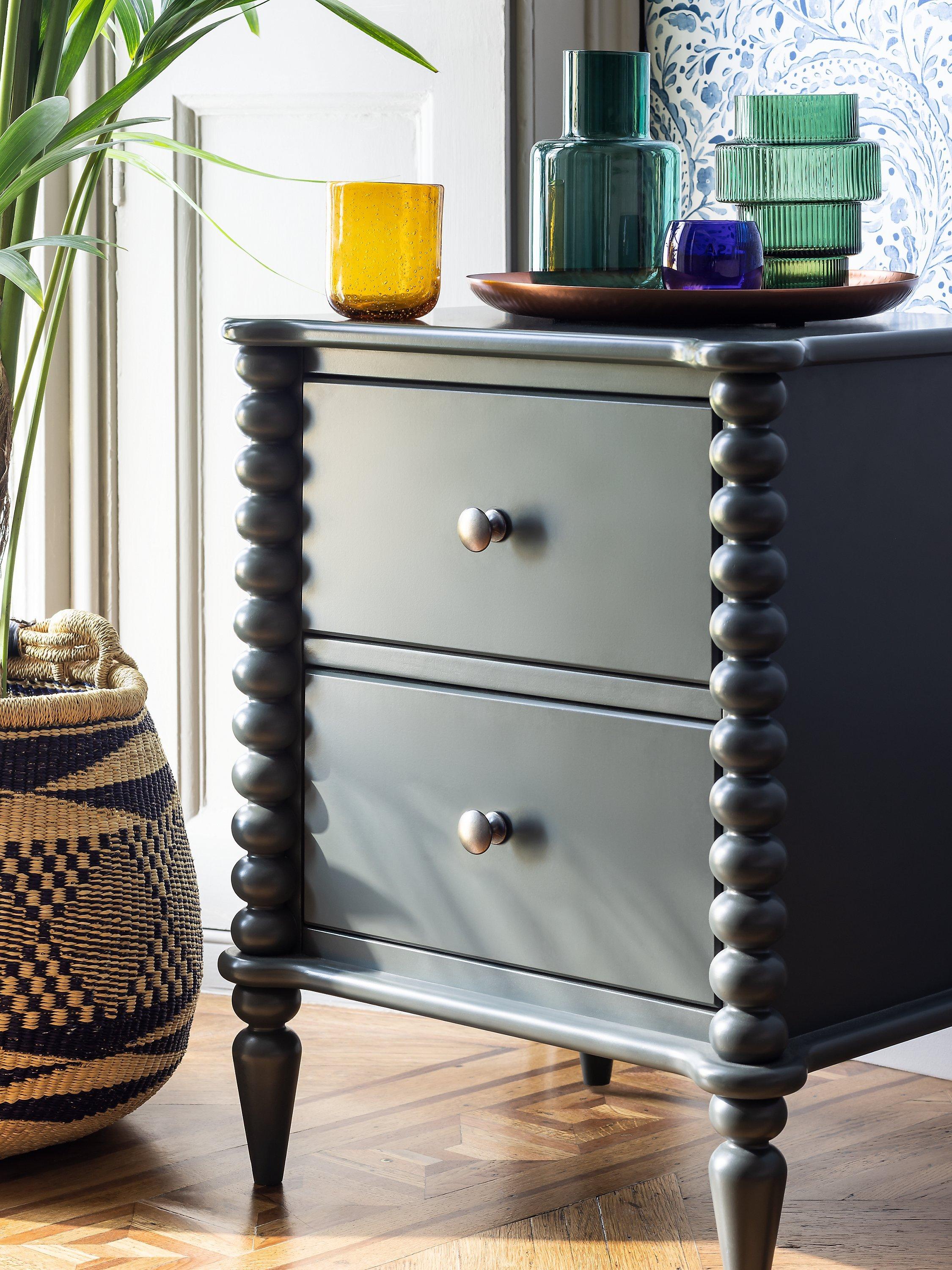 A revival of eclectic 17th century designs, our Bobbin range of furniture will bring a heritage feel back into your home. Decorative design points are awarded for this painted bedside table's round bobbin legs and shapely frame, which adds character and charm, and it's also impressively sturdy thanks to a combination of high-quality rubberwood and MDF. Complete with two deep drawers, who said bedside storage had to be boring? This one is practically sized and a perfect amount of playful.